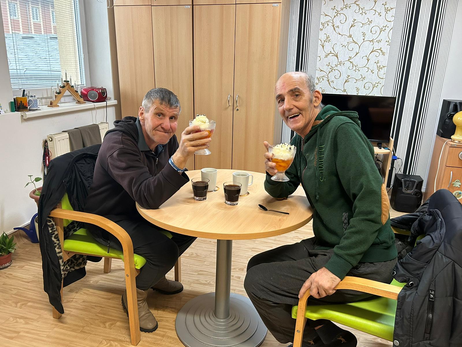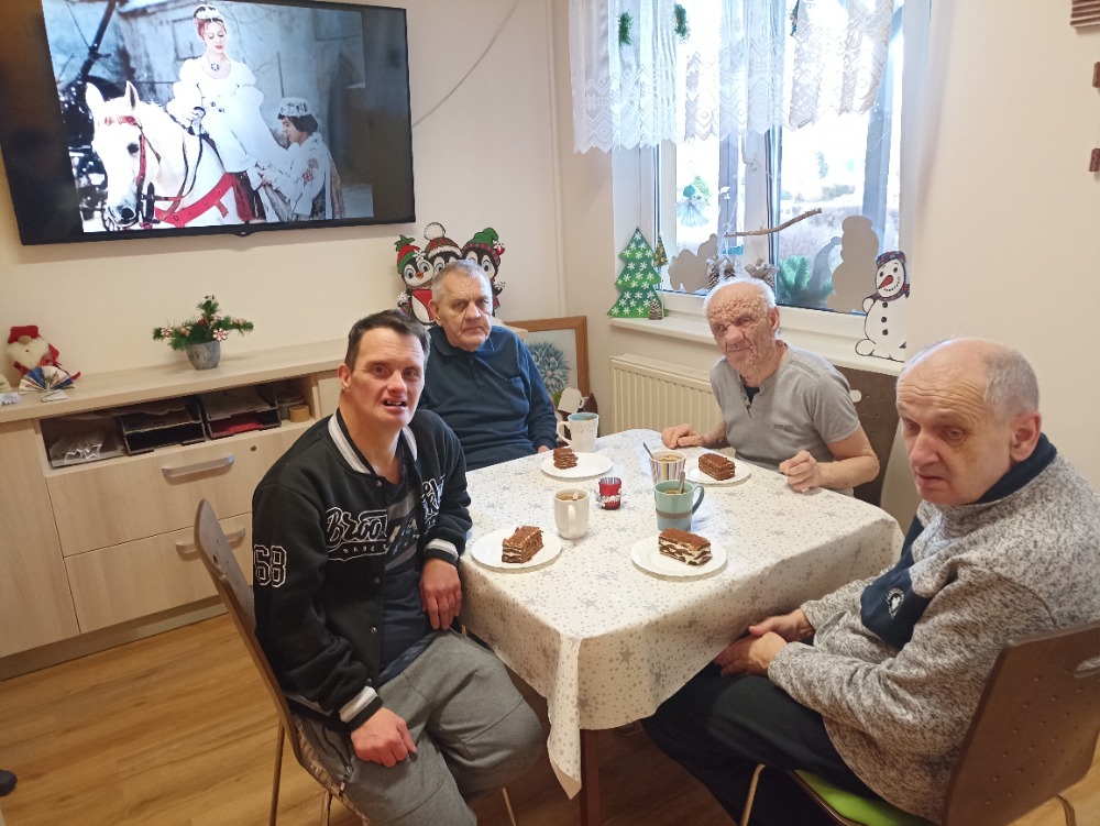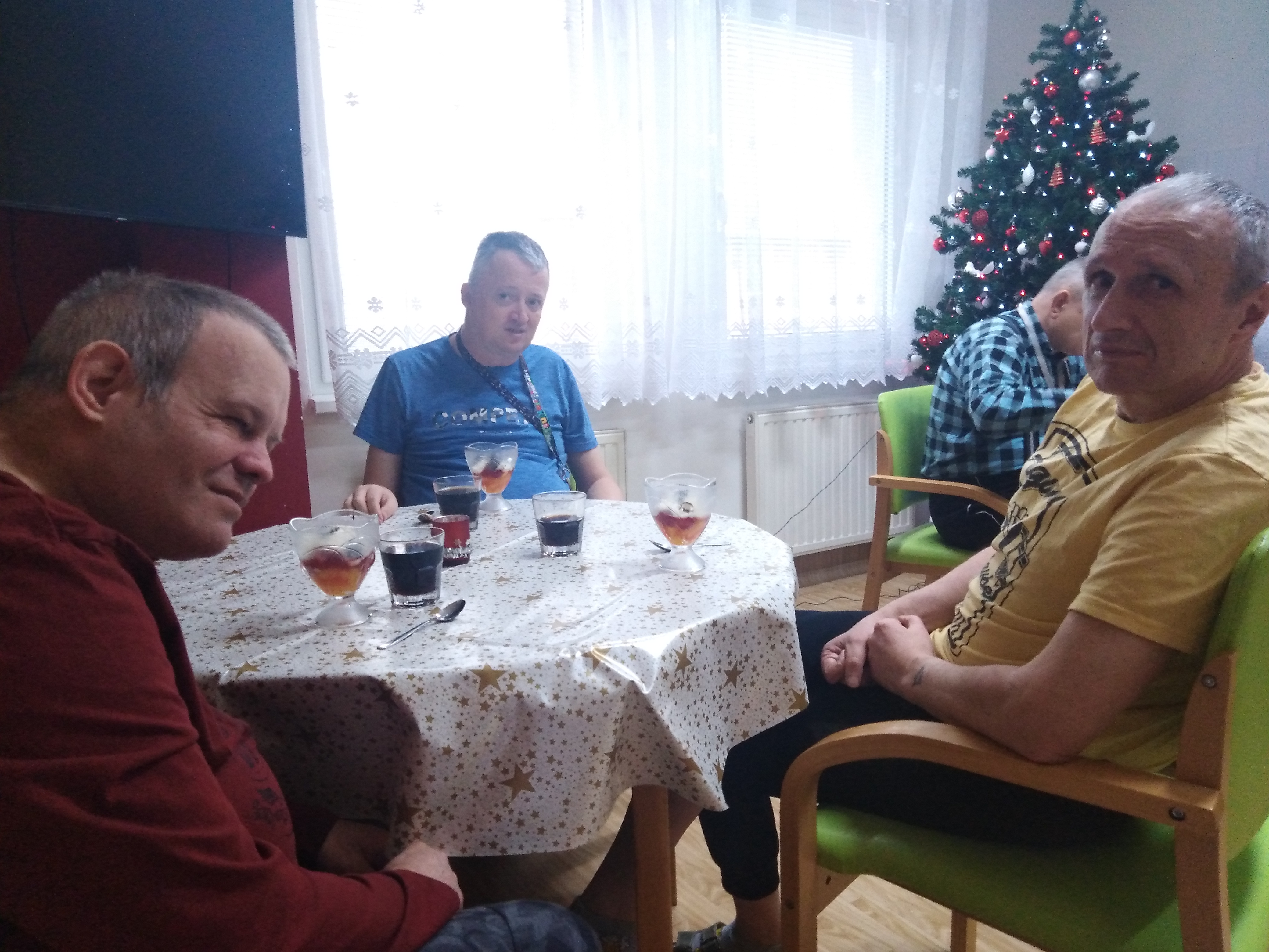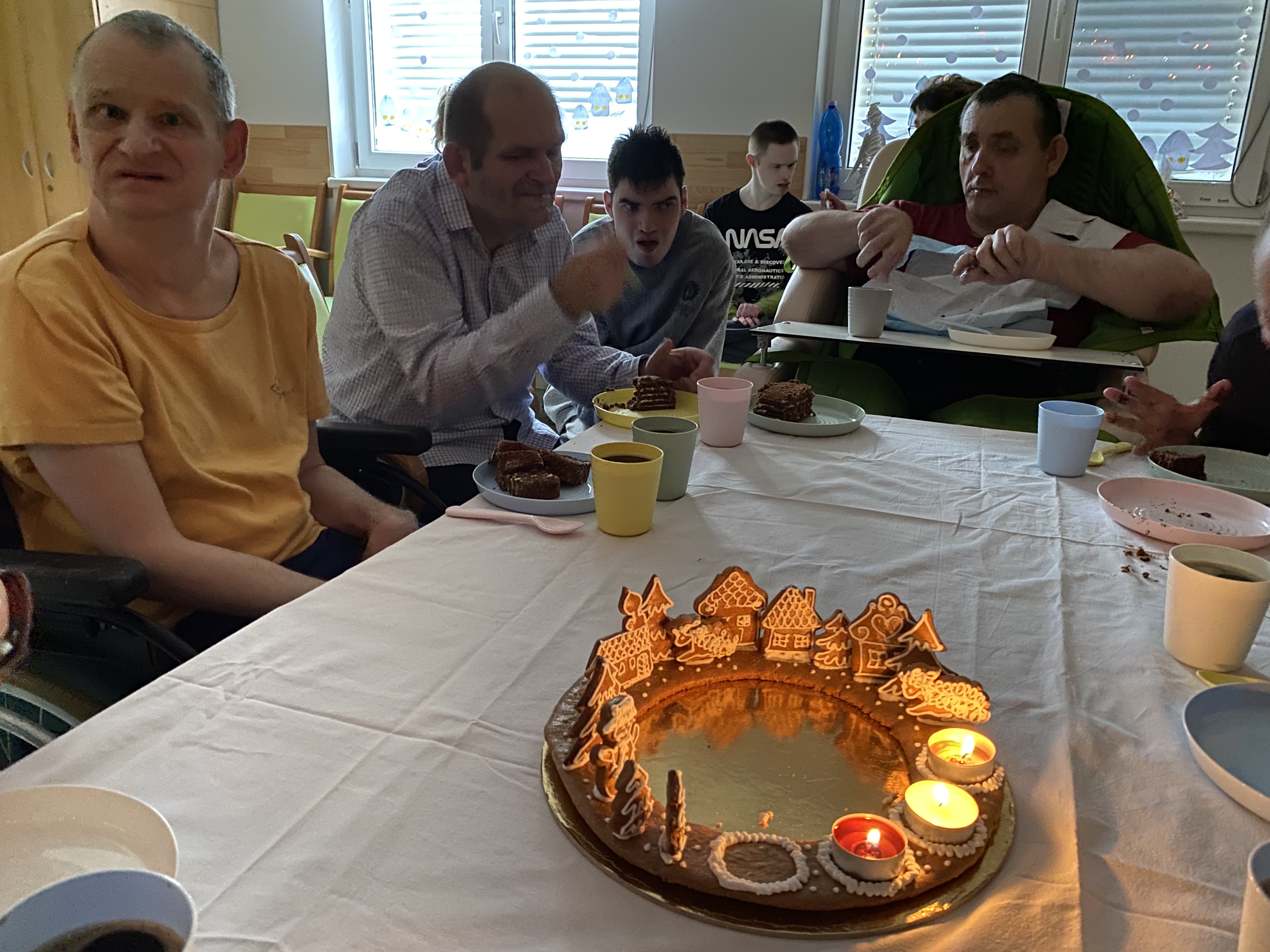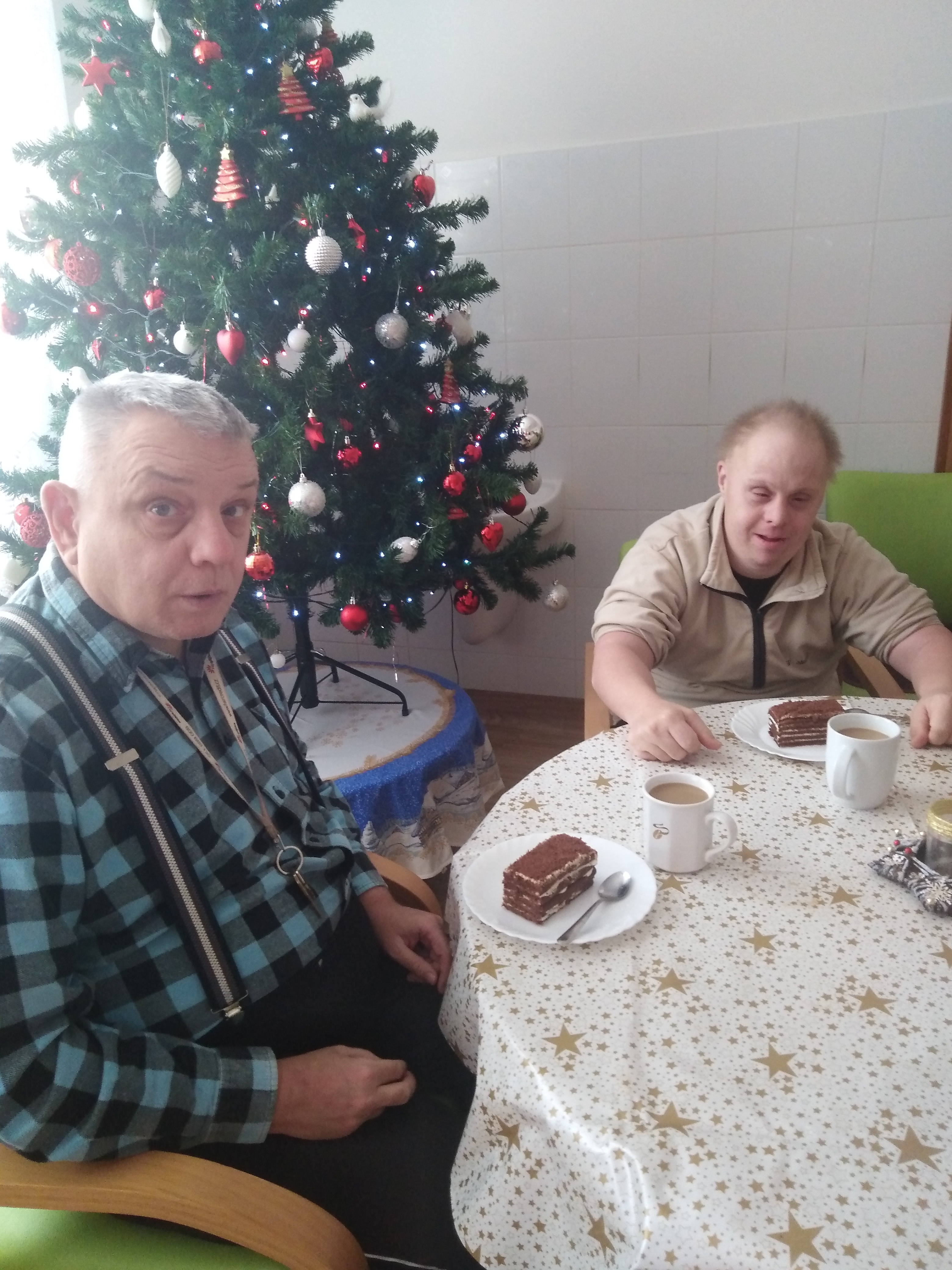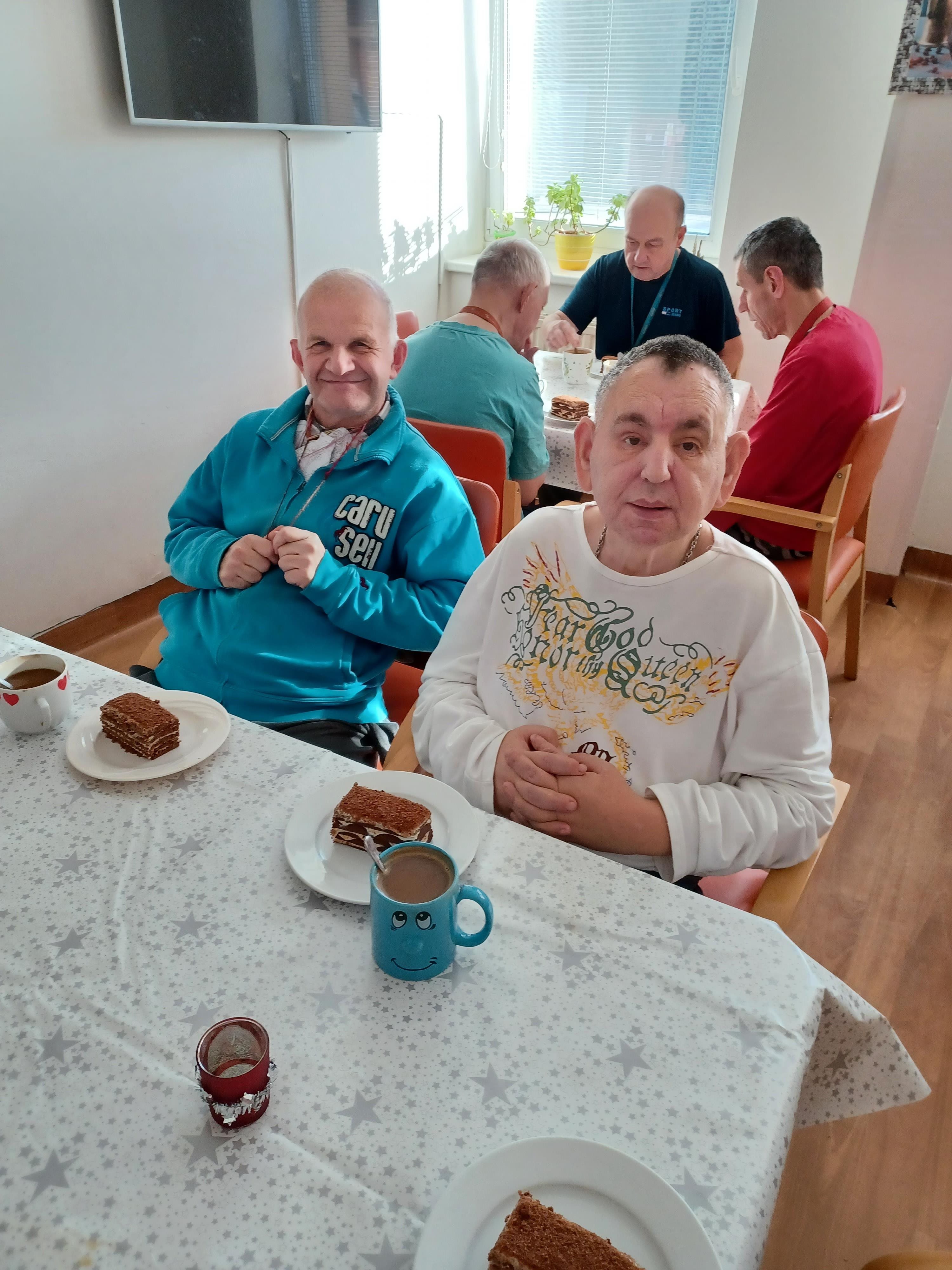 Poslední týden před Vánocemi jsme si podvakrát uspořádali posezení u nazdobených stromečků na společných jídelnách jednotlivých podlaží domova a v aktivizačních místnostech. Zazpívali jsme si koledy, popovídali o tom, co bychom si přáli najít pod stromečkem a zaposlouchali se do pohodové vánoční hudby. Přitom jsme si pochutnali na dortu Marlenka, ovocném poháru a kávičce se šlehačkou, což nám umožnily finanční prostředky dárců. Moc děkujeme.