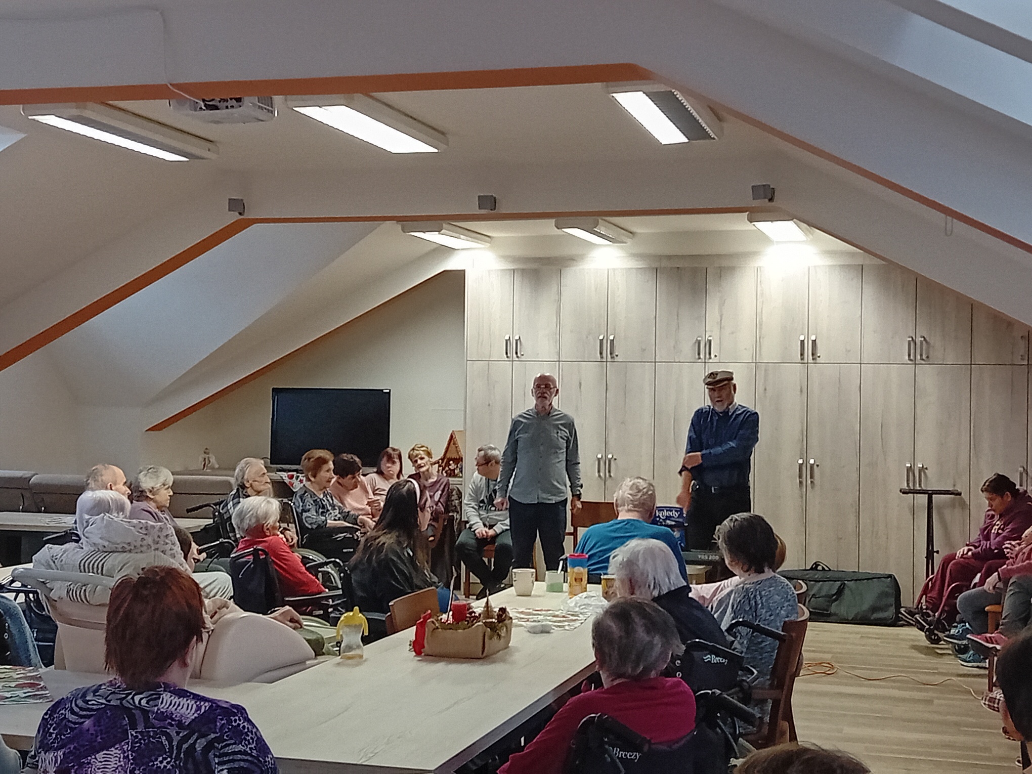 Již nastal čas adventu, předvánočního shonu, veselí a hemžení se. Do popředí kulturního dění Centra Dominika Kokory vstupují různá hudební vystoupení dětí nebo přátel centra. Několikrát ročně navštěvují naše klienty obou služeb dramaterapeuti pan doktor Oldřich Müller a Pavel Svoboda. Jejich muzicírování se stalo již milou tradicí a opět jsme mohli prožít krásné společné chvíle doprovázené pásmem koled a vánočních písní. Na závěr zazněly dokonce i songy na přání jako například „Tereza nebo Trezor“, které nás přenesli do 60. – 70. let minulého století a staly se tak osvěžující třešničkou na dortu.
