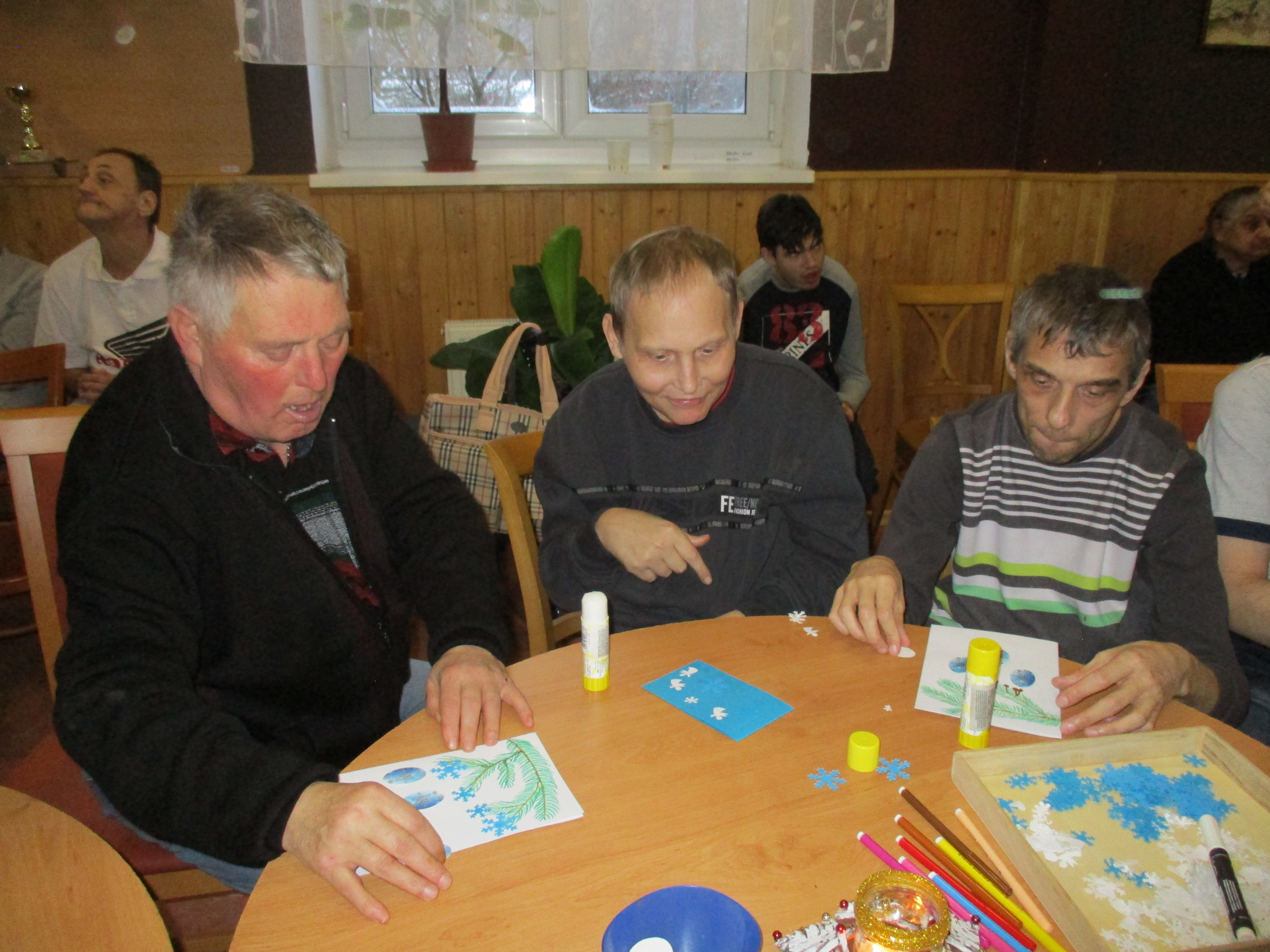 V předvánočním čase jsme pozvali naše přátele a kamarády z Kokor na posezení u nás v Dřevohosticích. Popovídali jsme si, poseděli, zamlsali dobroty, vyrobili si drobnost - vánoční ozdůbku v minidílničce, zazpívali si a zatančili. Bylo to velmi příjemně strávené odpoledne.