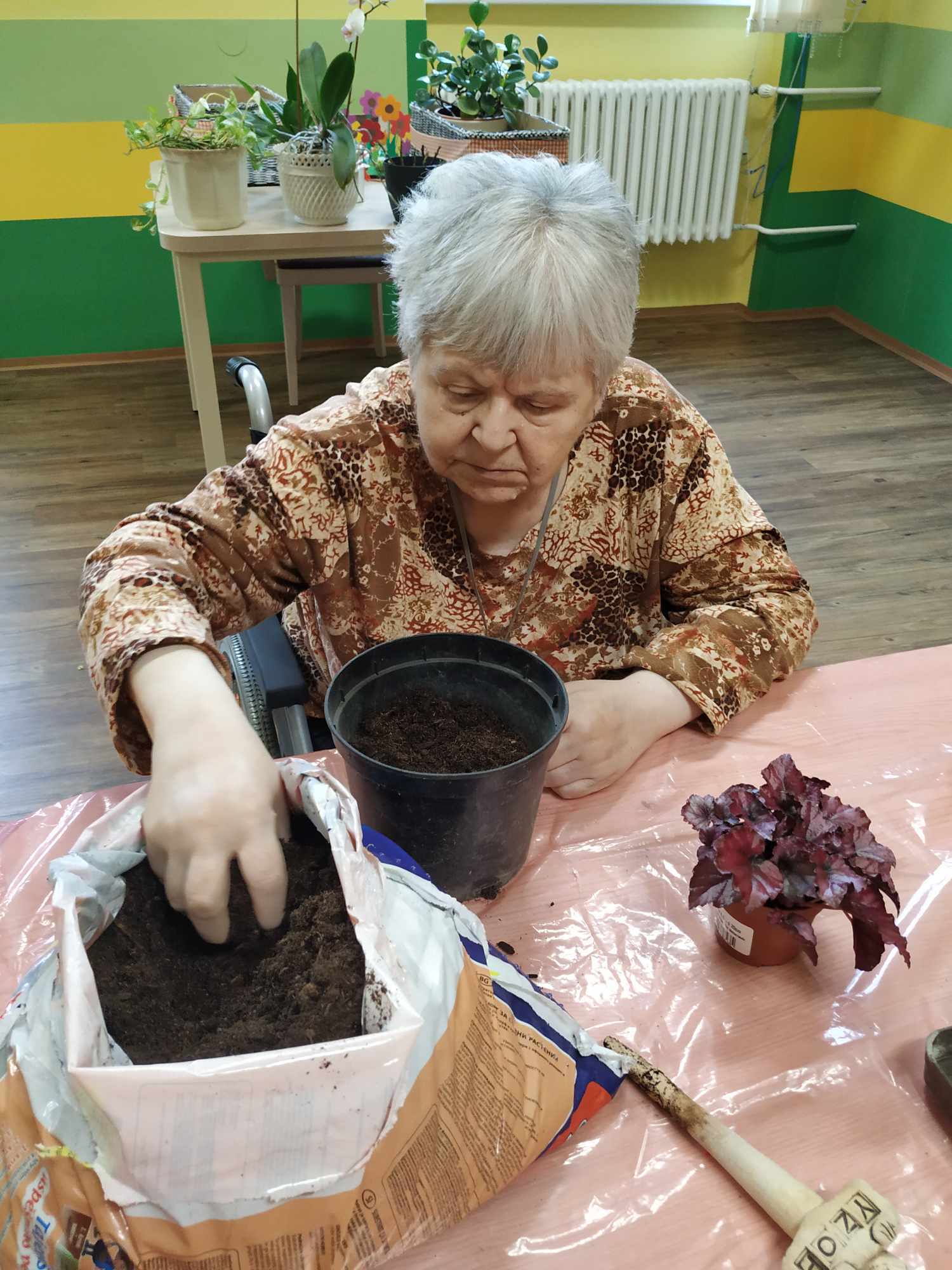 Nejen naši senioři, ale i květiny potřebují pravidelnou péči, a tak jsme se pustili do jejich přesazování.