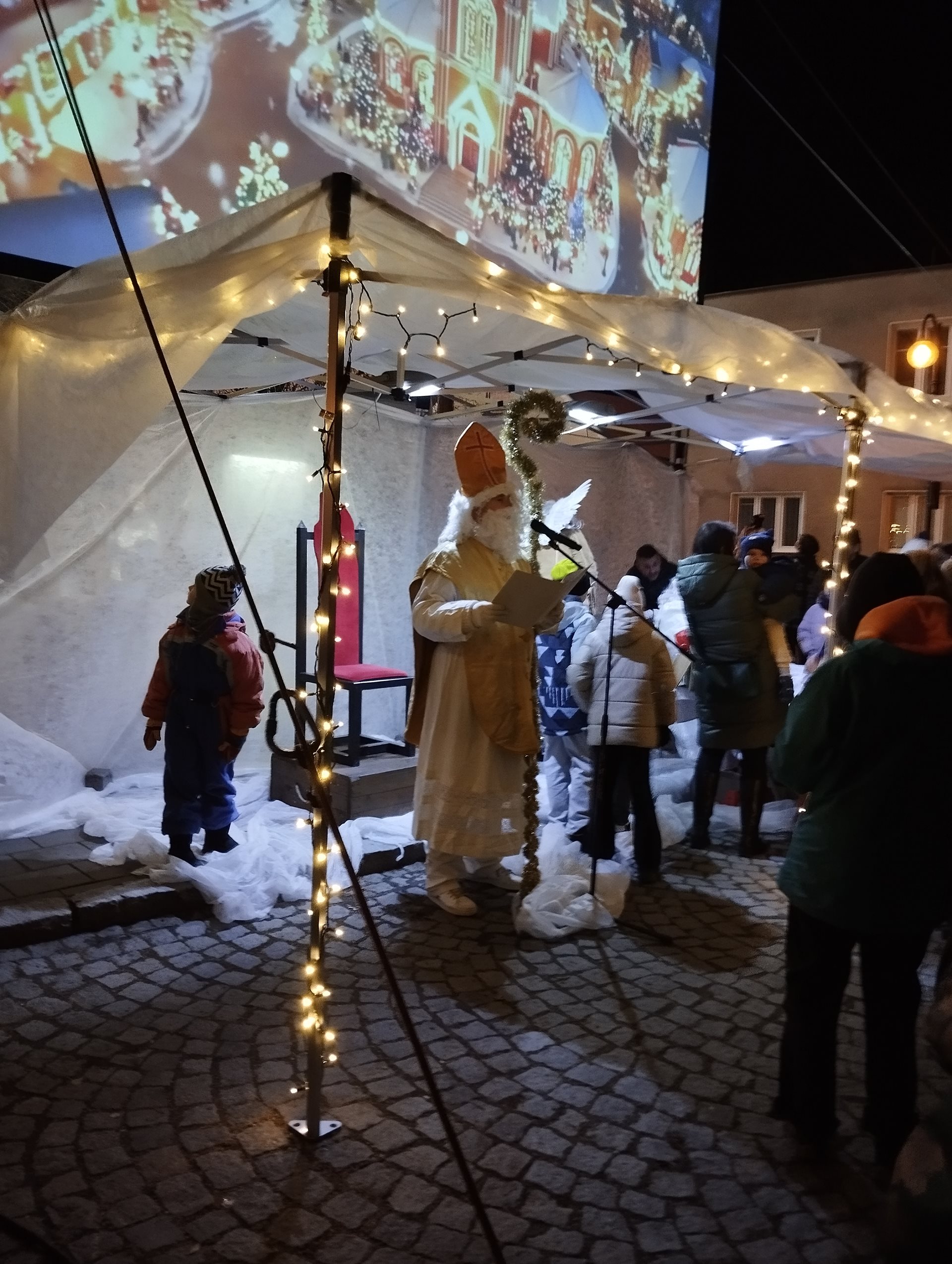 Dověděli jsme se, že na náměstí v Dřevohosticích by měl dorazit Mikuláš v podvečer před svým svátkem. Vypravili jsme se, abychom jej přivítali i s jeho družinou. Setkání navodilo krásnou sváteční atmosféru, kterou završil i ohňostroj.