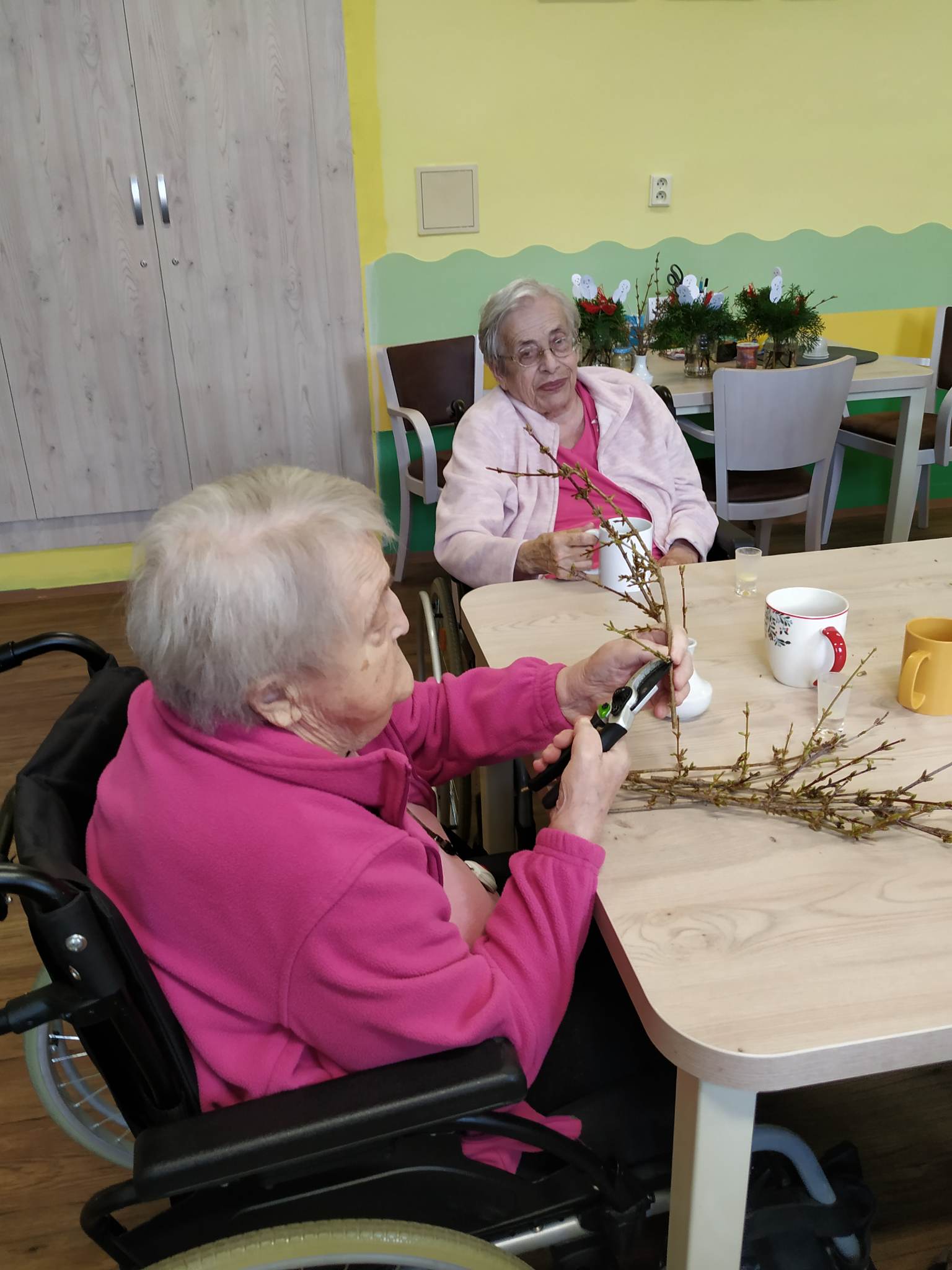 Jaro je tu, a tak se naši senioři pustili do tvoření jarních dekorací do jídelny.