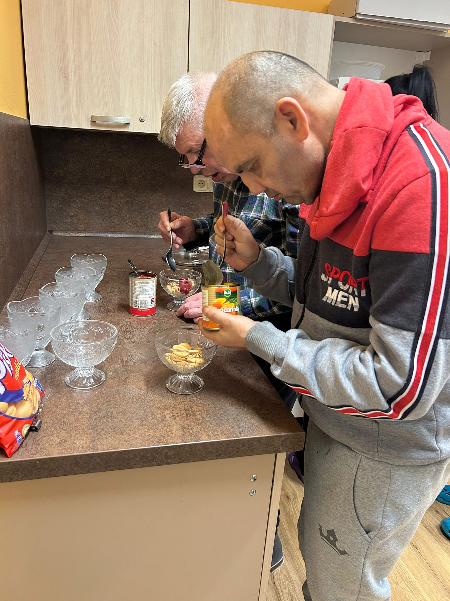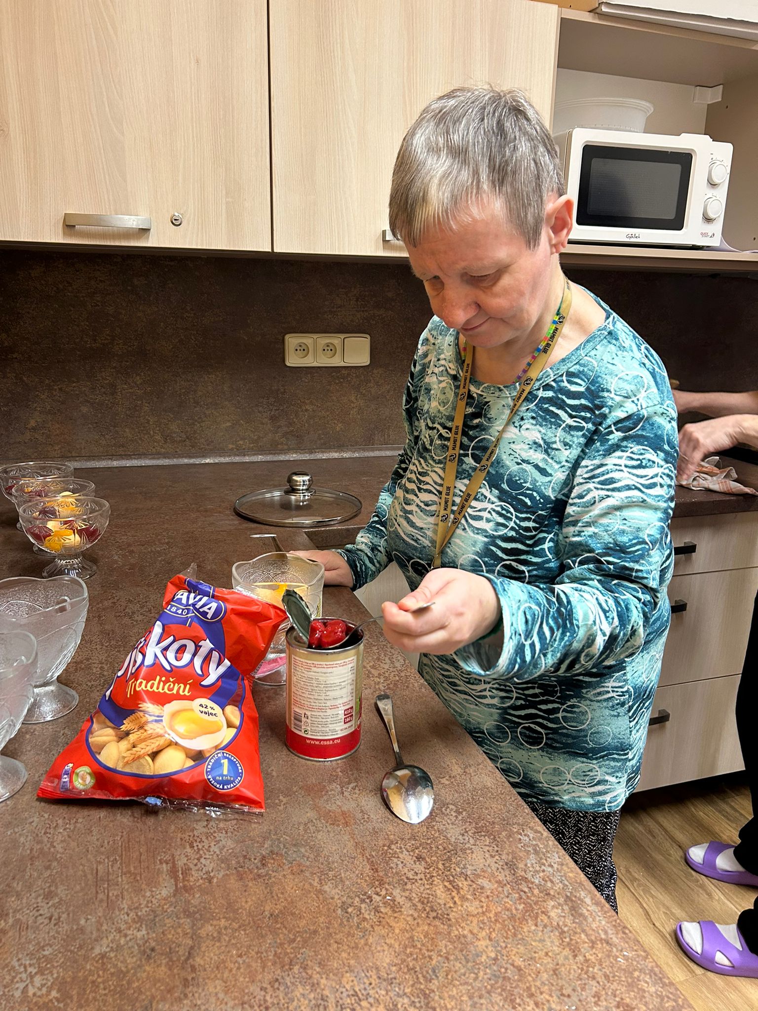 Víkend jsme využili k pečení bábovky a vaření vanilkového pudinku s ovocem. Každý přiložil ruku k dílu podle svých schopností a na závěr jsme si poseděli a pochutnali si na výsledku našeho snažení. Bylo to velmi příjemné.