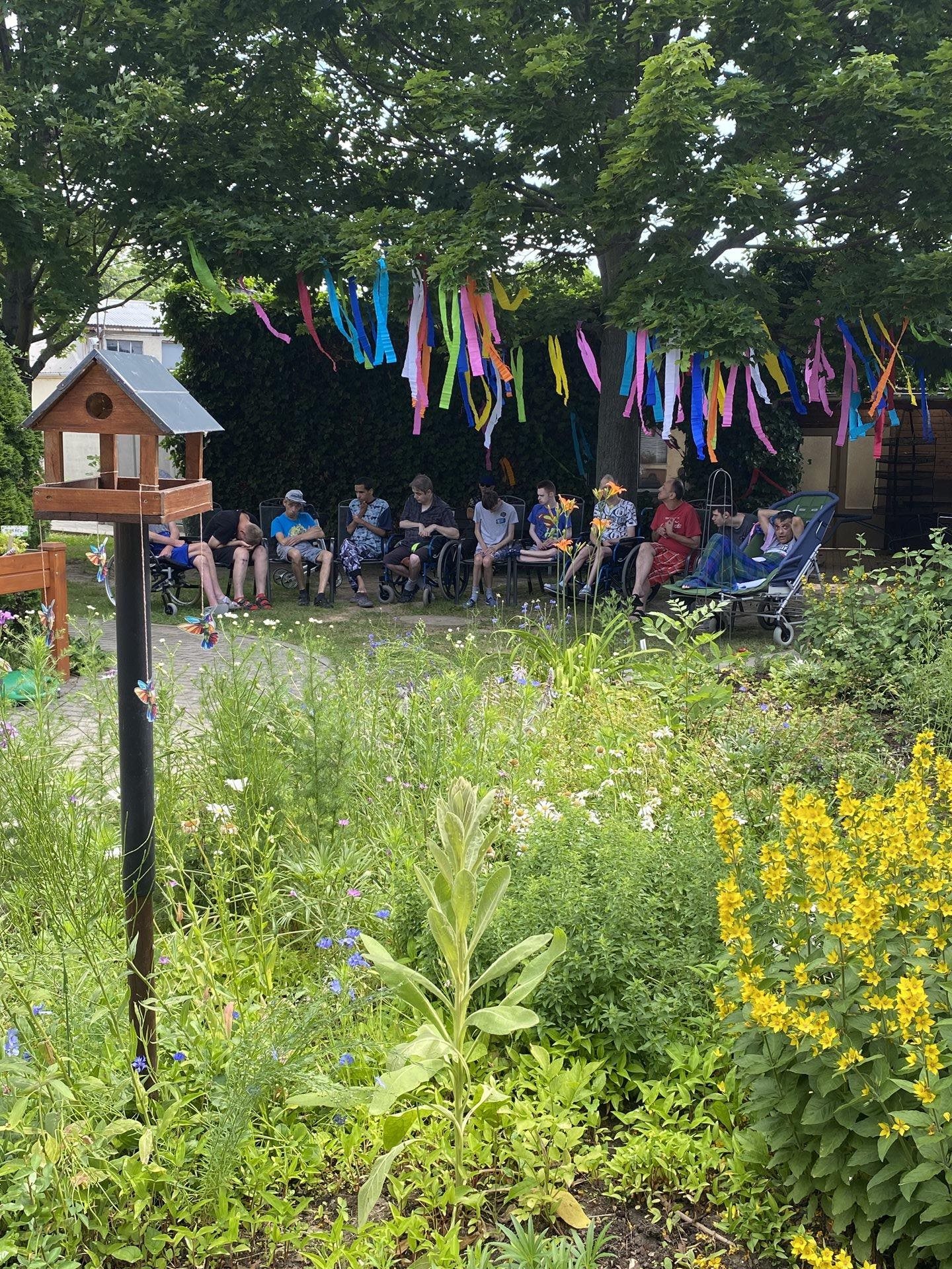 Odpočinek je důležitou součástí duševní hygieny. Změna prostředí nebo menší úprava prostředí, ve kterém žijeme, často funguje velmi dobře. Na tuto aktivitu jsme si vybrali jeden z našich koutků v zahradě. Posadili jsme se pod strom, který jsme si předtím ozdobili barevnými fáborky z krepového papíru. Pustili jsme si relaxační hudbu a poslouchali předčítání z knihy. Užívali jsme si paprsky sluníčka, které k nám pronikaly přes korunu stromu. Popíjeli jsme si vychlazenou limonádu a nechali si příjemný vánek hladit naše těla. Prošli jsme se naboso v trávě, poslouchali zároveň šumění listů ve větru, odpočívali jsme. Bylo nám moc příjemně. Určitě brzy podobnou aktivitu velmi rádi zopakujeme.