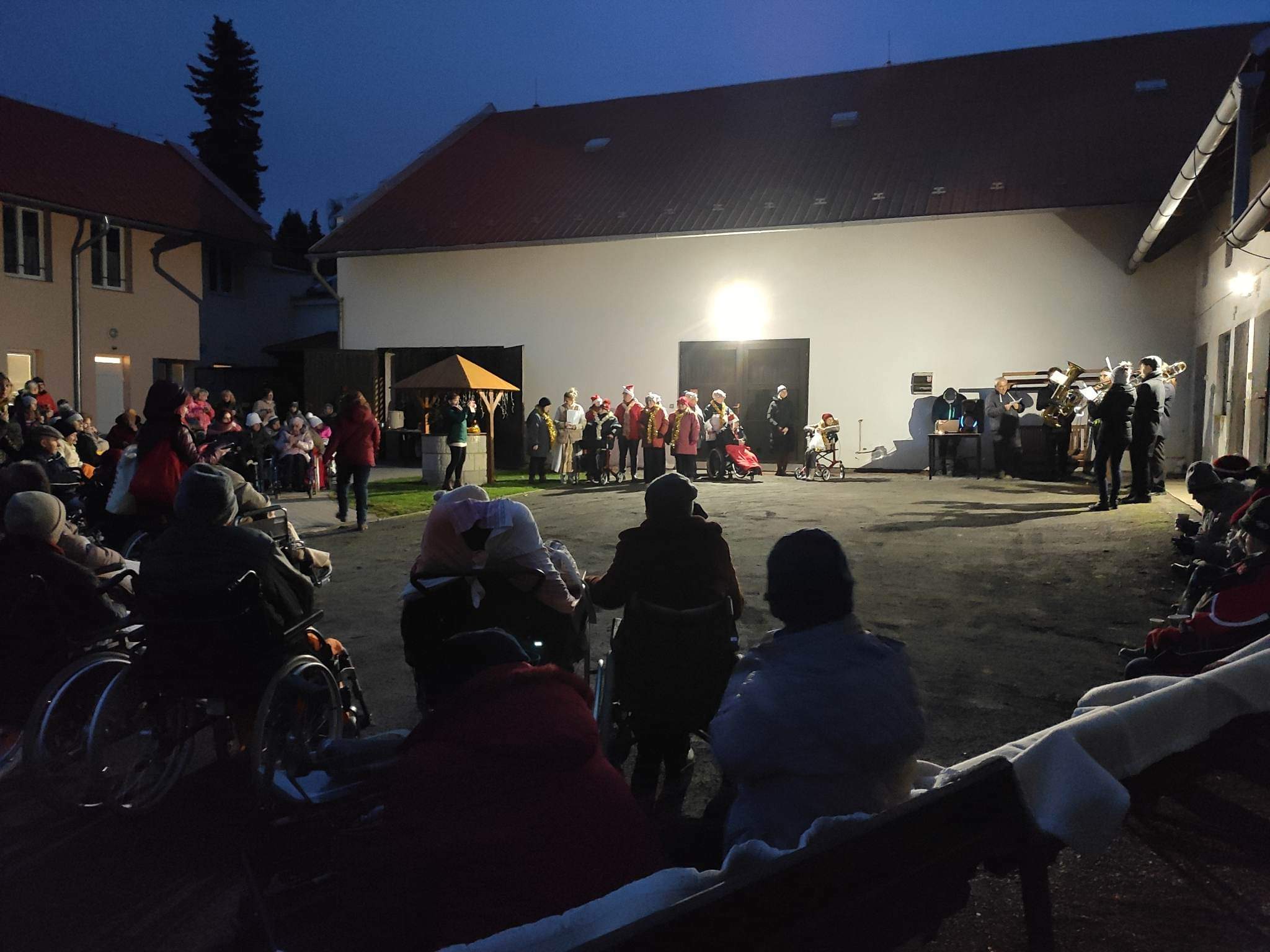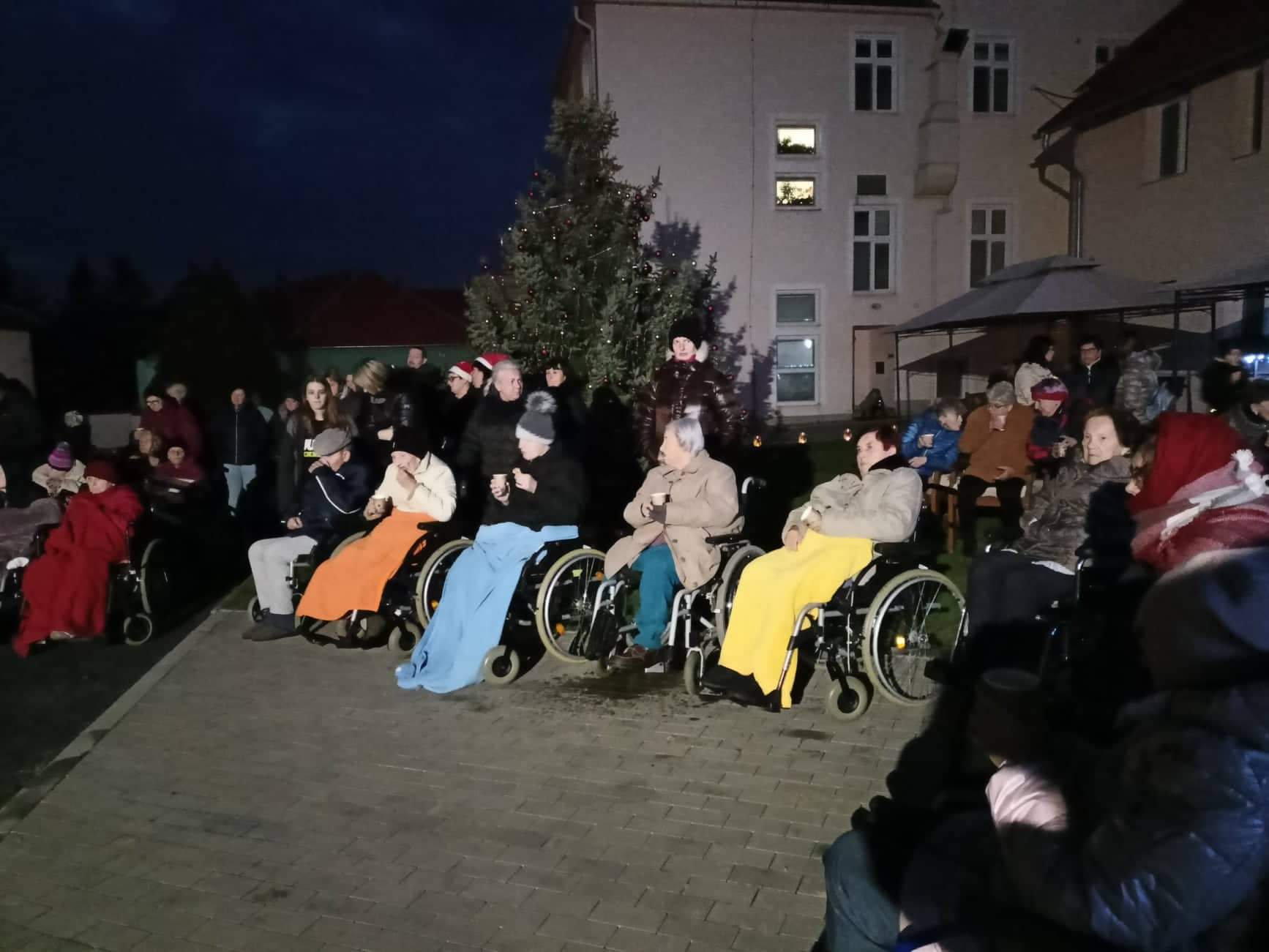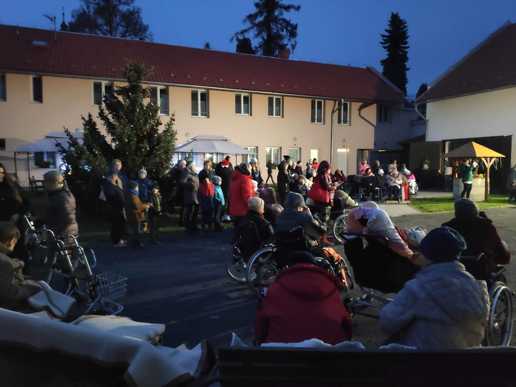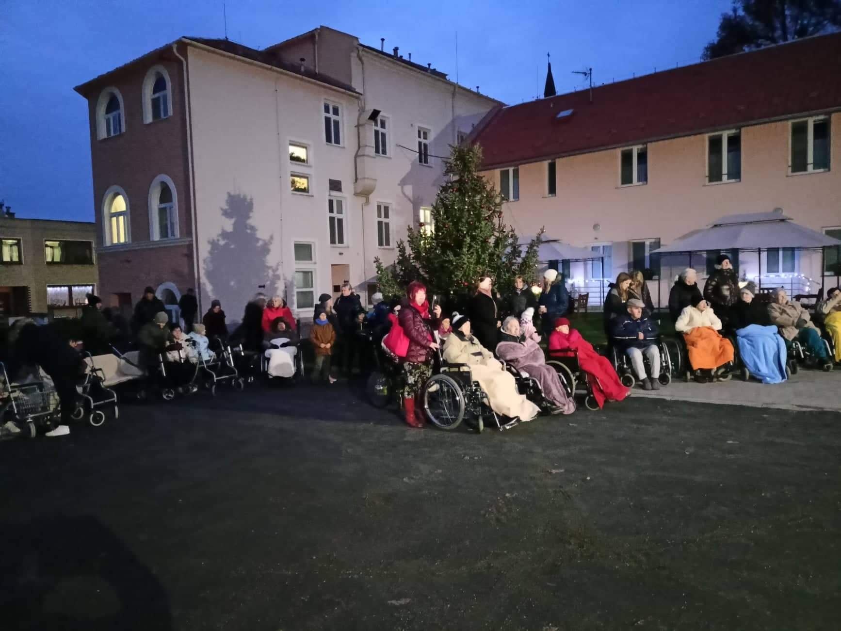 Ve čtvrtek 24. listopadu od 16,30 hod. proběhlo slavnostní rozsvěcování našeho vánočního stromečku, provázené pásmem koled v podání kapely Věžní hudba Základní umělecké školy v Přerově, skupiny Vločka, kterou tvořili klienti služby Domova pro osoby se zdravotním postižením a překvapením večera byl velmi povedený song v podání našich dvou kolegyň. Příjemnou atmosféru večera dotvářela vůně ovocného punče a cukroví, vánoční osvětlení a reprodukovaná hudba, která nejednoho člověka přenesla v myšlenkách ke štědrovečernímu stolu, pohádkám a zimním radovánkám.