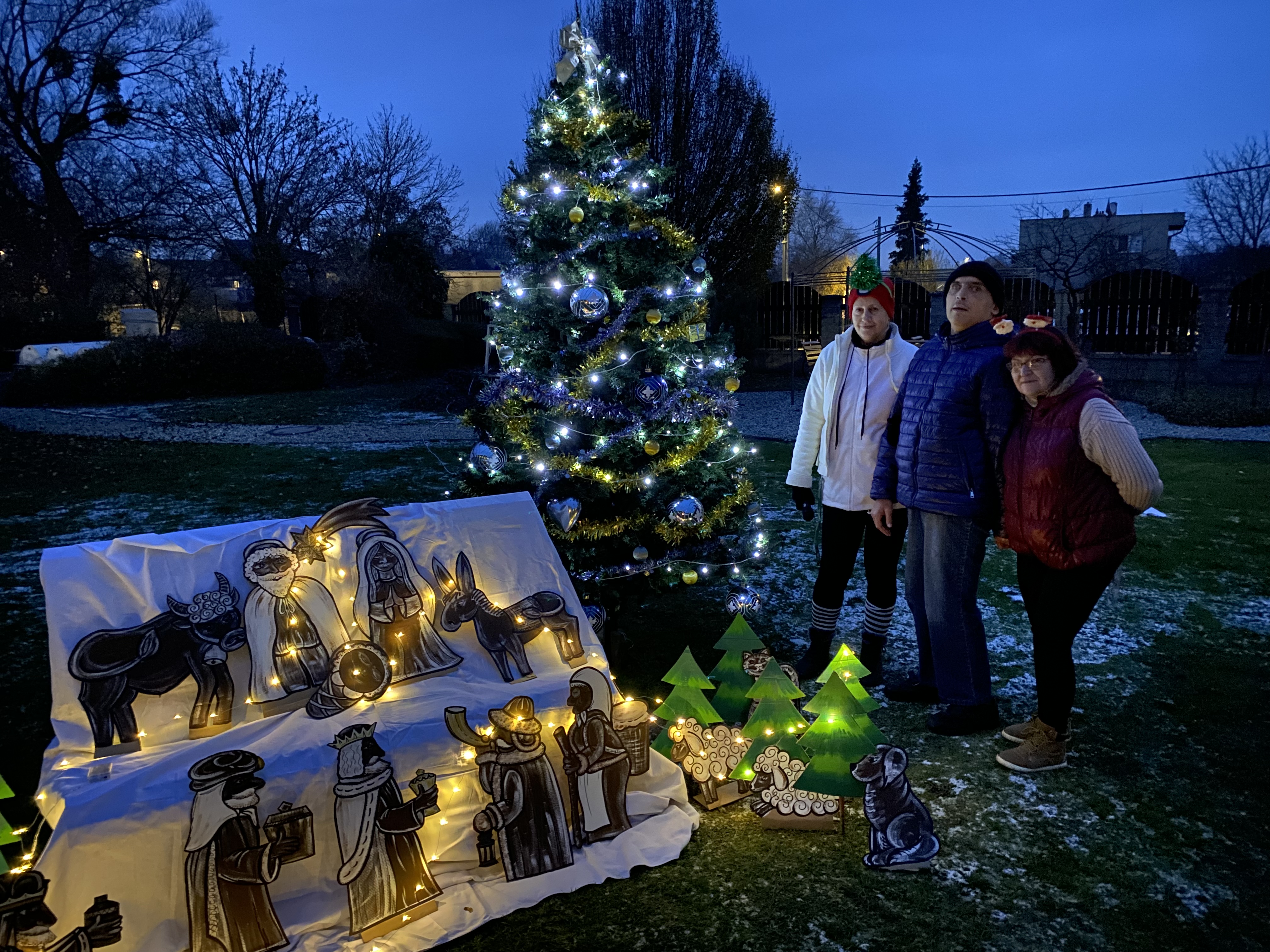 30. 11. 2023 jsme na zahradě našeho domova rozsvítili náš vánoční stromek. Zazpívali jsme si vánoční písničky a občerstvili se koláčem a čajem.