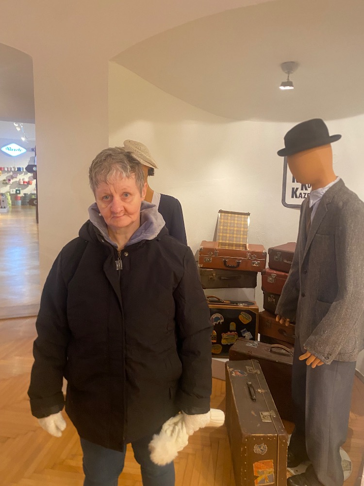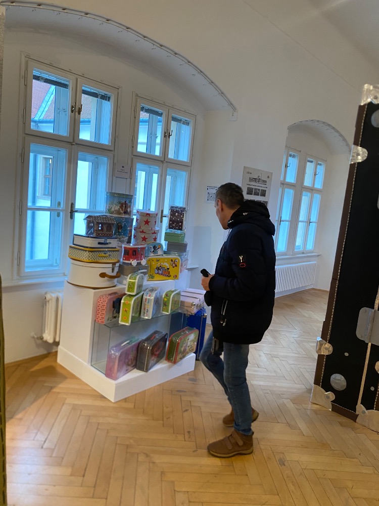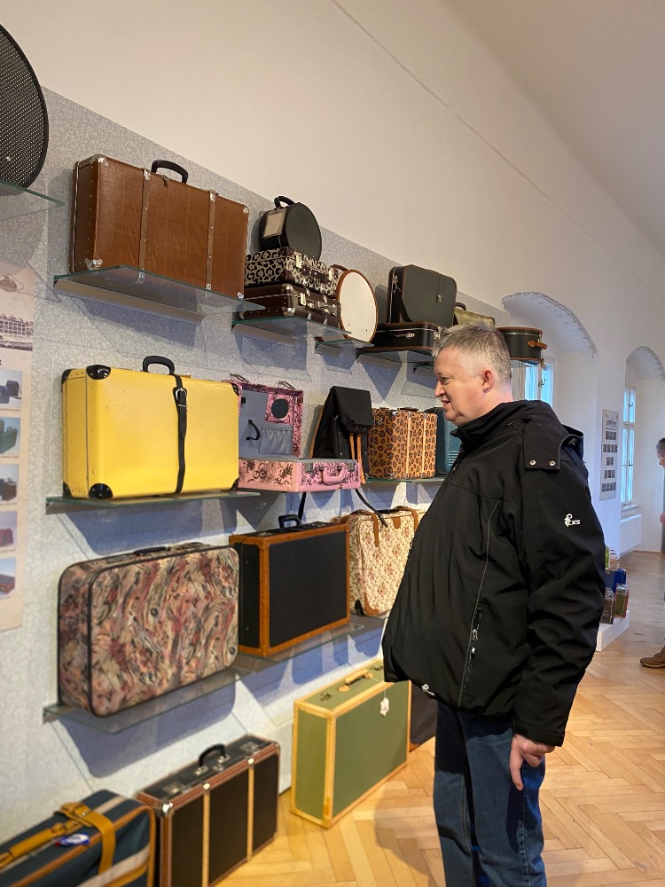 Hned u vstupu na nás čekaly pestrobarevné kufry všech velikostí, jako by někdo otevřel ztráty a nálezy z různých částí světa. Celá expozice na nás působila tak, jako kdybychom se ocitli na nádraží, které se rozhodlo vyprávět svoje vlastní příběhy. Každý kufr měl uvnitř jiný svět - fotky, drobnosti, suvenýry a vzpomínky lidí, kteří rádi cestují. Naši největší pozornost si získal starý hnědý kufr, který byl na první podhled obyčejný, ale uvnitř ukrýval malou improvizovanou scénu s miniaturními domečky, vlakem a světýlky. Moc se nám na výstavě líbilo.