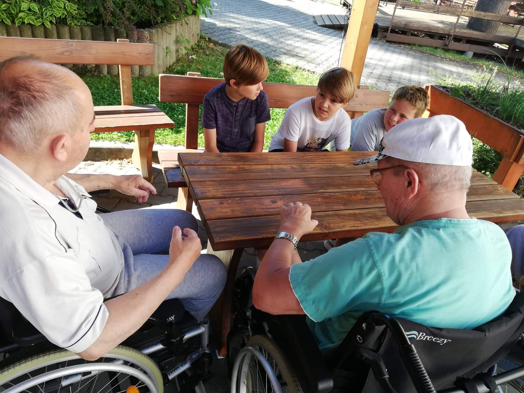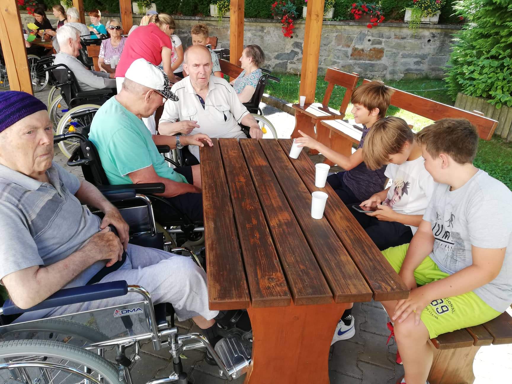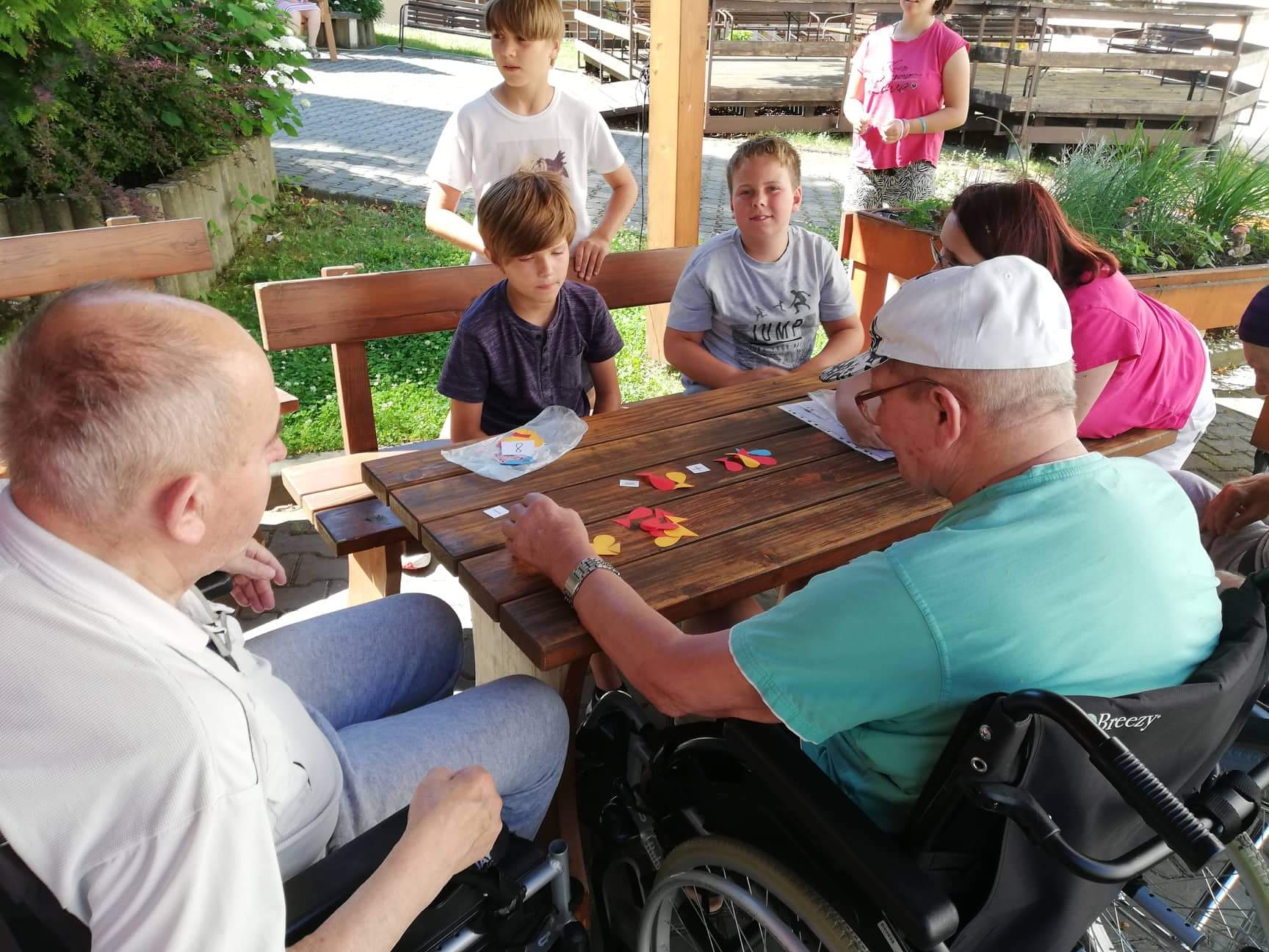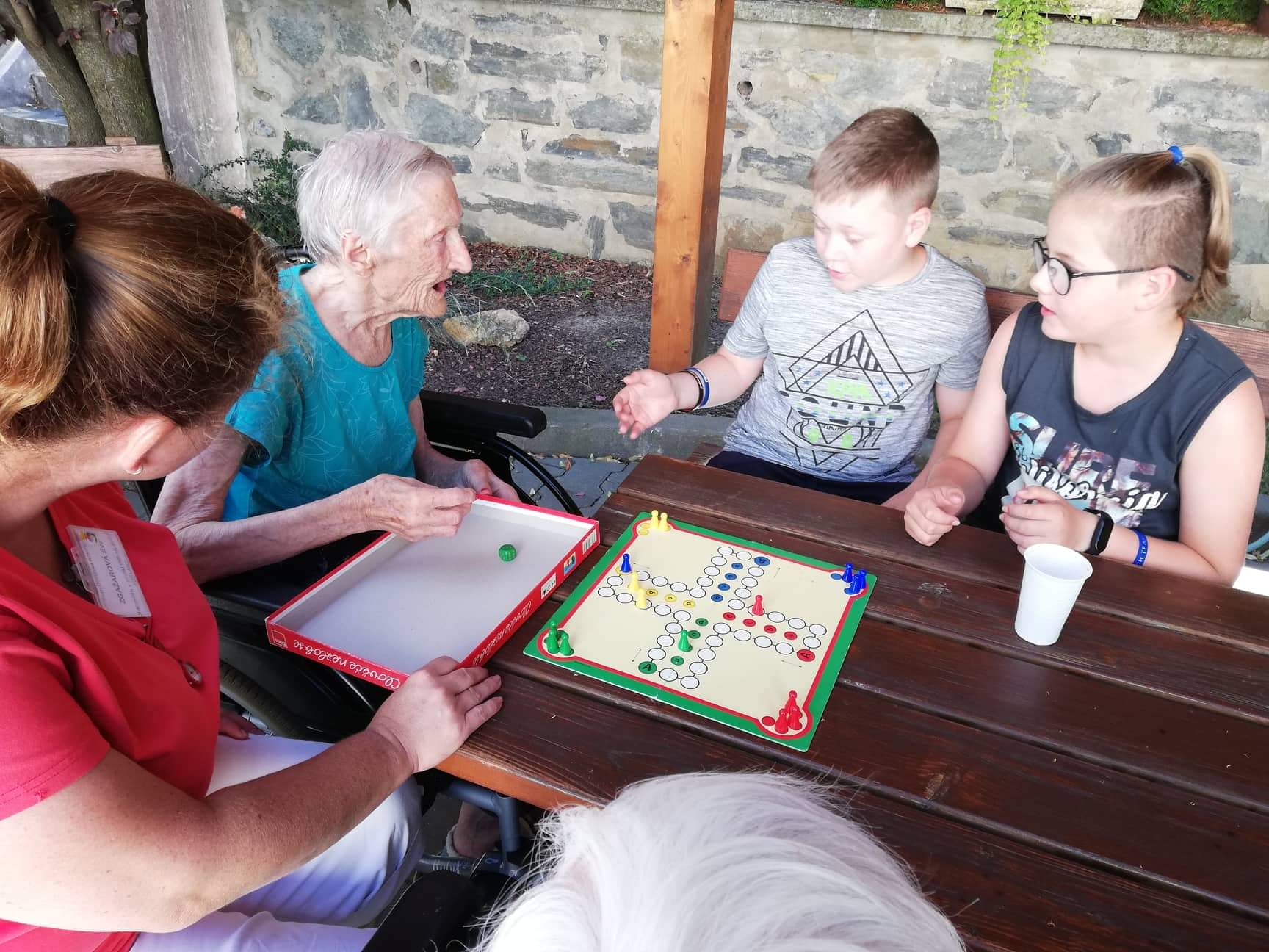 Dnes jsme do našeho zařízení pozvali žáky 1. stupně ZŠ Kokory, aby si s našimi klienty zahráli stolní hry, zapojili se do společného tvoření a vyzkoušeli si jízdu na invalidním vozíku.