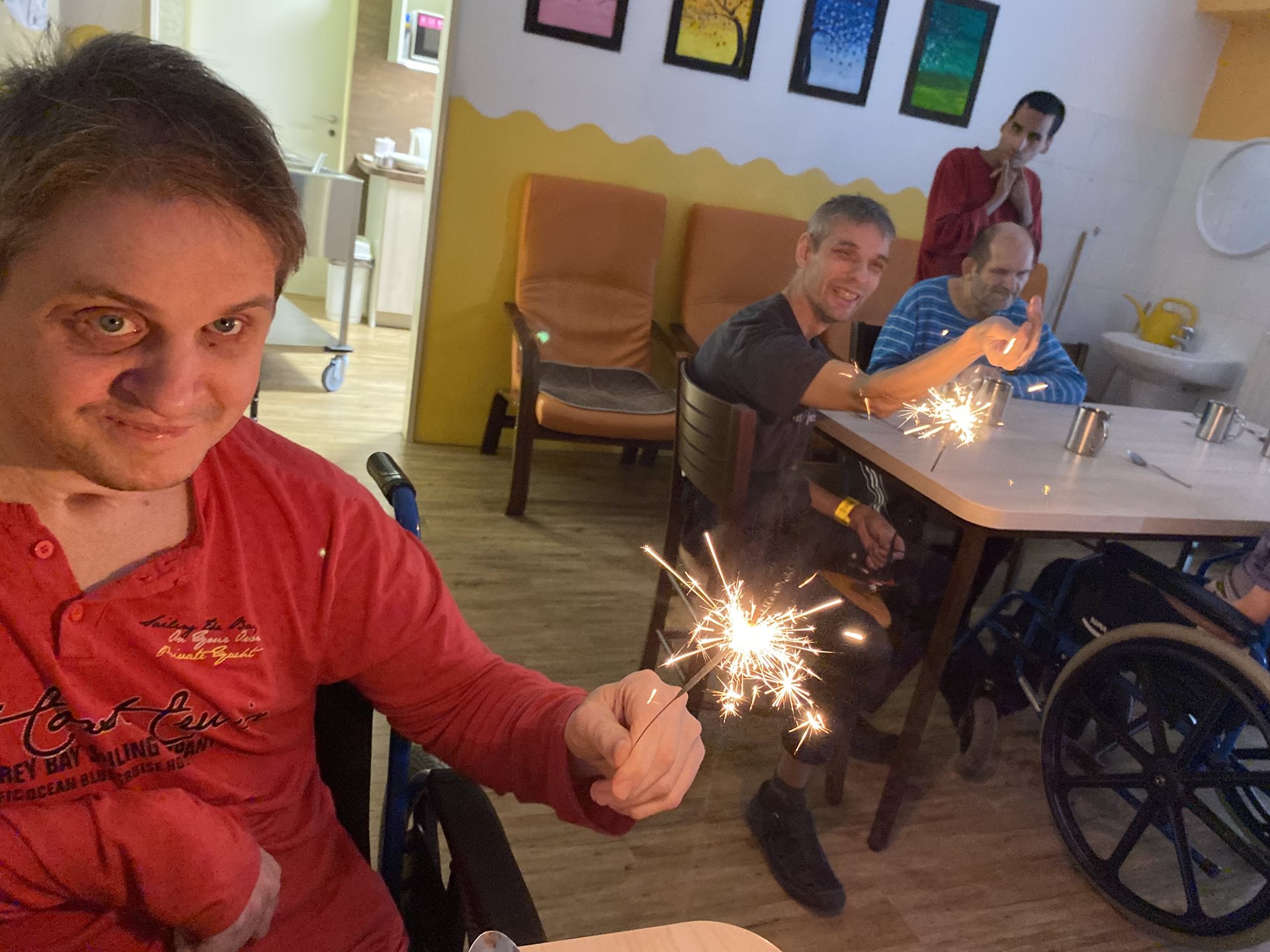 Připravili jsme posezení s občerstvením, na velkém plátně jsme si pustili krásný ohňostroj z Prahy, zapalovali jsme prskavky. Pouštěli jsme spoustu tanečních písniček, na které jsme si i společně zatancovali, a povídali jsme si o novoročních předsevzetích, které si lidé často dávají. A také jsme si jich několik dali. To nejhlavnější je - vzájemně si po celý rok dávat mnoho milých úsměvů.