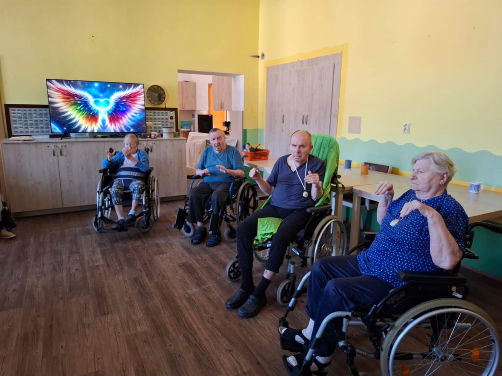 U nás se nezahálí – dvakrát týdně se scházíme na skupinovém cvičení, které je šité na míru našim seniorům. Procvičujeme ruce i nohy, posilujeme dýchání, trénujeme jemnou motoriku a hlavně si užíváme společně strávený čas. Pohyb seniorům přináší nejen lepší kondici, ale i dobrou náladu a úsměv na tváři. A právě to je pro nás největší odměna.