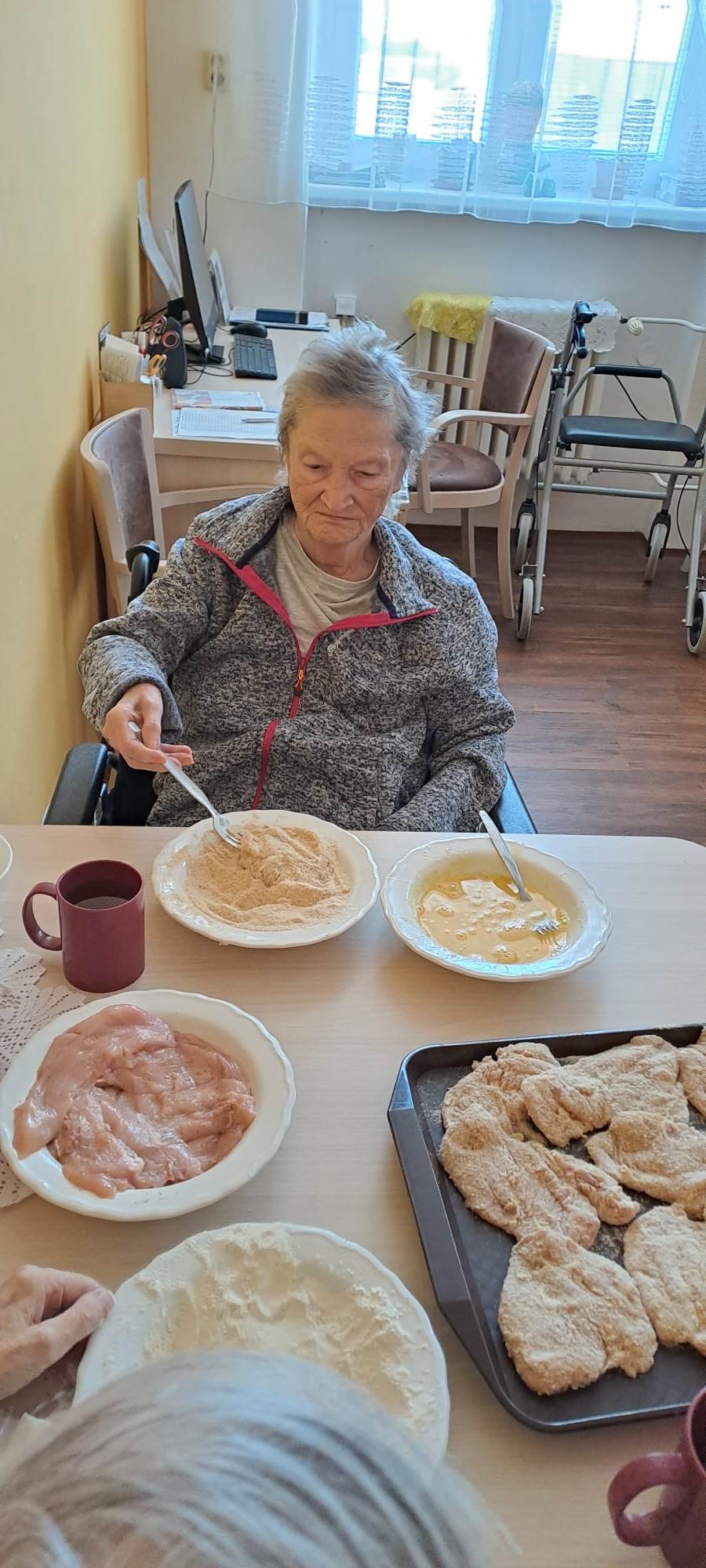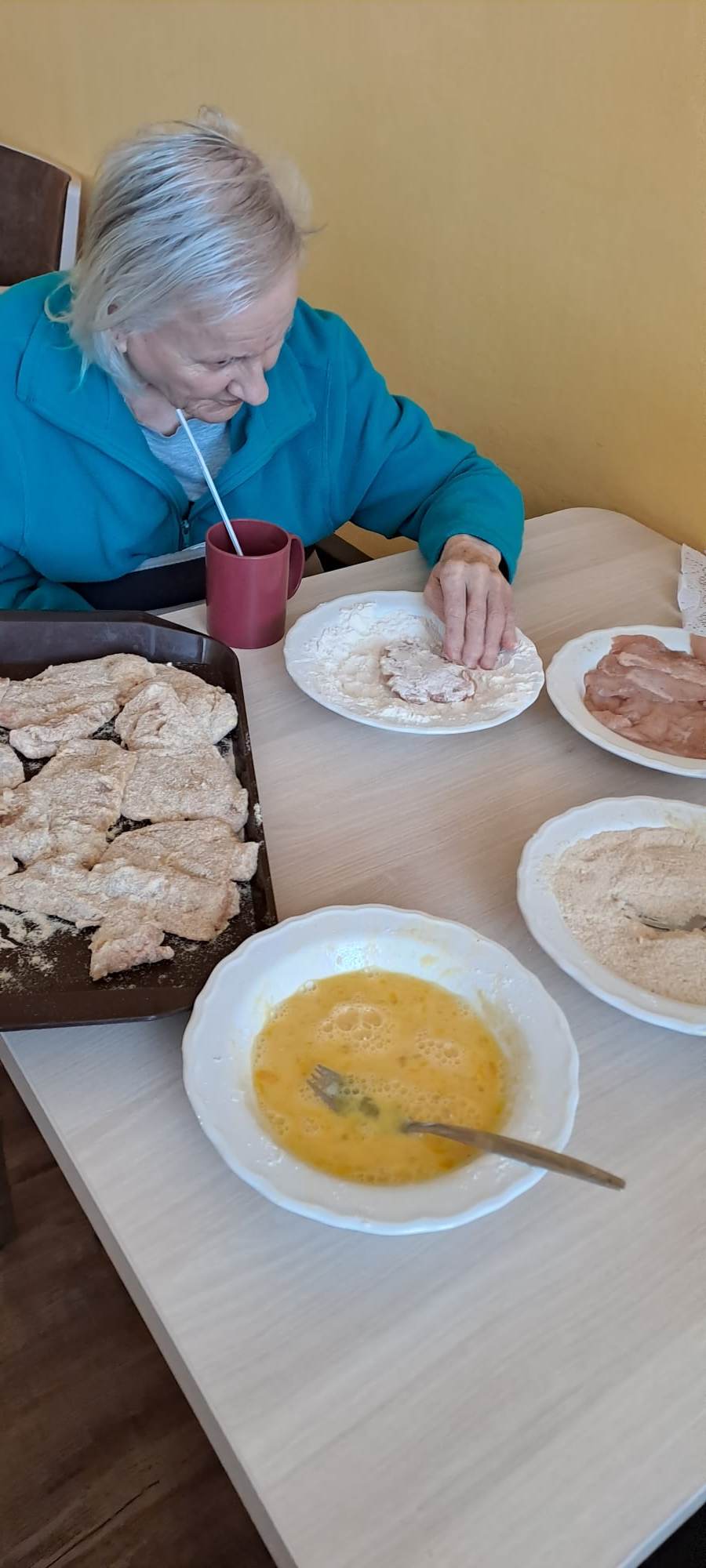 Koncept Smyslové aktivizace probíhá na spoustu témat. Tentokrát se senioři pustili do smažení řízků.