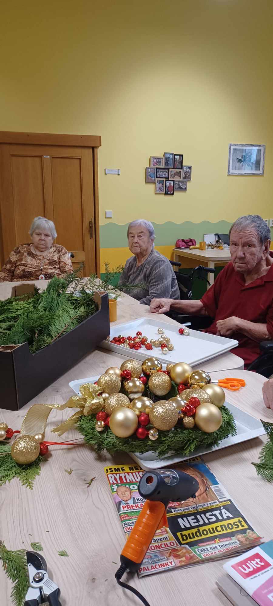 Při aktivizaci jsme si se seniory povídali o vánočních stromcích, zavzpomínali na lidové zvyky a pověry vztahující se k předvánočnímu času. Připomněli jsme si, na co se v minulosti používalo šídlo. Větve jehličnanů jsme pak využili při tvorbě vánočních dekorací.