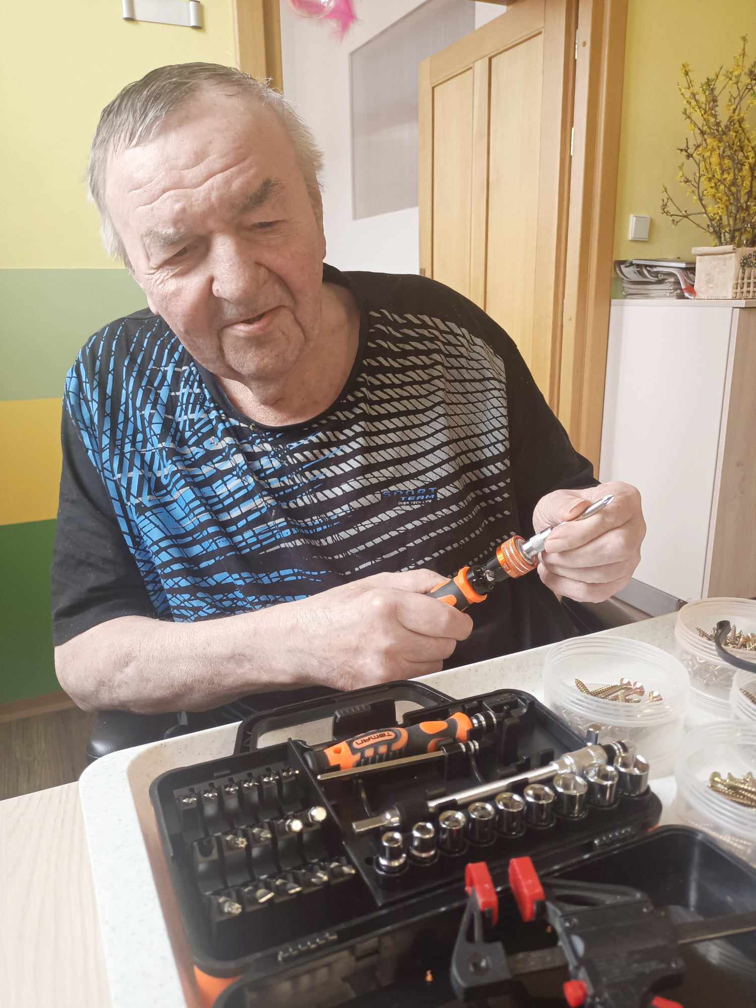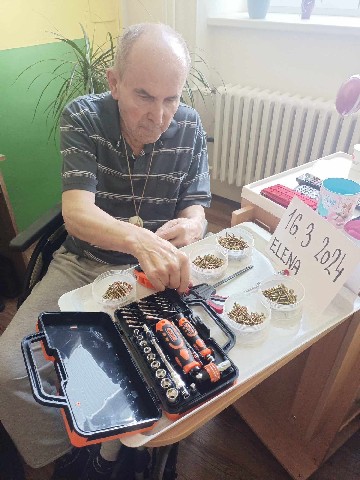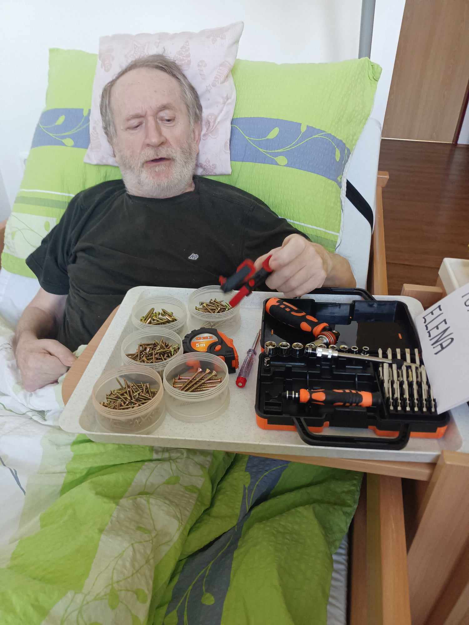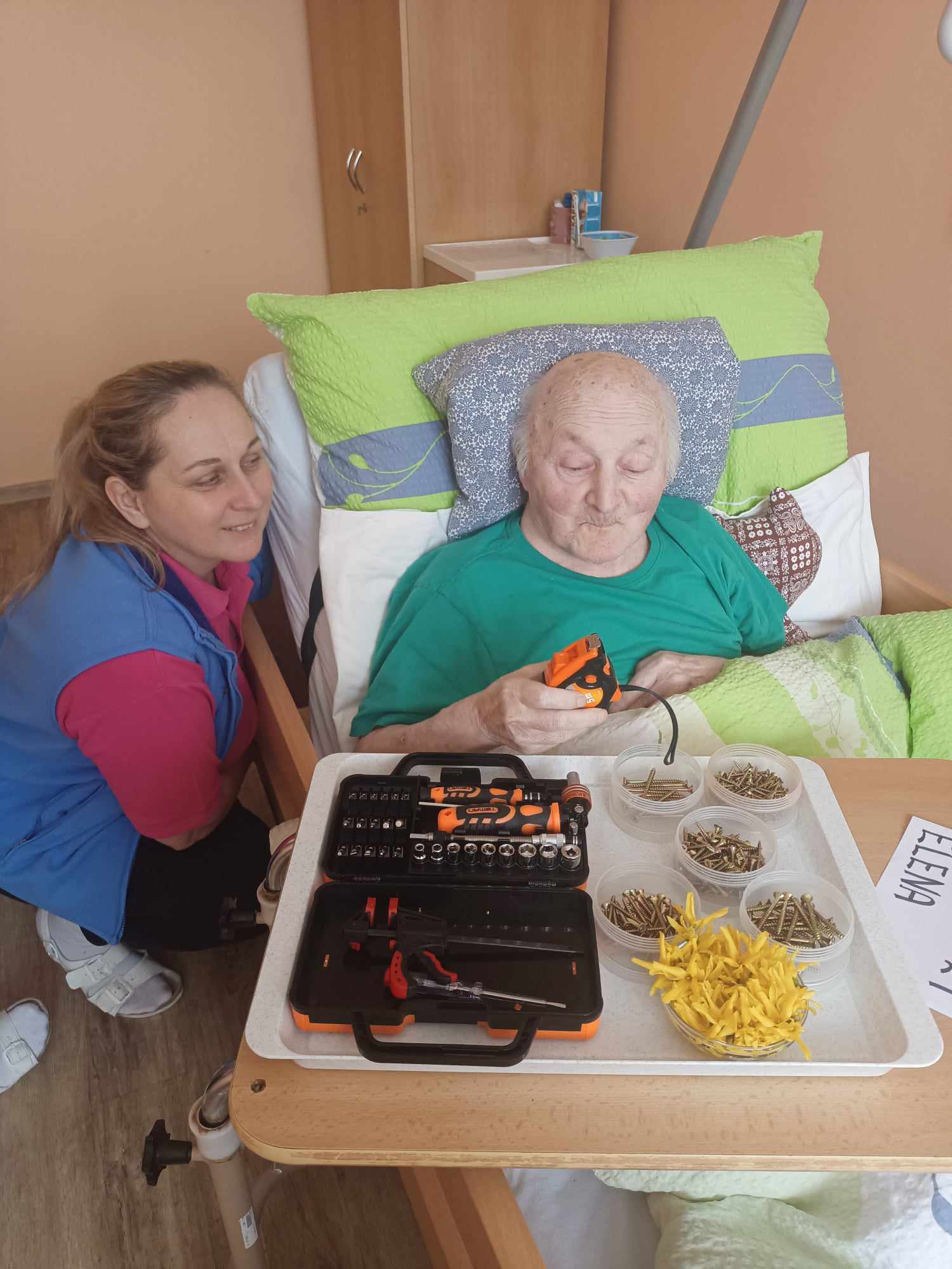 Individuální smyslová aktivizace, jejímž cílem bylo potěšit muže v našem domově pro seniory. Už jen pohled na připravené nářadí vyvolal úsměv na rtech a zajímavé vzpomínky. Pánové si postupně osahali různá nářadí, pojmenovali je, určili k čemu se používá a zavzpomínali, při jakých činnostech je používali oni. Aktivita měla velmi pozitivní ohlas. Padla slova chvály i poděkování, úsměvy i slzy vzpomínek.