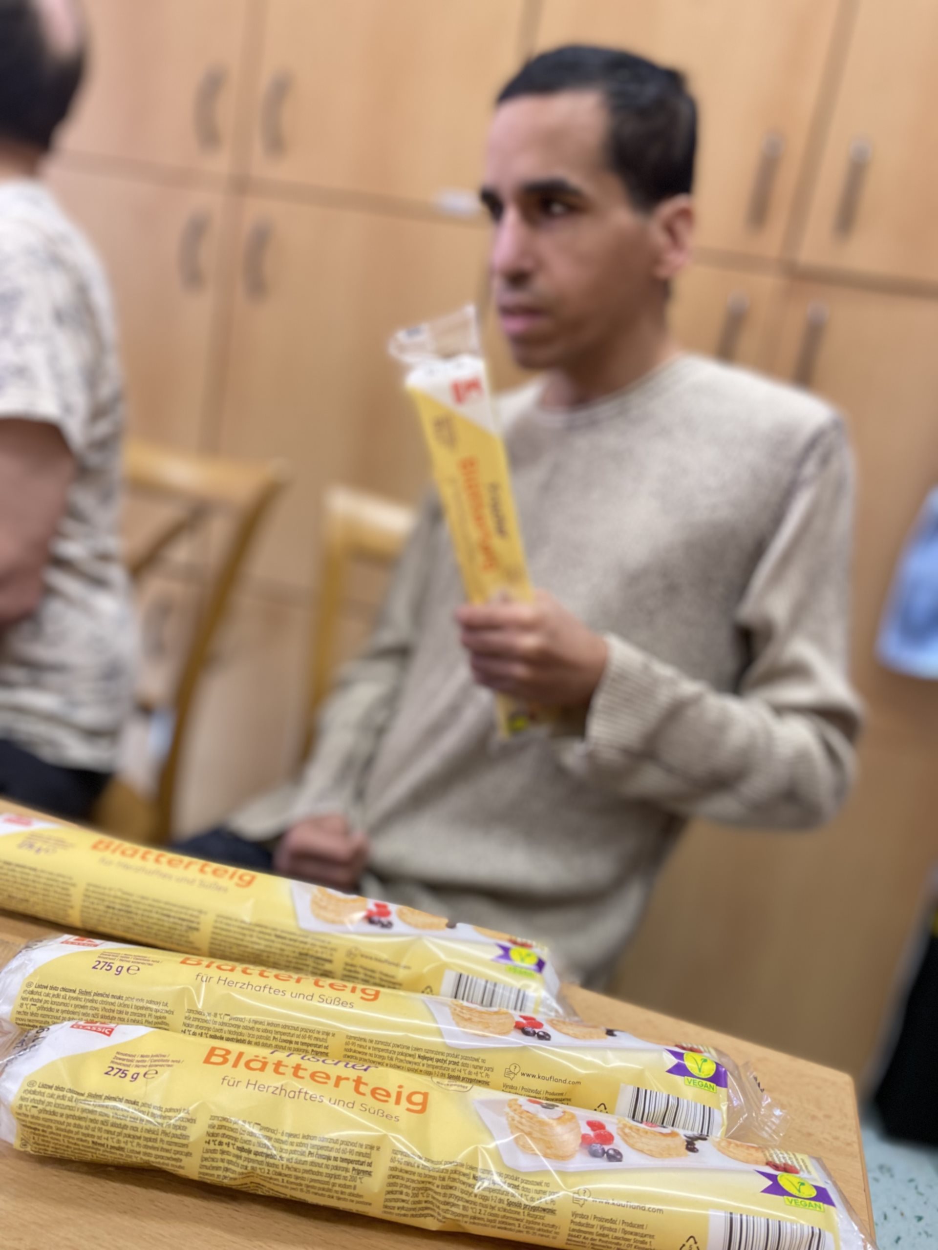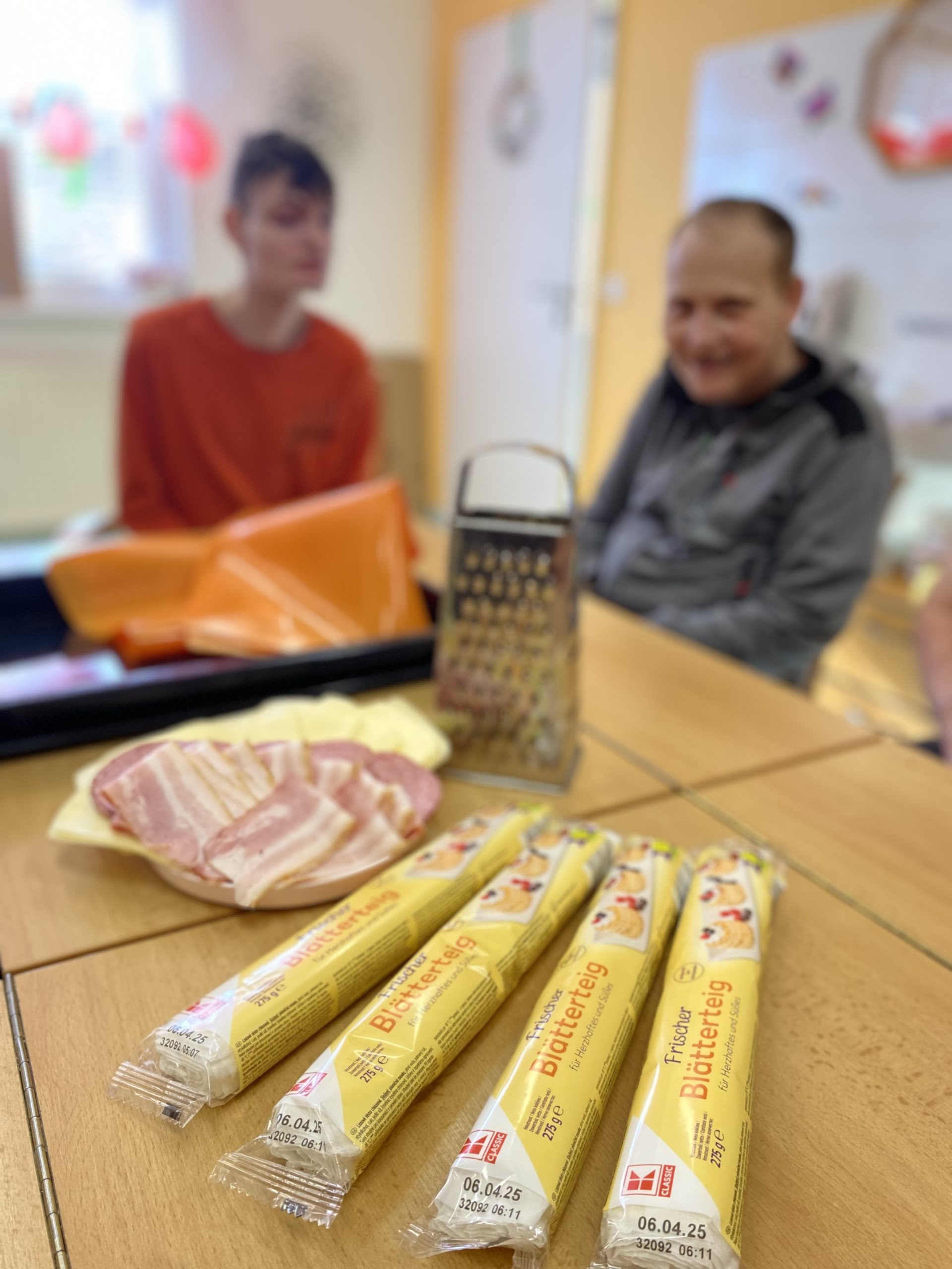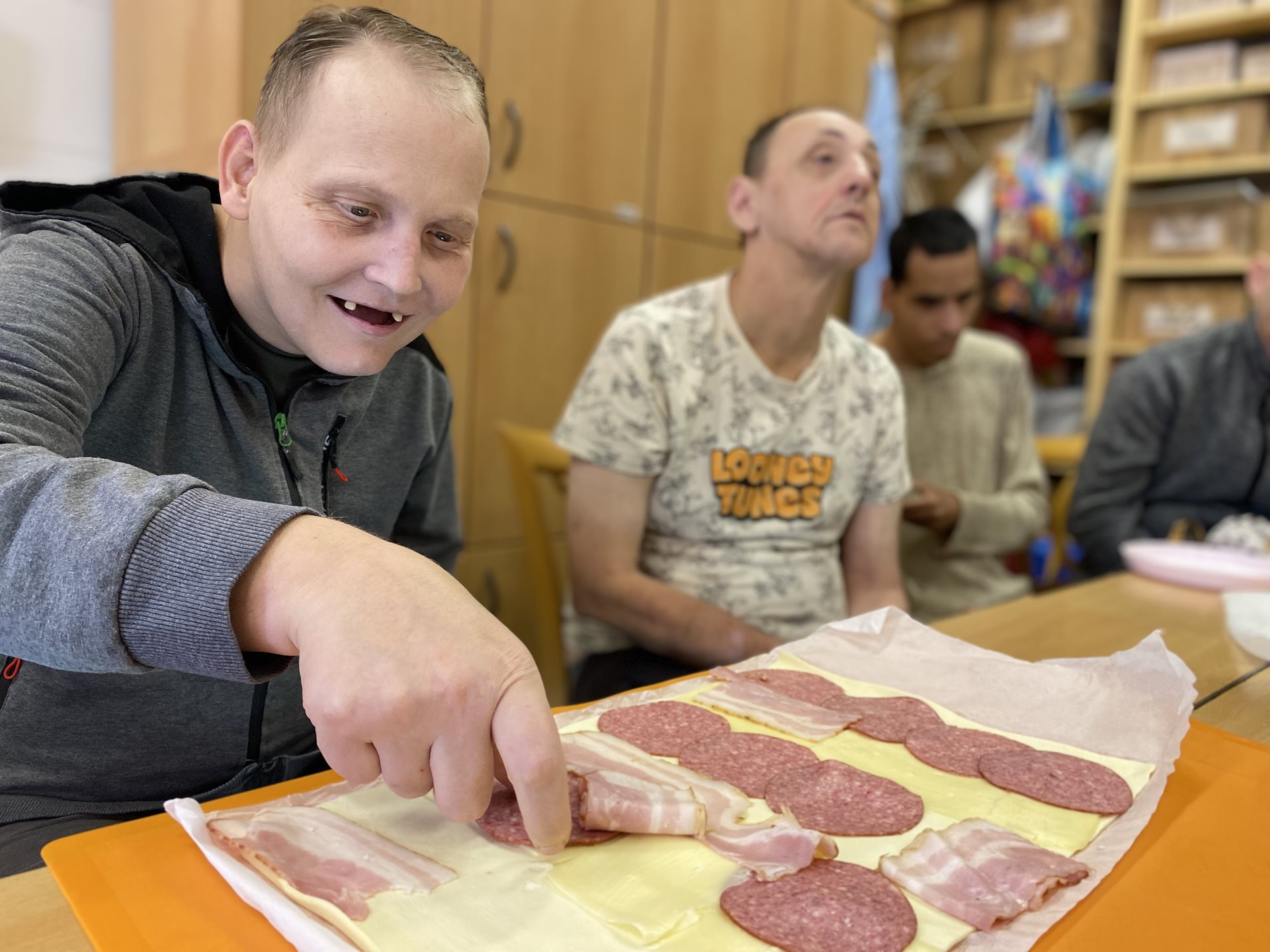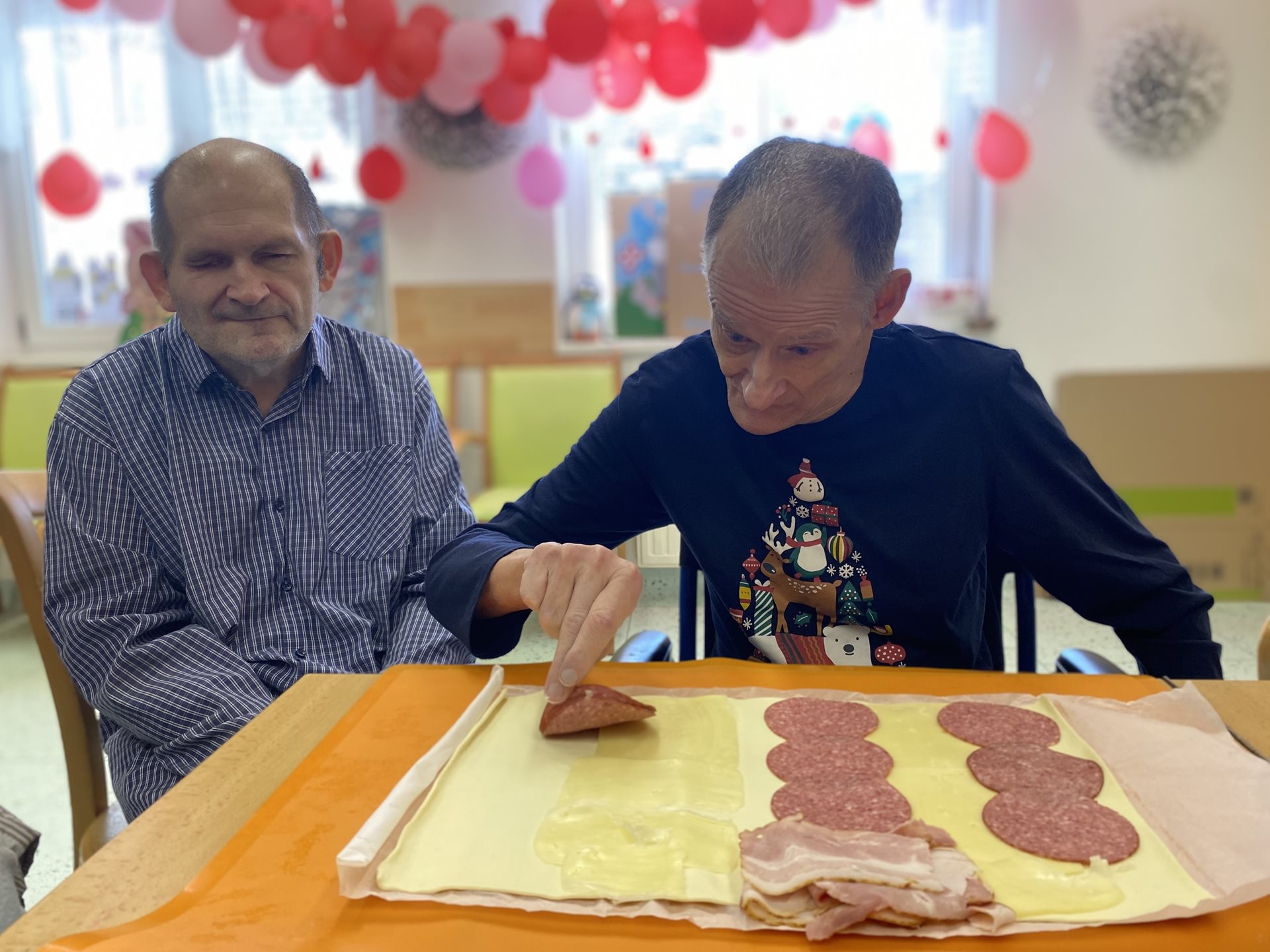 Koupili jsme si sýr, salám, slaninu a pustili se do práce. Roztáhli jsme si těsto, poskládali všechny ingredience, těsto pak zabalili a nakrájeli šneky. Sýr, salám a slanina lákaly svou vůní, tak jsme je také ochutnávali.