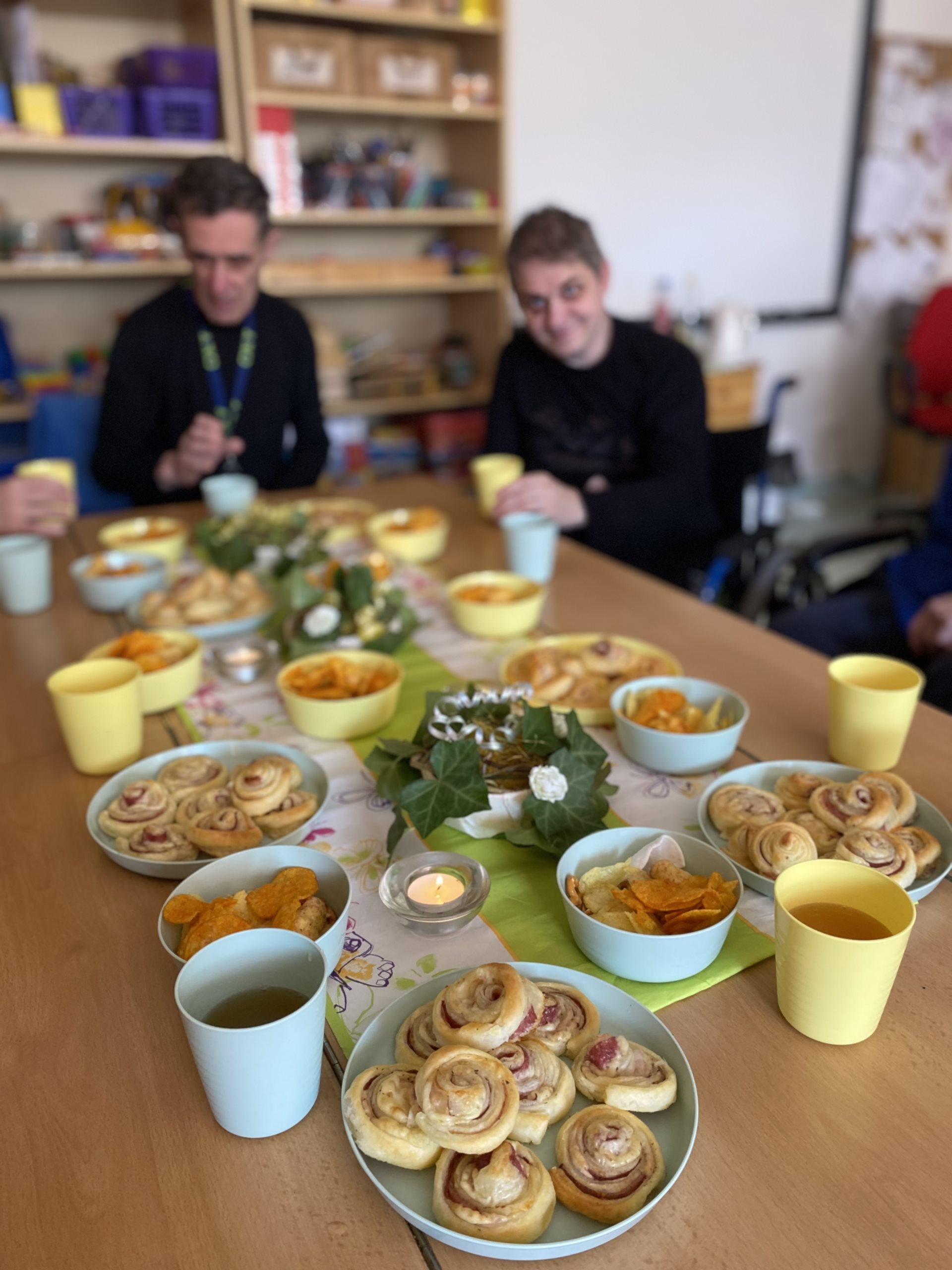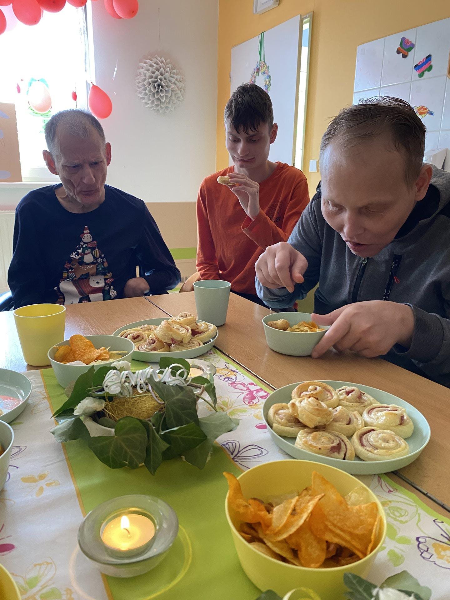 Připravili jsme si slavnostní tabuli a na teplých šnecích jsme si pochutnali. Poslouchali jsme české písničky, u kterých jsme hádali interprety. Naše chuťové buňky měly hody a my se těšíme na další podobné kuchtění.