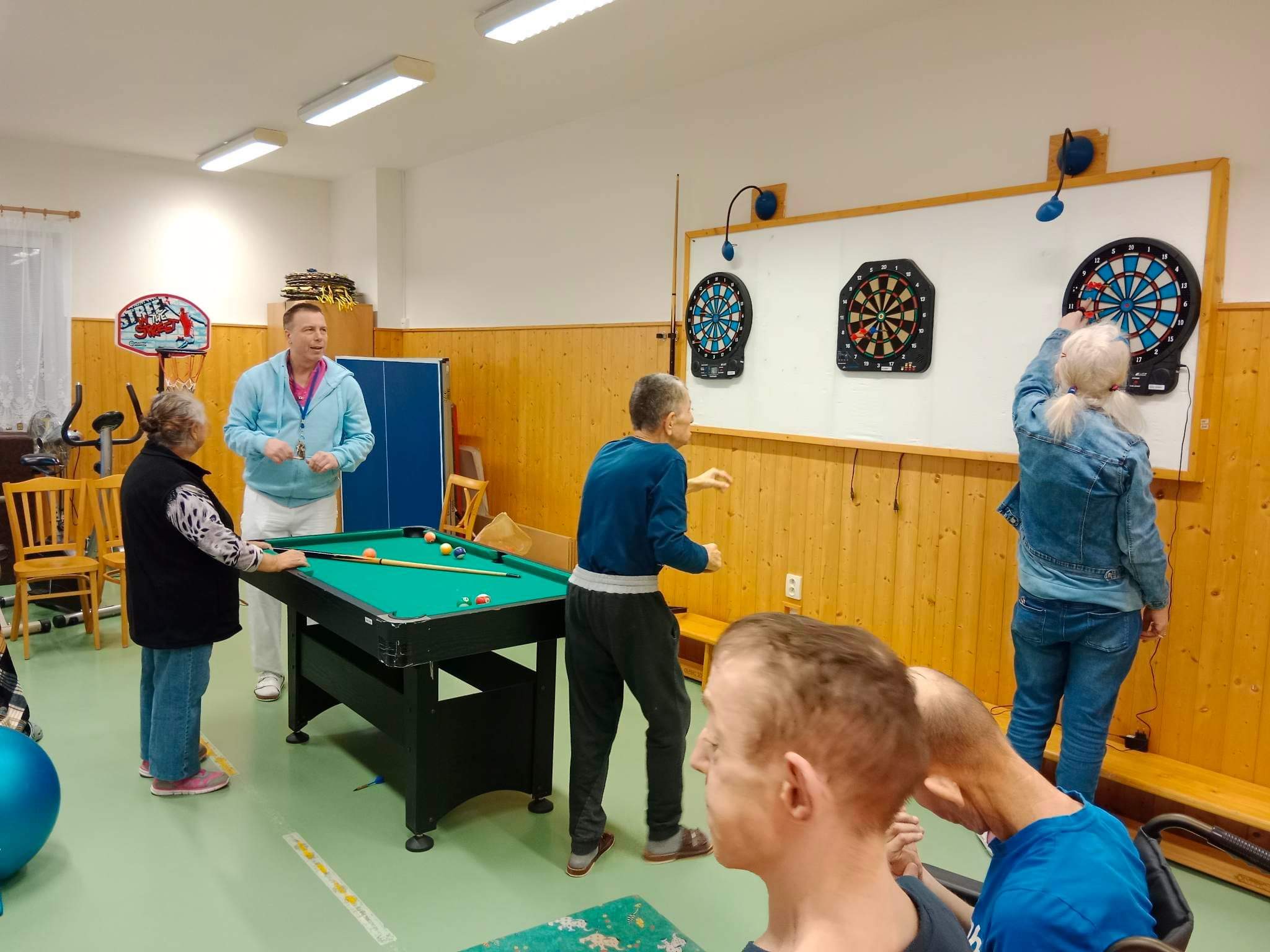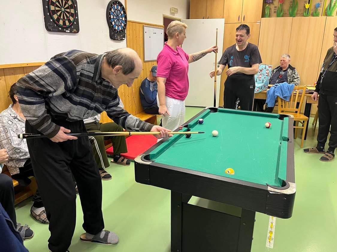 Uspořádali jsme si sportovní den. S nasazením jsme soutěžili v kulečníku či v šipkách.