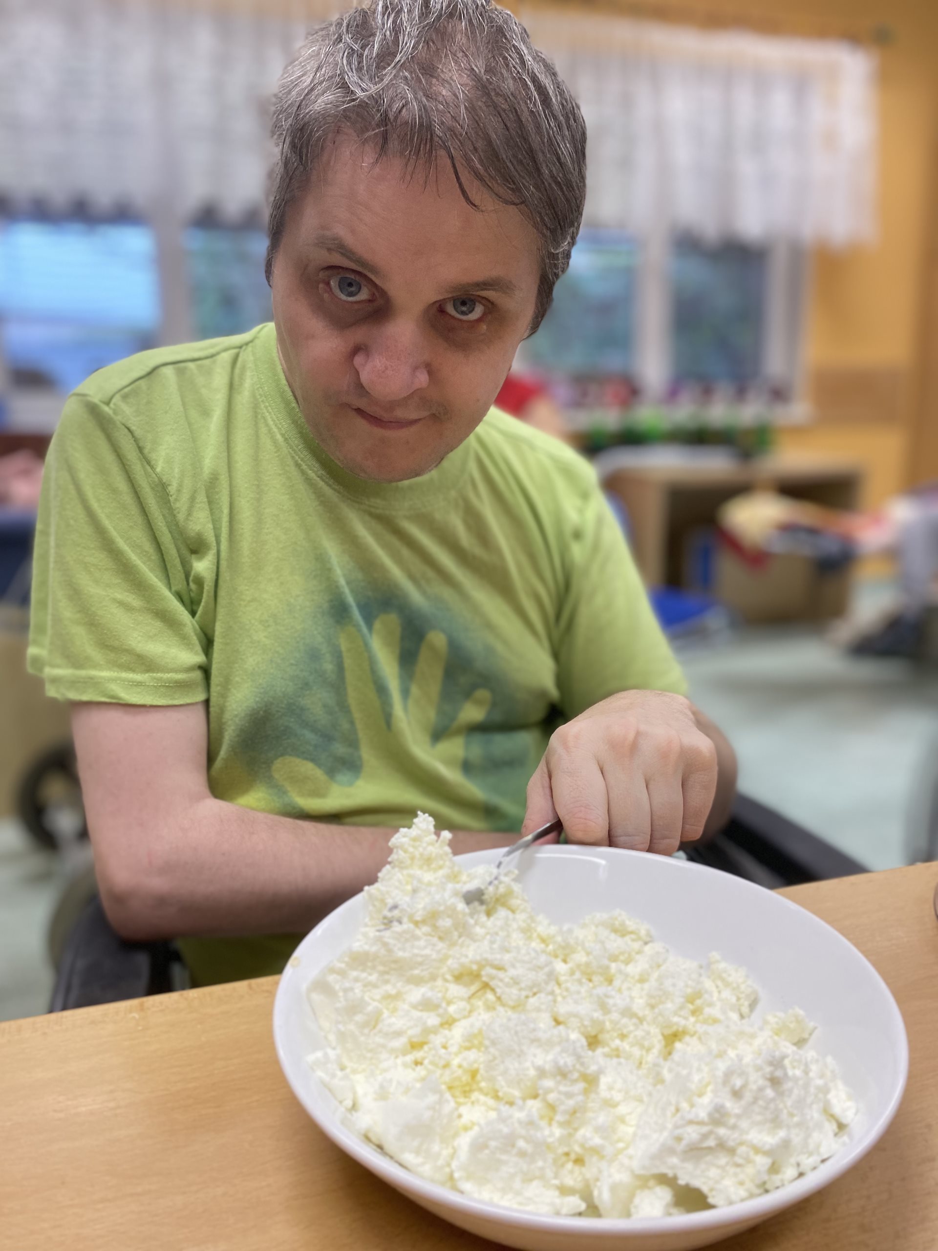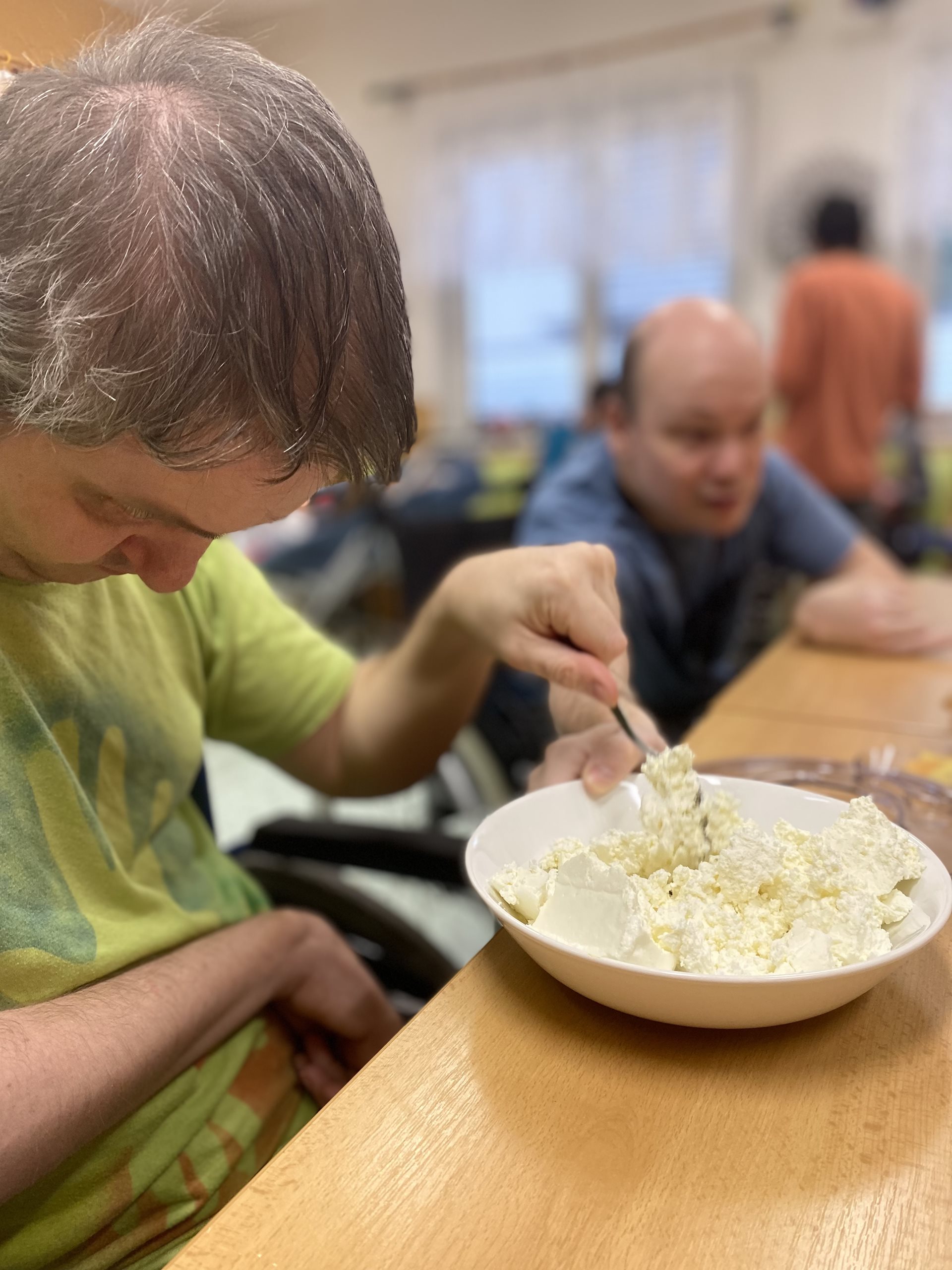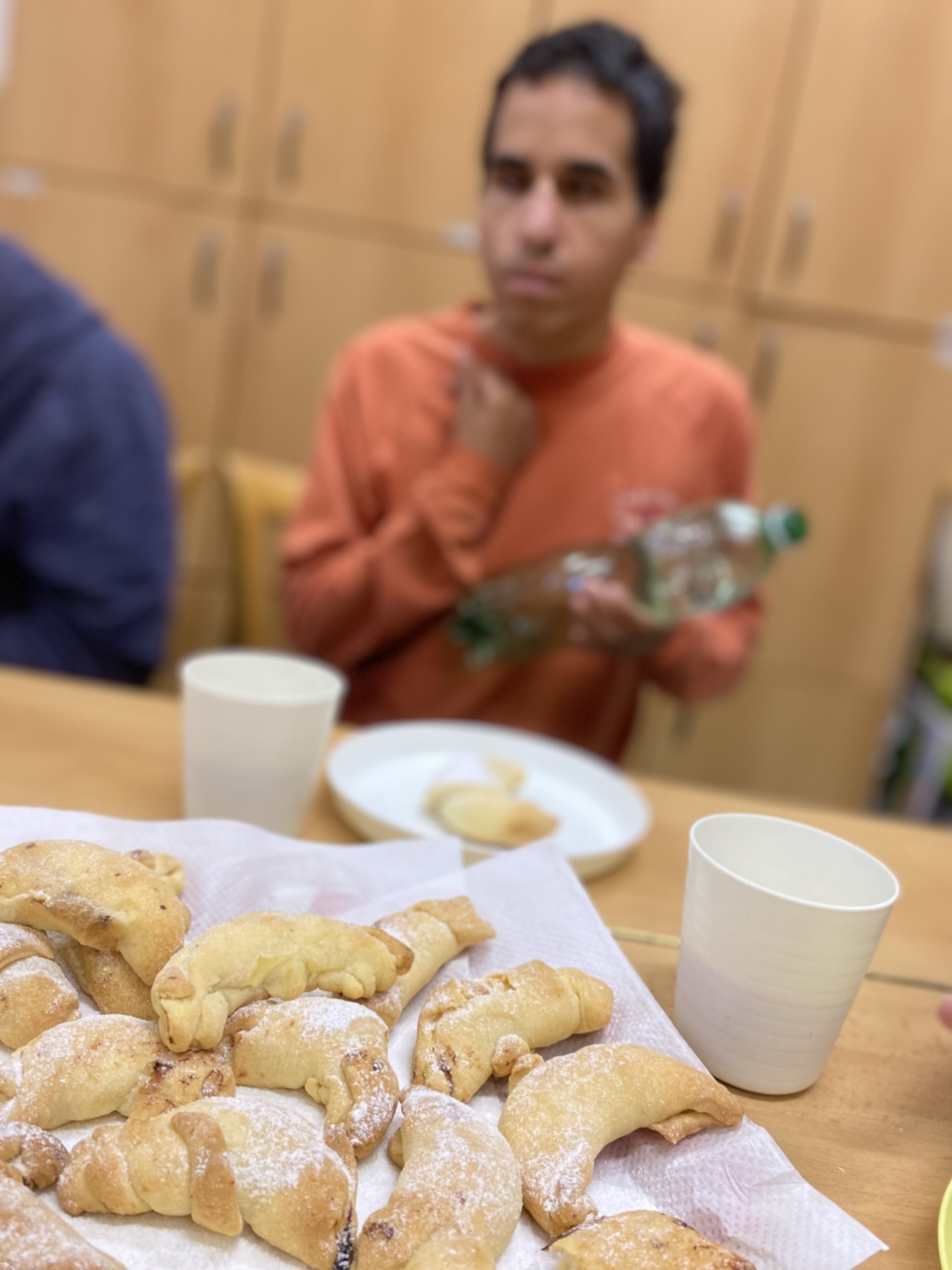 Vyváleli jsme těsto a vykrojili trojúhelníčky. Rohlíčky se plní různými náplněmi, my máme velmi rádi tvarohové nebo makové, tak jsme si tentokrát připravili tvaroh. Po přidání tvarohu jsme rohlíčky smotali a vytvarovali do podkovy. Symbol podkovy je spojen se svatým Martinem, který je často zobrazován na koni. Rohlíčky se nám povedly, je škoda, že jejich vůně není z fotek cítit.