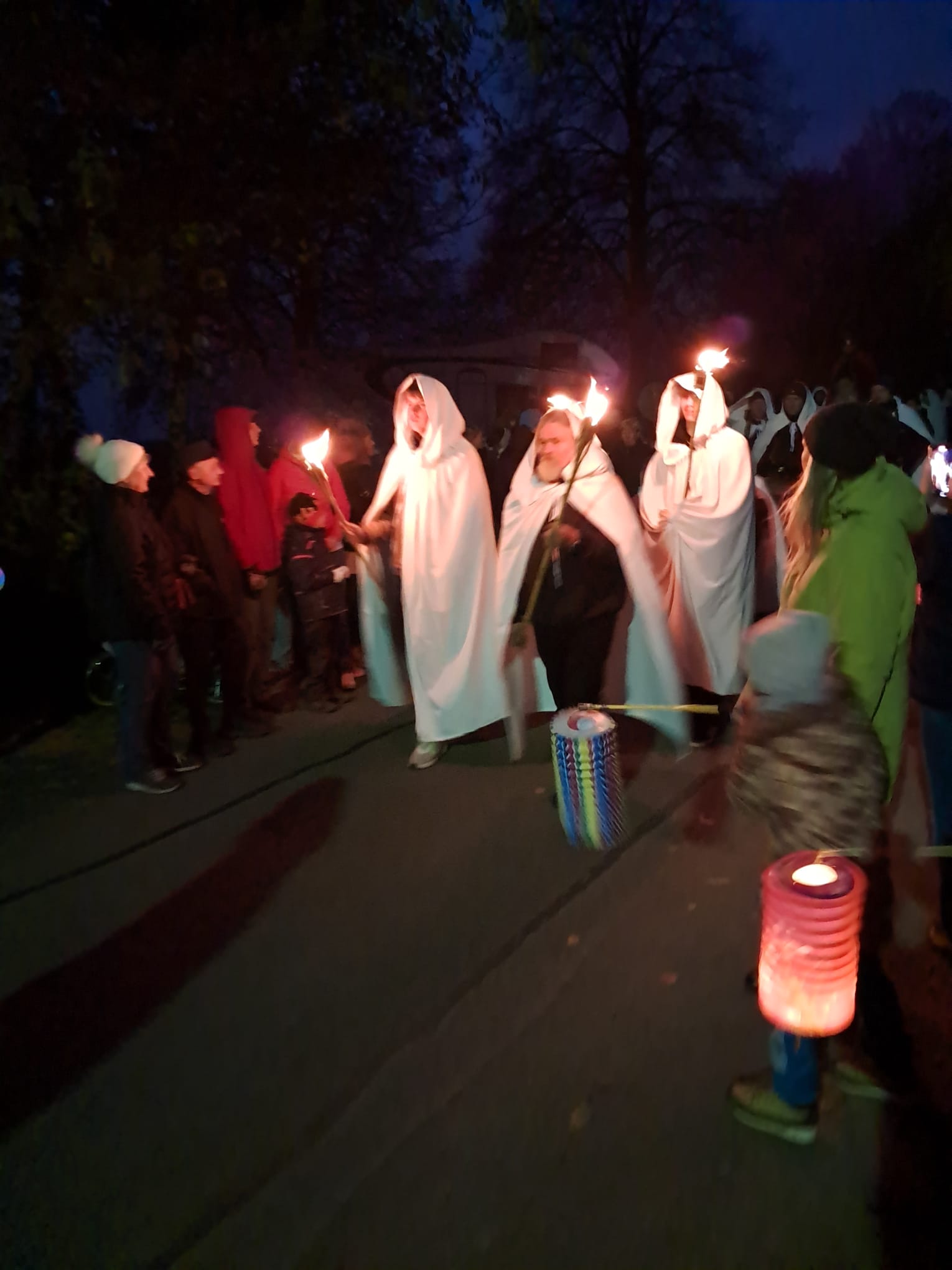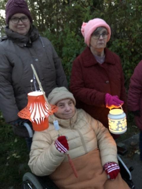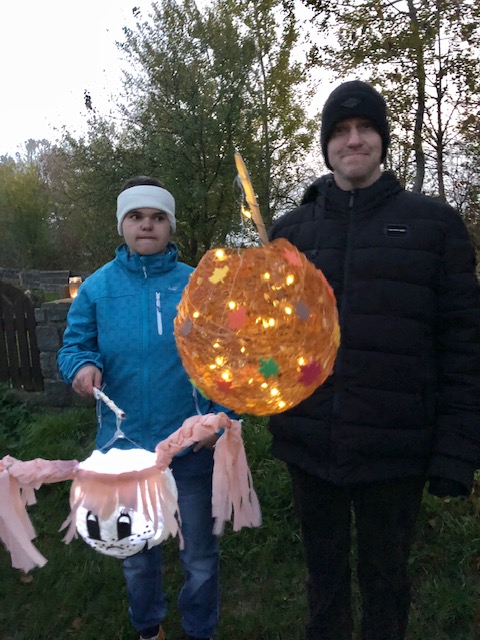 Blížící se svátek svatého Martina jsme si připomněli účastí na lampiónovém průvodu v obci. Pochod začal po setmění a v jeho čele jel Martin na bílém koni doprovázený světlonoši a bubeníky. Za nimi šli ostatní účastníci vybavení lampičkami nebo lampiony. My jsme si pro tuto akci vyrobili lampiony vlastní. I když byla pěkná zima, došli jsme v průvodu až na místní hřiště, kde jsme si dali horký čaj a ochutnali dobroty nabízené ve stáncích. A dokonce sněžilo!