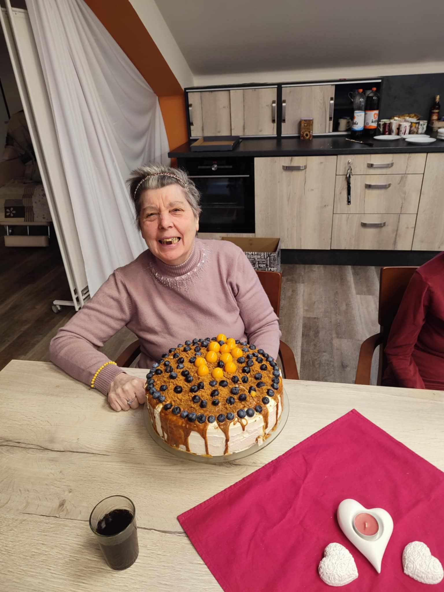 Oslava narozenin proběhla v příjemné atmosféře. Ke slavnostnímu přípitku se podával vaječný koňak a voňavá káva, které doplnily tuto významnou chvíli. Oslavenkyně přijala gratulace, drobné dárky i květinu, která ji potěšila nejvíce. Společné chvíle u stolu provázela přátelská konverzace, smích a vzpomínání.