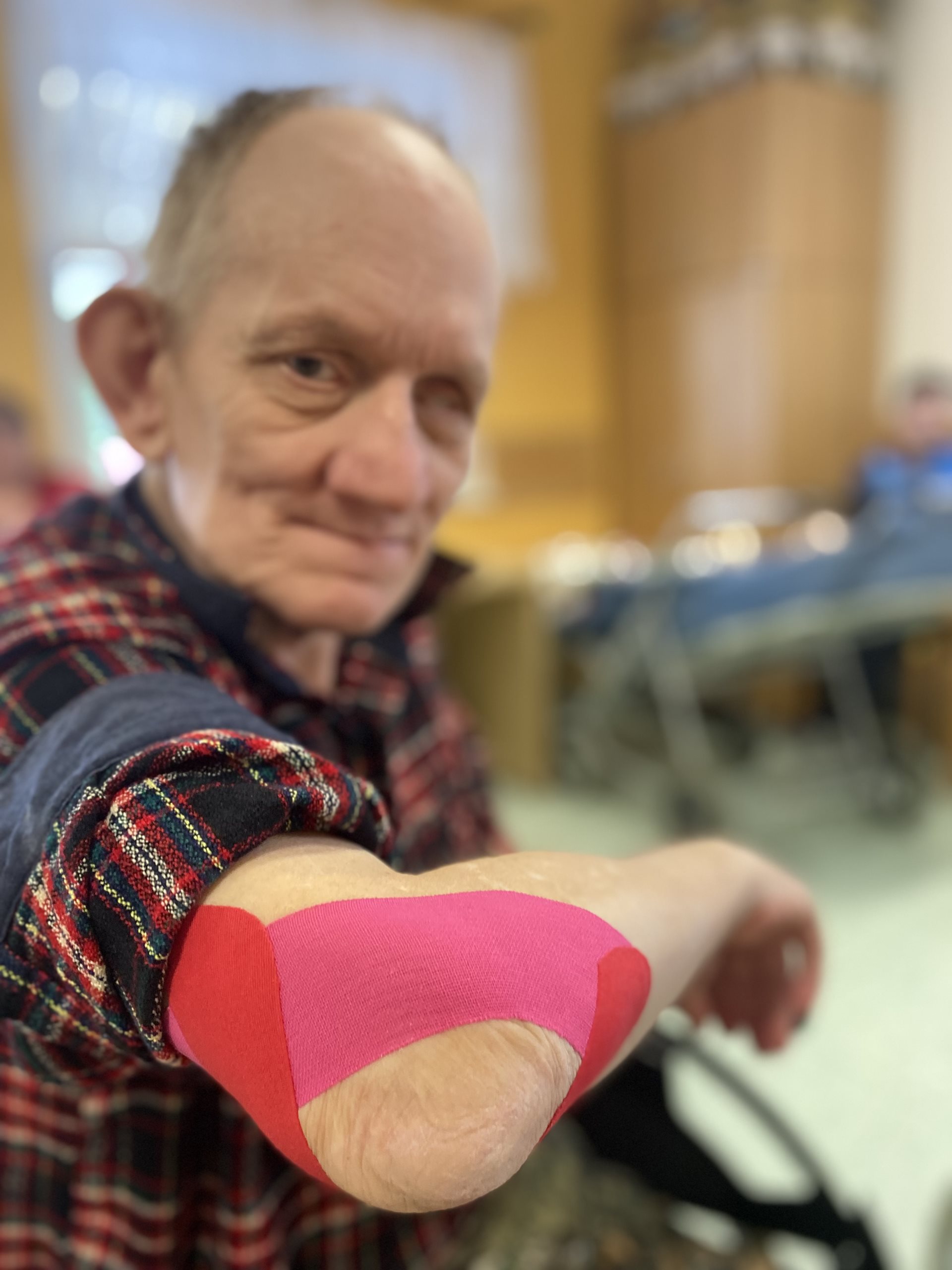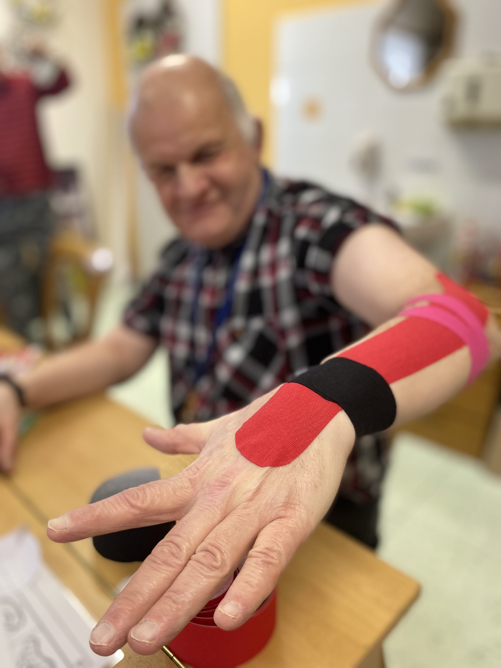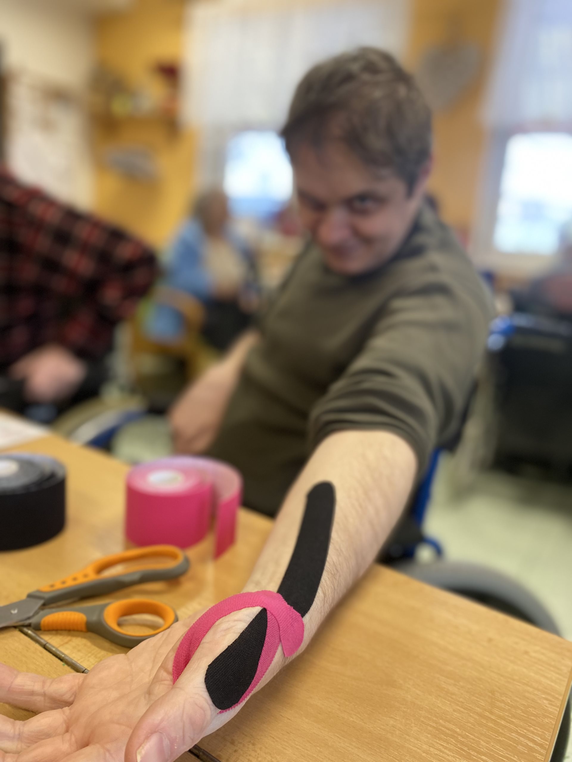 Pracovnice našeho domova byly na školení tejpování a nejlepší metodou zlepšování se je zkoušení, tréning a .získávání praxe. Povídali jsme si o našem těle a o tom, co je vlastně tejpování.
