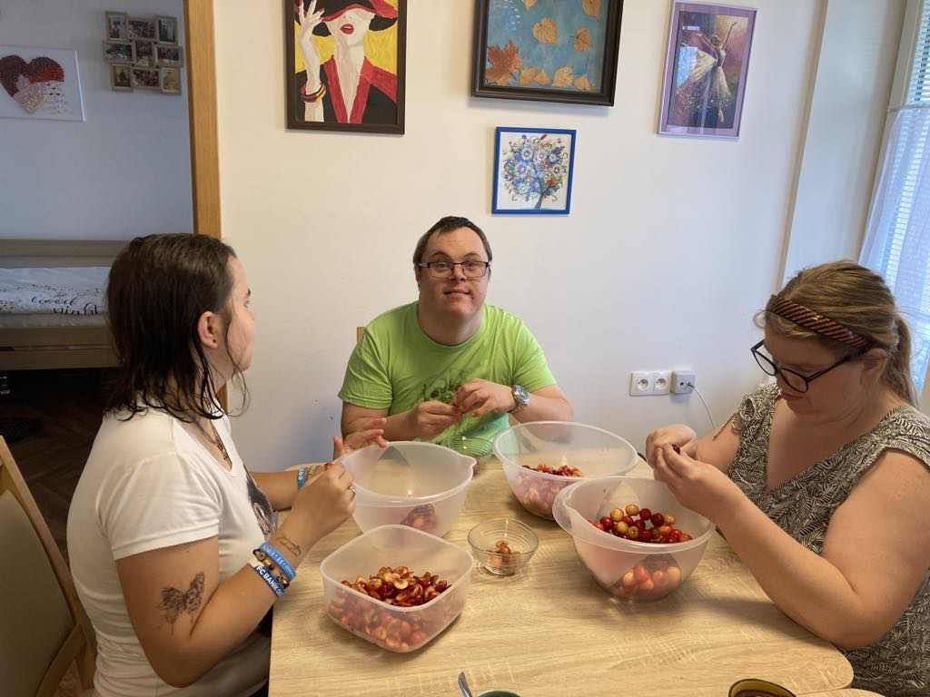 Nedělní den byl na startovacích bytech ve znamení třešní. Dopoledne se trhalo, odpoledne zpracovávalo. Upekli jsme si výborný koláč a pecky po usušení využijeme na relaxační polštářky.