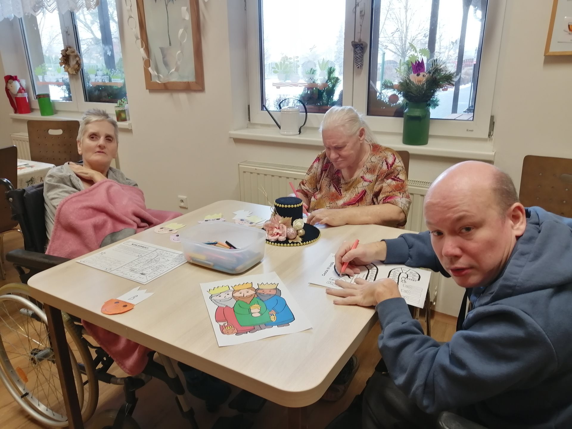 Povídání o mudrcích, výroba papírových králů v podobě zápichů či jiných výtvorů dle samostatných výběrů, kvízy i připomenutí tříkrálové písně:" My tři králové jdeme k vám, štěstí zdraví vinšujem Vám...", bylo zpestřením aktivizačních činností.