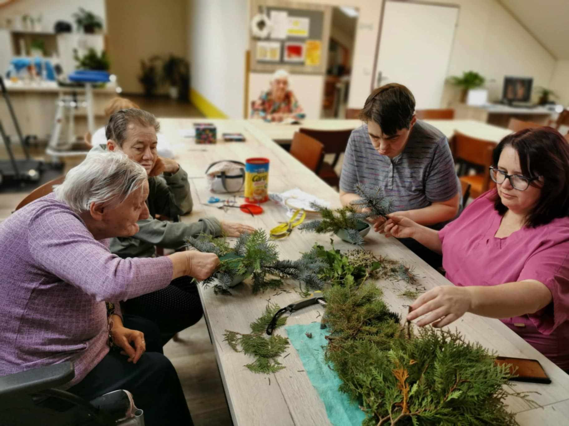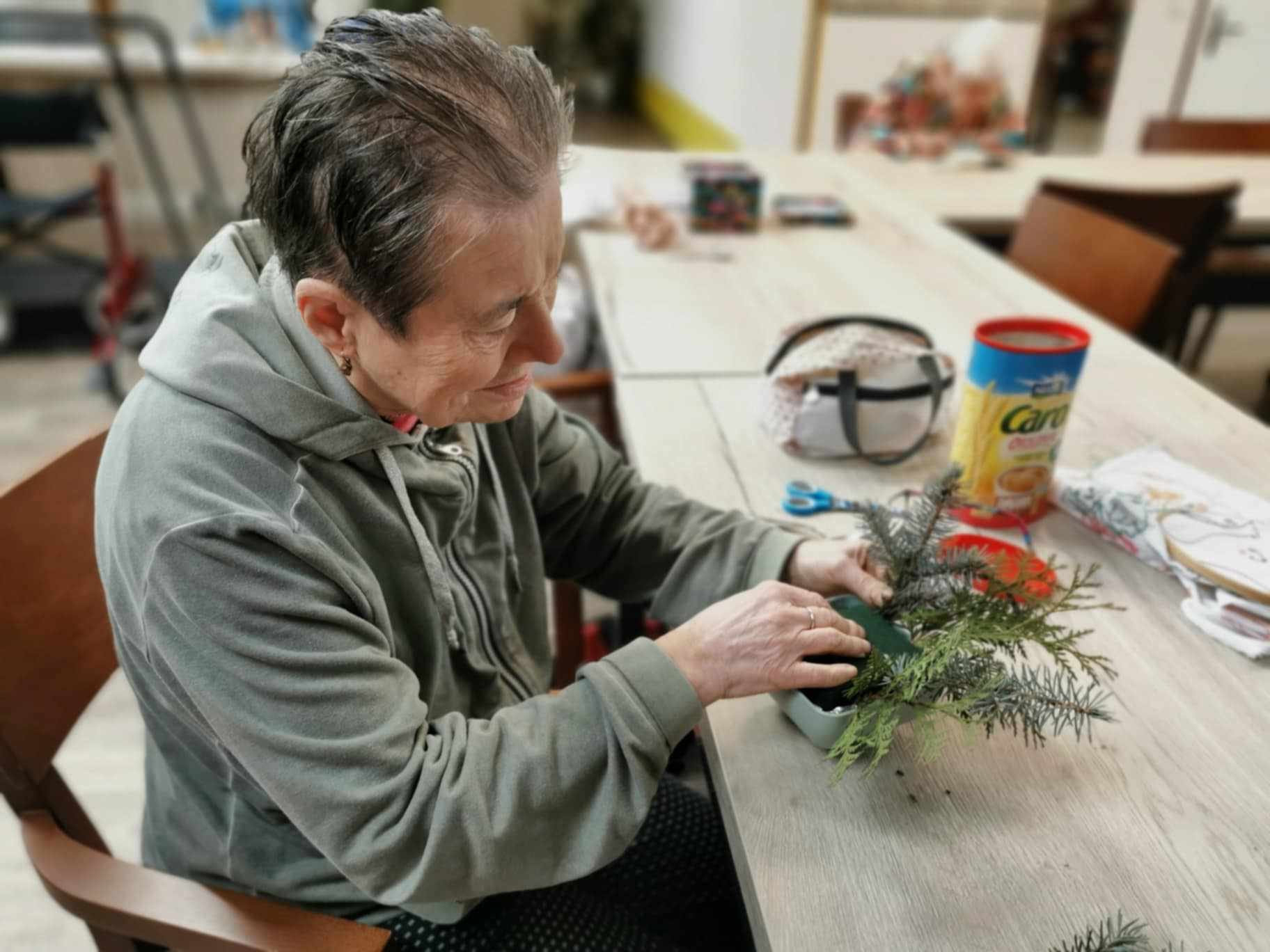 Tvoření tematické výzdoby patří neodmyslitelně k předvánočním aktivitám v našem zařízení. Klienti se vždy rádi zapojují a hotovými výrobky si zdobí oddělení i své pokoje.