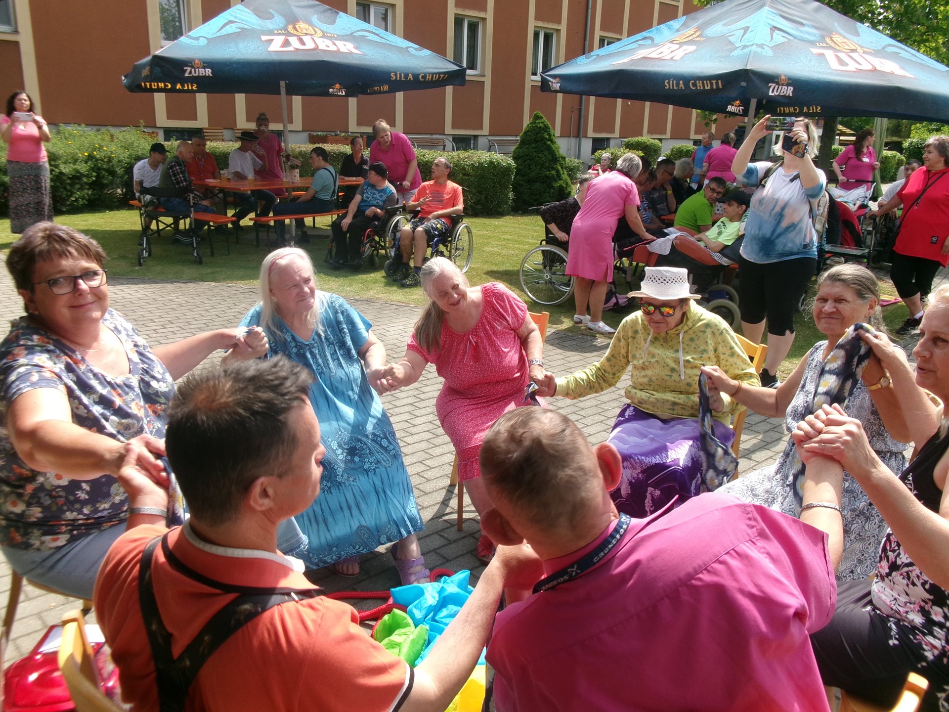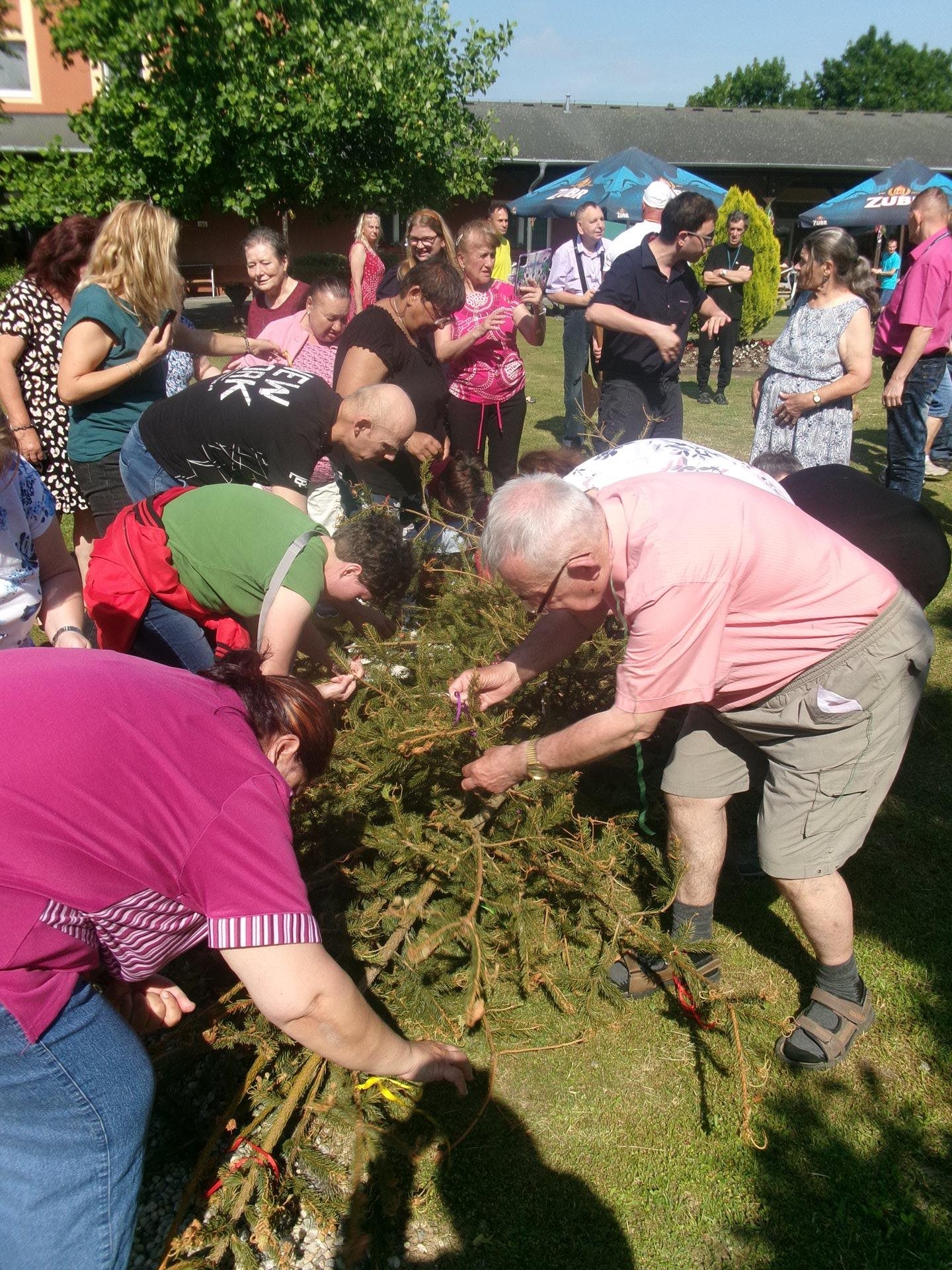 Již tradičně se na našem pracovišti v Dřevohosticích uskutečnilo kácení májky. Navštívili nás kamarádi z Kokor, Přerova, Bystřice pod Hostýnem a Skaličky. Tentokrát se celá akce nesla v duchu svižného tance twist, který jsme se mohli společně naučit. K twistu nás hudebně doprovodila kapela Modří motýli. Dále jsme shlédli zajímavé taneční kreace v rámci presentace tanců na židlích. Mohli jsme si společně zazpívat s panem Carlosem, který nám zahrál naše nejoblíbenější hity. Jelikož bylo krásné slunečné počasí, nesmělo chybět osvěžení ve formě piva či limonády, ke kávě jsme měli výborné tvarohové a ořechové koláče a nebyli jsme ošizeni ani o kabanos s hořčicí. A co naše májka? S jejím skácením nám samozřejmě pomohl pan kastelán z místního zámku, který dorazil přímo ze zámecké kuchyně. Děkujeme všem za účast a příští rok na shledanou.