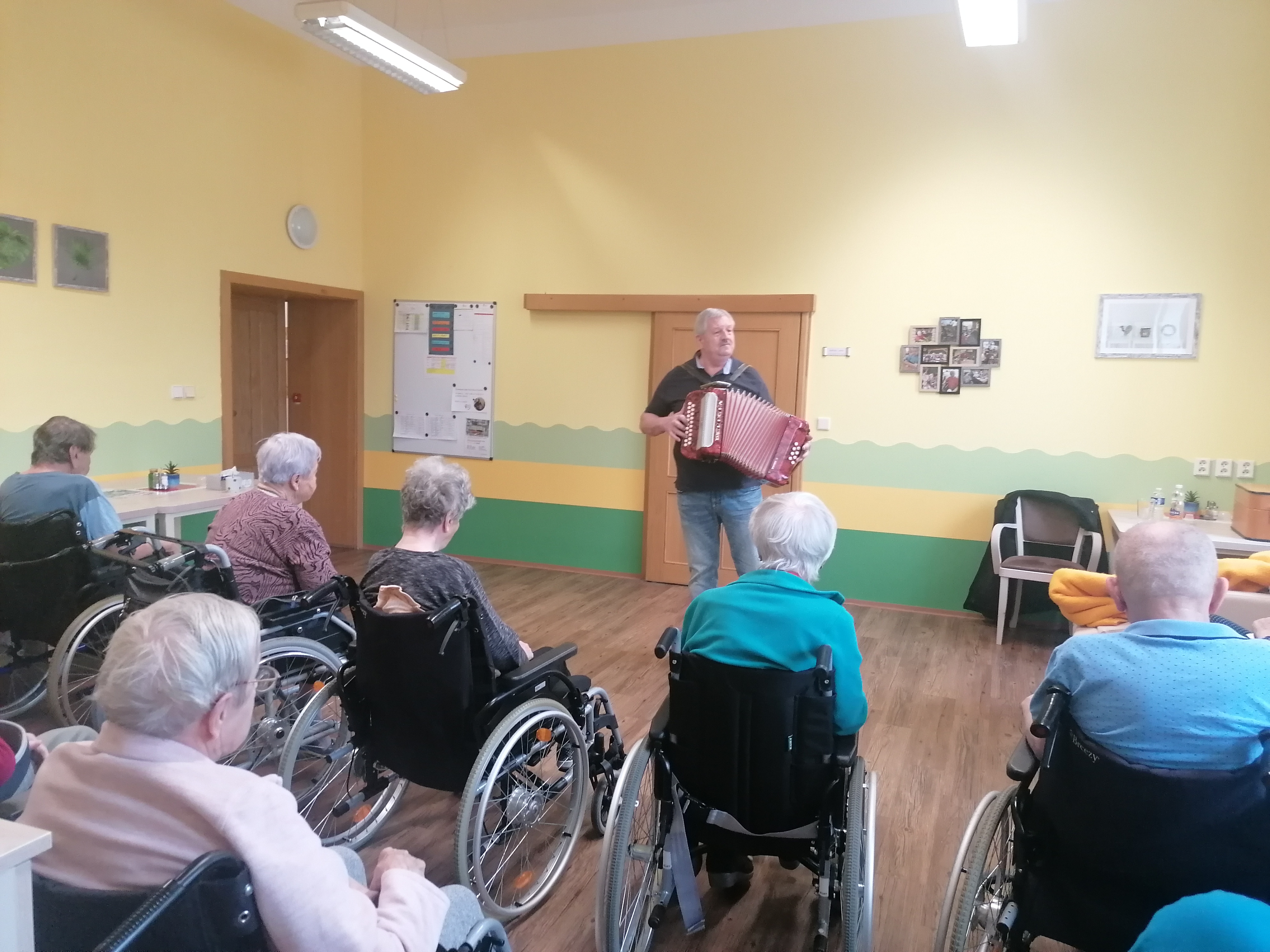 Poslední lednový den se v našem zařízení opět rozezněly tóny heligonky pana Rostislava Frantíka.