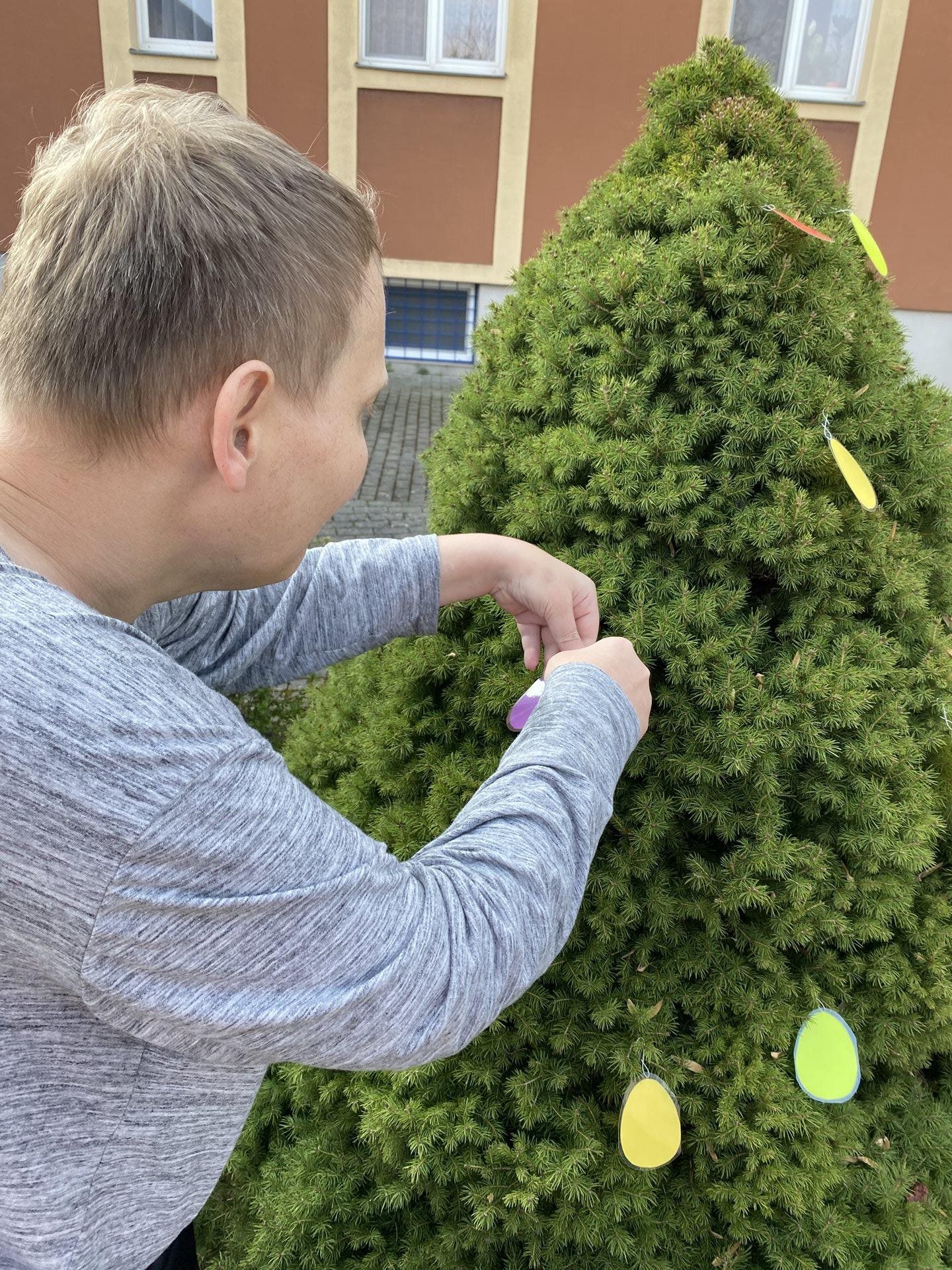 Chtěli jsme zahnat zimu do kouta a přivítat jaro. Vyrobili jsme si strom Vajíčkovník, kam jsme pověsili připravená barevná papírová vajíčka. Tento akt zavěšení vajíčka je jen vyvrcholením lidové slavnosti, která navazuje na staré pohanské oslavy návratu jara, vyhnání zimy a vítání života. My jsme si ke každému pověšenému vajíčku řekli svá přání a budeme si moc přát, aby se nám všem tato přání vyplnila. Zatím se můžeme těšit z krásně pestrobarevného vajíčkového stromečku.