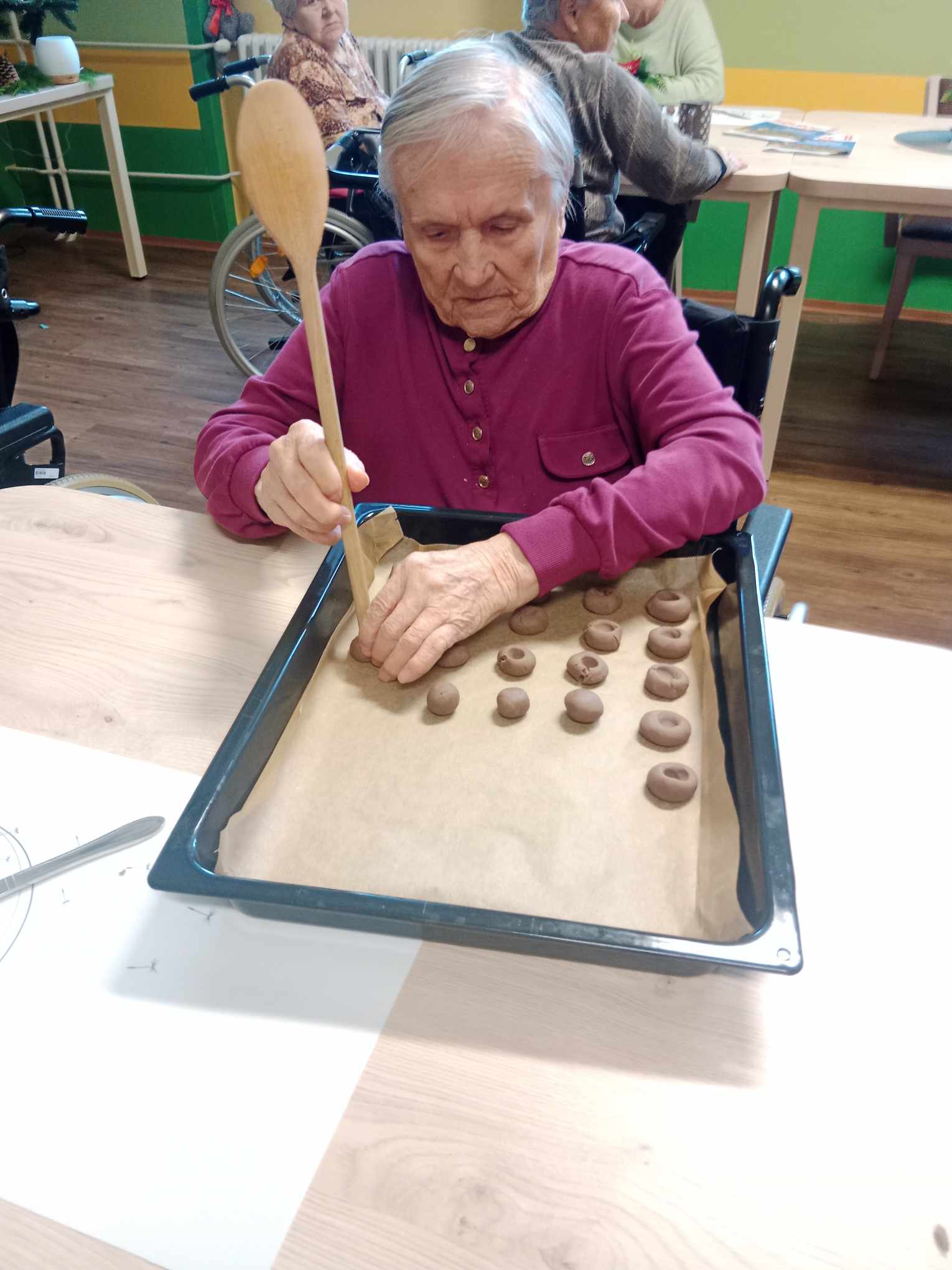 S prvním adventním dne začaly i vánoční přípravy v našem domově pro seniory. Chodbami se nesla vůně čerstvě dopečeného cukroví, zdobil se stromeček a zpívaly koledy.
