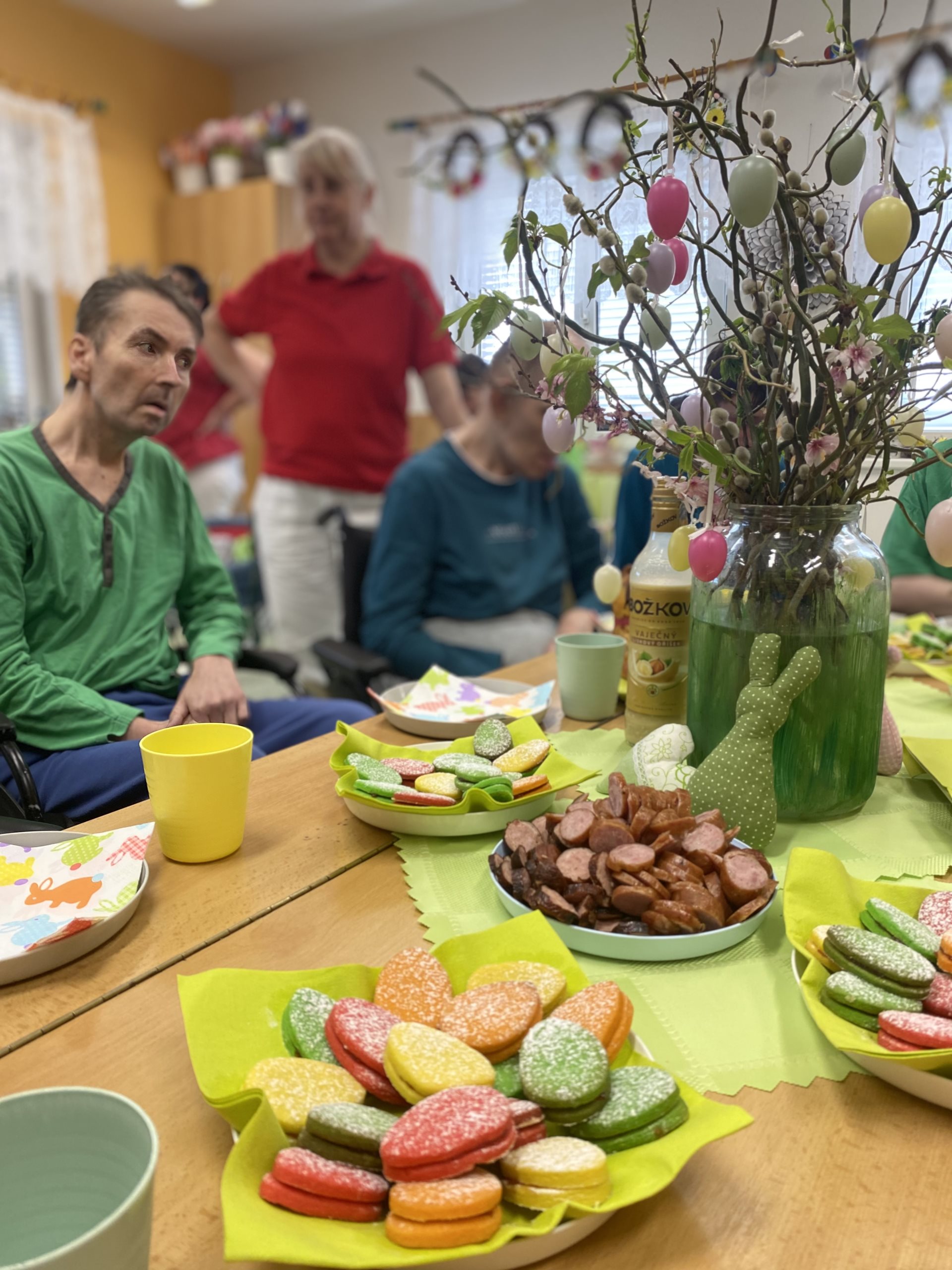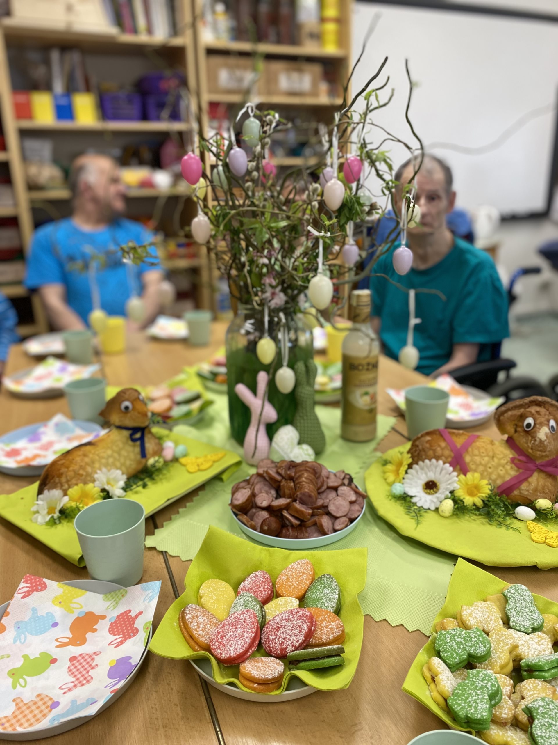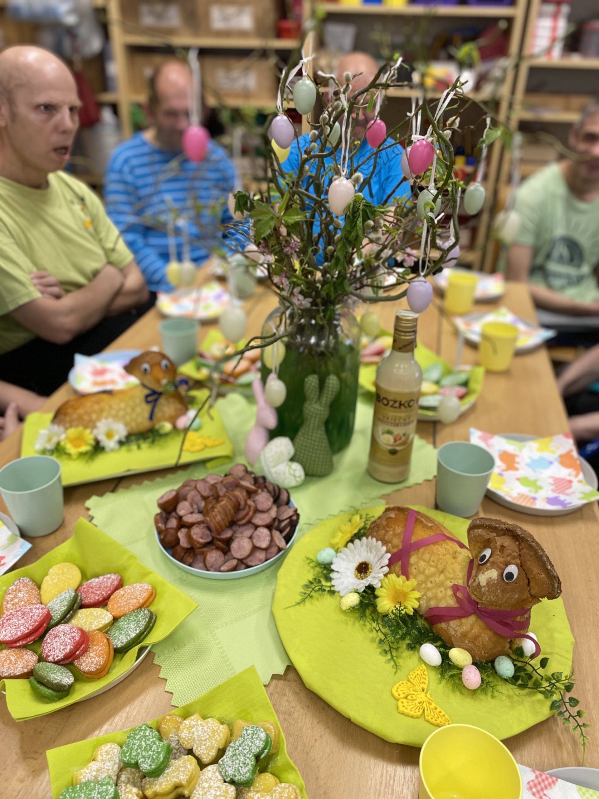 My jsme si svátky užili povídáním o symbolech Velikonoc, jako jsou například vajíčka, která představují nový život, beránek, který symbolizuje nevinnost, pomlázky a vrbové proutky, které symbolizují obnovu a životní sílu a podobně. Také jsme si povídali o tradičních jídlech. Jedním z hlavních symbolů Velikonoc jsou chutná a sytá jídla. My jsme si pochutnali na lineckých vajíčkách a na beráncích, které jsme si sami připravili. Pouštěli jsme si lidové písničky a některé jsme si i zazpívali. Upletli jsme si také několik tatarů a ozdobili je pentličkami. Byl to moc krásný den.