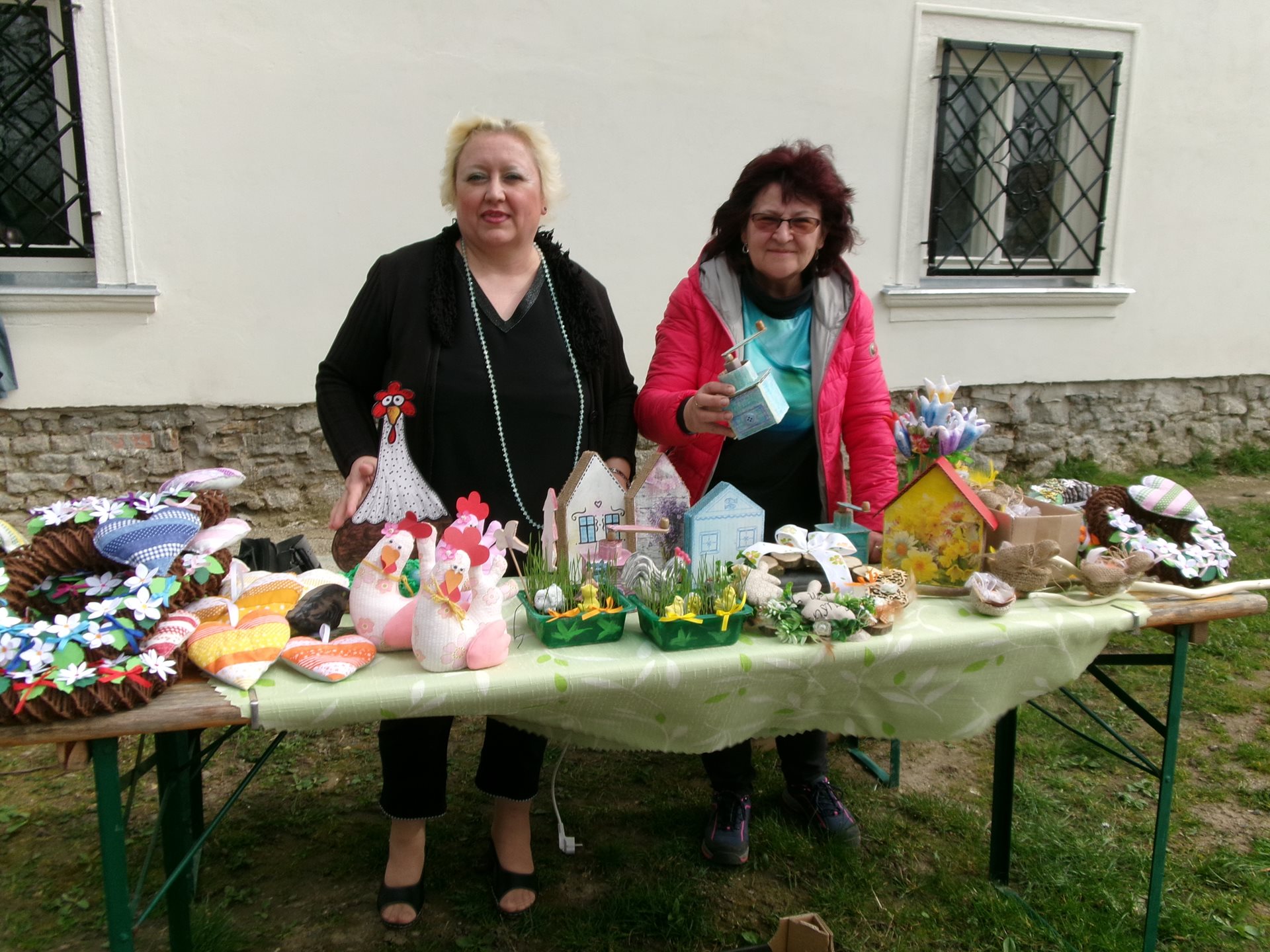 V sobotu se na zámku v Dřevohosticích konal velikonoční jarmark, kde se prodávaly mimo jiné také výrobky, které jsme nedlouho po příchodu nového roku začali připravovat. Byly to převážně šité dekorace vyplněné polyesterovou výplní, papírové pletené věnečky nebo háčkovaná hnízda. Výrobky se příchozím velmi líbily a prodalo se velké množství, z čehož jsme měli zaslouženou radost. Ještě neopadlo velikonoční zdobení a dekorování a už se u nás kují plány na výrobky vánoční.