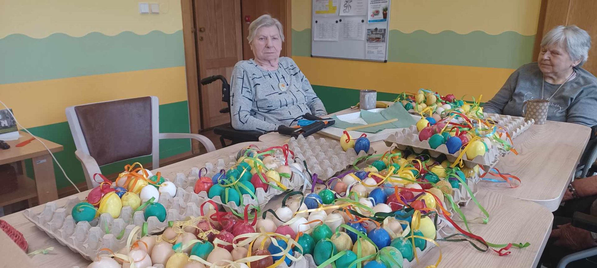 Příprava velikonočních dekorací do společných prostor i na chodby zařízení.