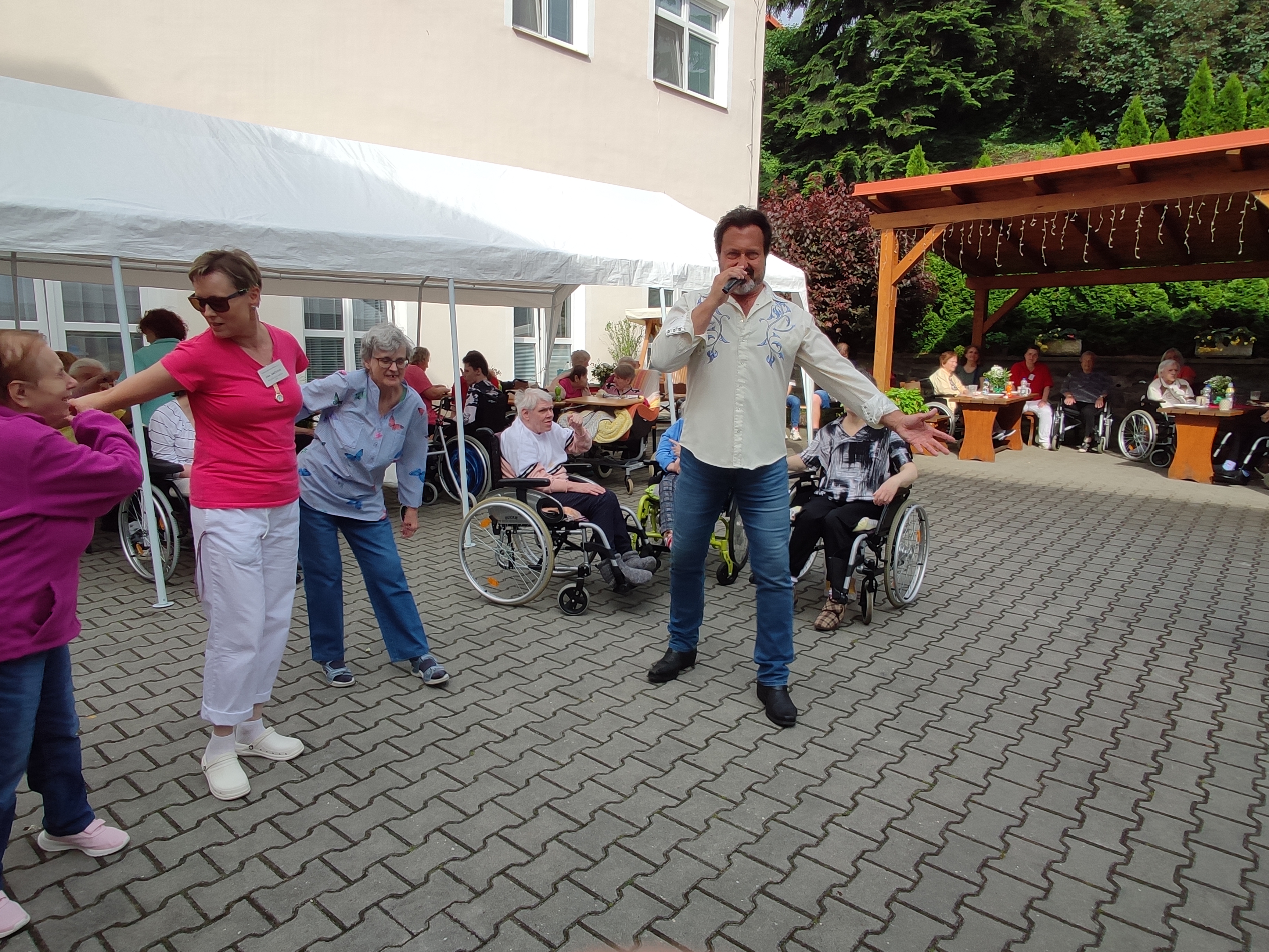 Dne 10. 6.2023 zavítali místní obyvatelé Kokor, příbuzní klientů a zaměstnanců na očekávanou každoroční akci „Vítání léta“, která je provázena bohatým kulturním programem. I letos tomu nebylo jinak. Na nádvoří Centra Dominika Kokory se v odpoledních hodinách rozezněl hlas Jana Mlčocha s hity Karla Gotta a Jaromíra Adamce majitele hlasu největších šlágrů Waldemara Matušky, které nenechaly nejedny nohy v klidu. Originálním vystoupením přispěly také Mažoretky Gina z Brodku u Přerova a skvělou atmosféru dotvářelo vystoupení dětí z Mateřské školy Kokory. Počasí i letos přálo těmto venkovním radovánkám. Komu vyhládlo, nebo dostal žízeň, mohl si zakoupit a ochutnat dobroty z naší kuchyně nebo z udírny Hospody U Souseda. Bylo možné si zakoupit krásné výrobky našich klientů. Také nás potěšil svou návštěvou náměstek hejtmana pro sociální oblast Olomouckého kraje pan Mgr. Ivo Slavotínek.
