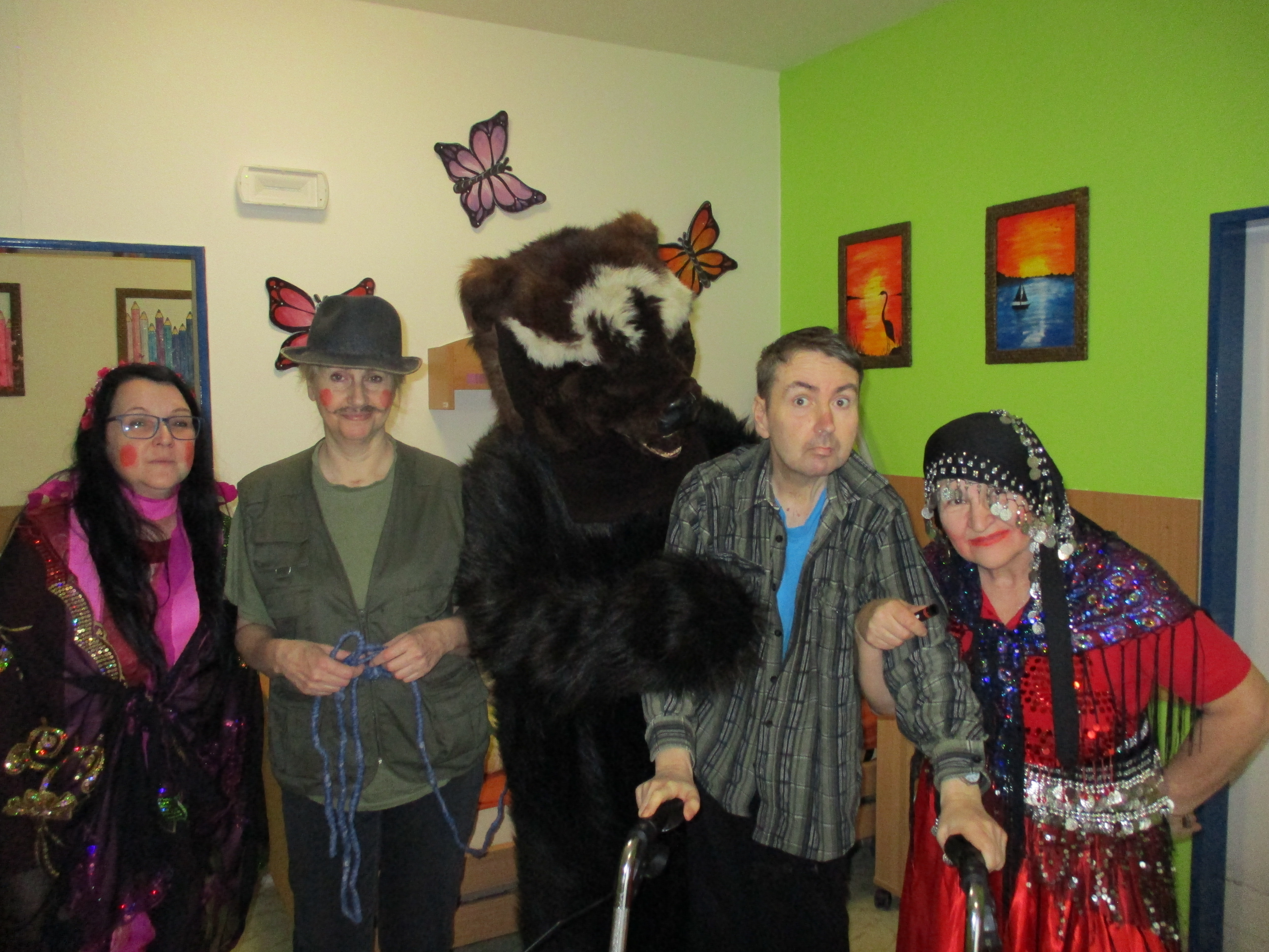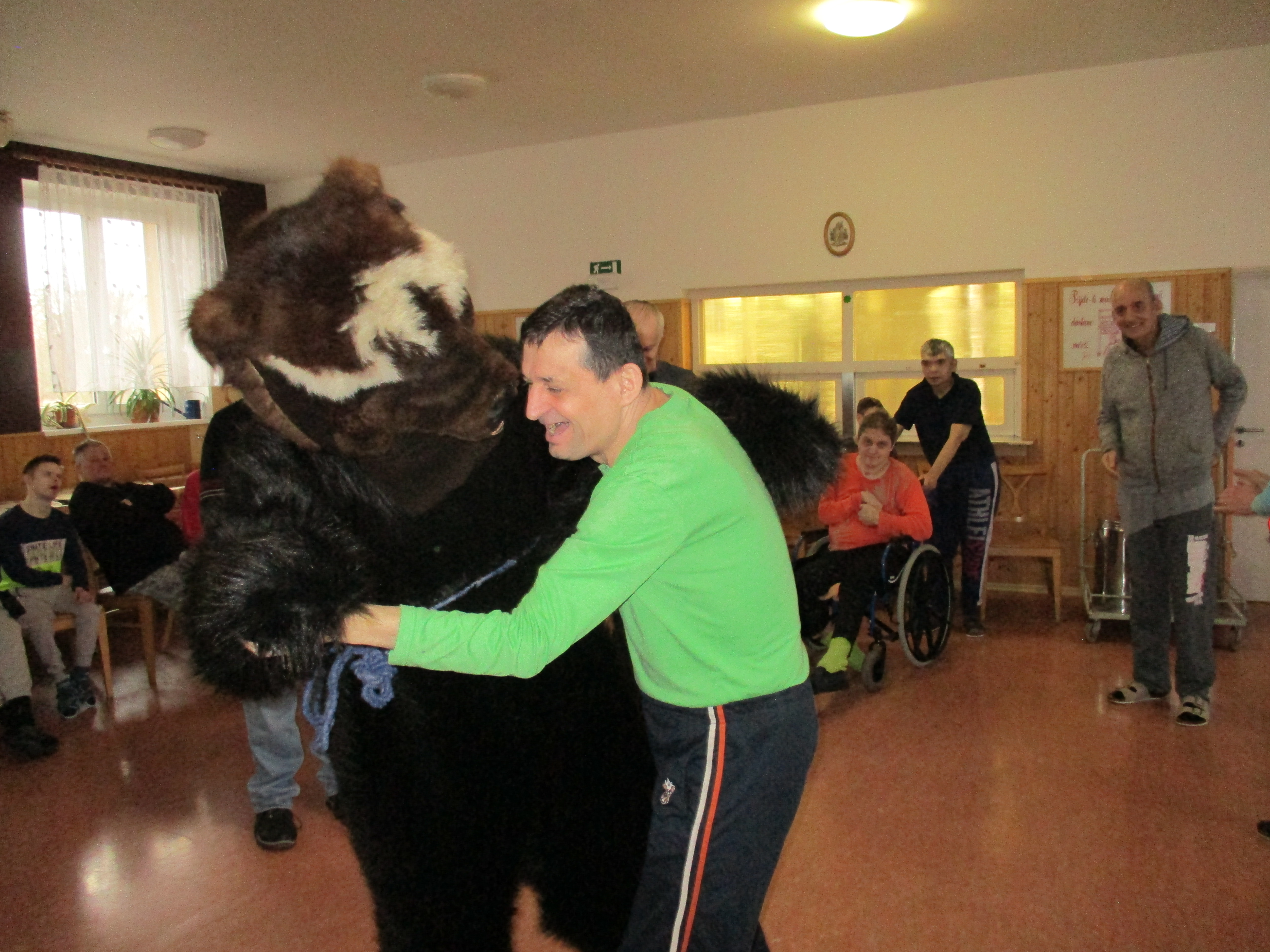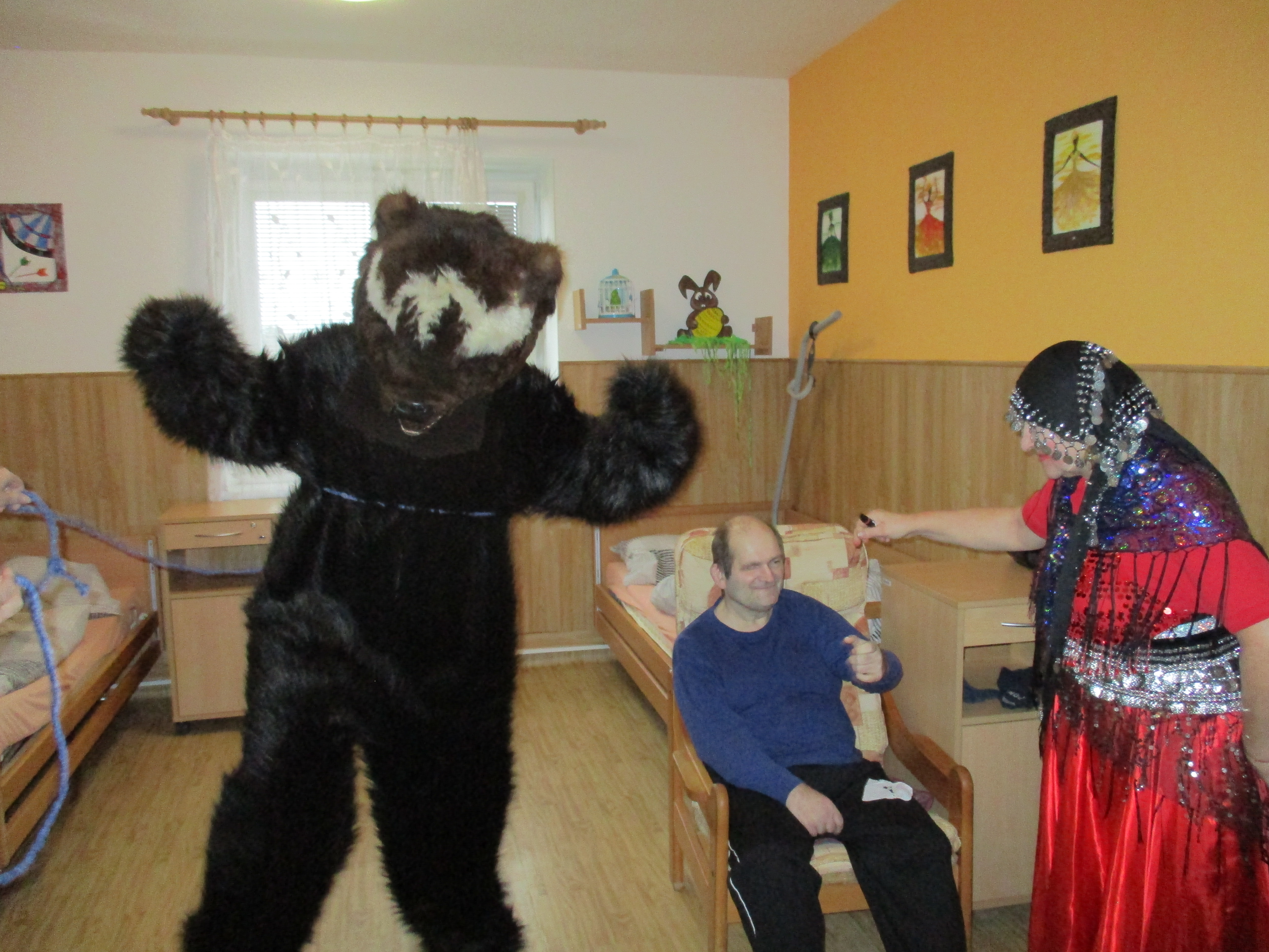 Připomínáme si tradice... O víkendu procházel medvěd s průvodem ulicemi Dřevohostic. Měli jsme také medvěda s doprovodem v maskách v našem domově. Uspořádali jsme si i diskotéku.