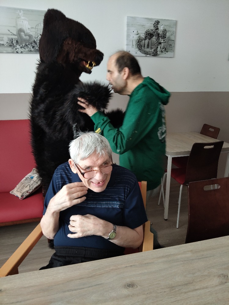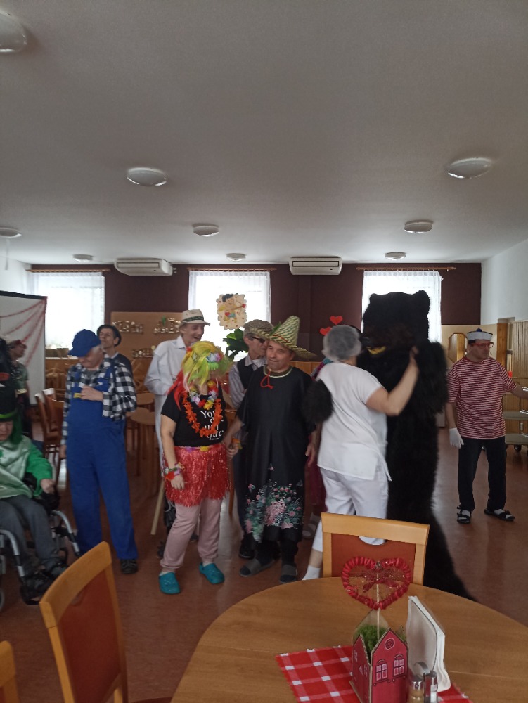 O víkendu se všude kolem nás, ať už v Dřevohosticích nebo v okolních obcích, vodil medvěd. My jsme se rozhodli, že si uspořádáme vodění vlastního medvěda přímo v našem areálu. Převlékli jsme se do masek, vytáhli si hudební nástroje a udělali jsme si příjemný den plný zábavy. Každý si vybral kostým podle toho, co má rád. A bylo opravdu z čeho vybírat.