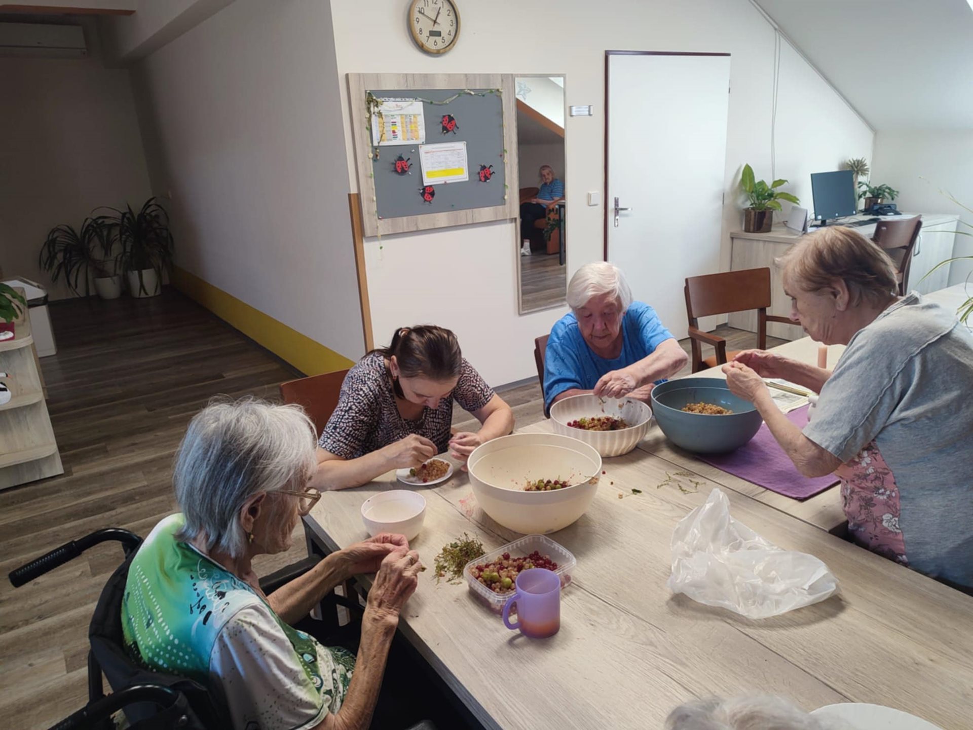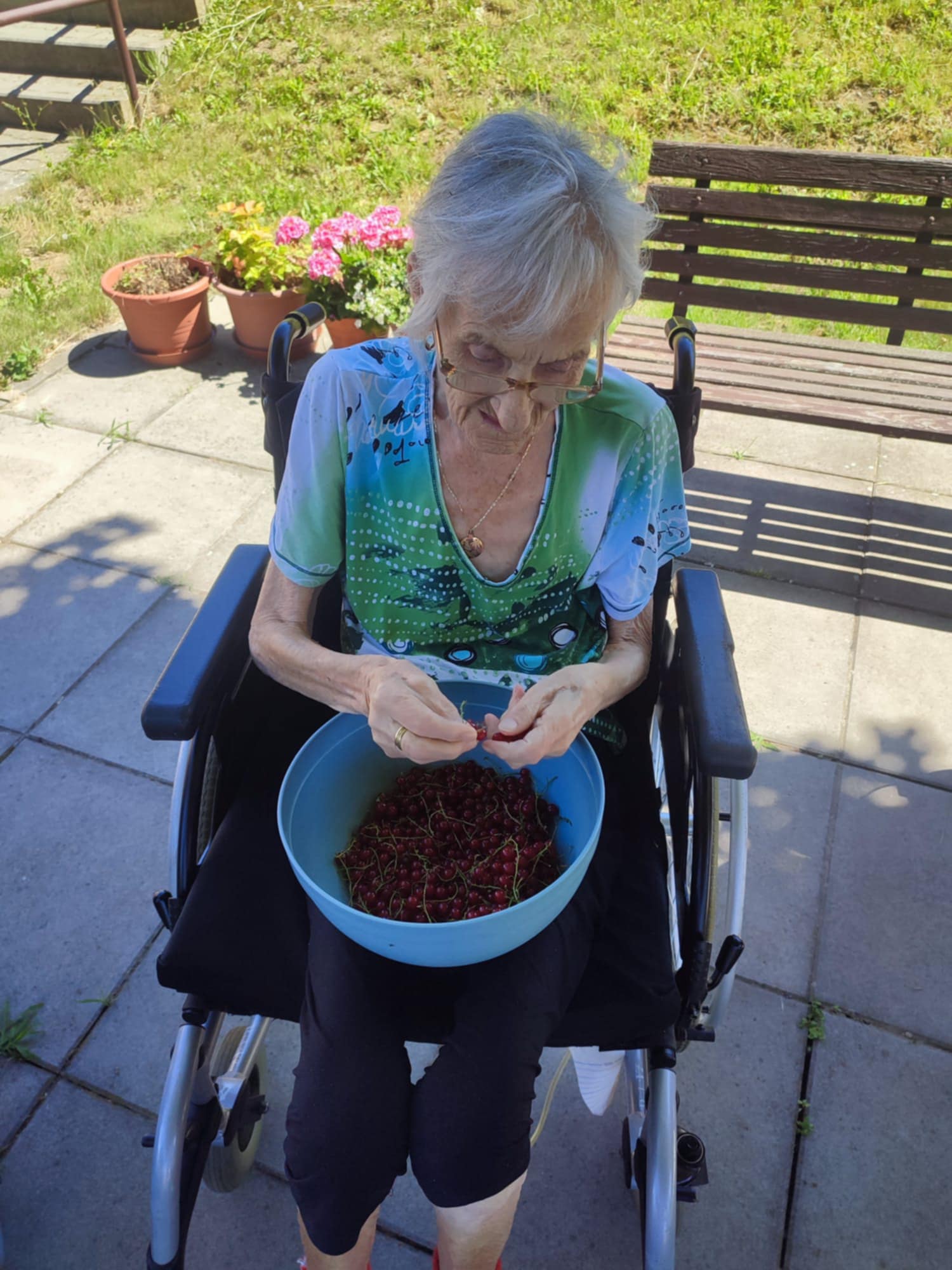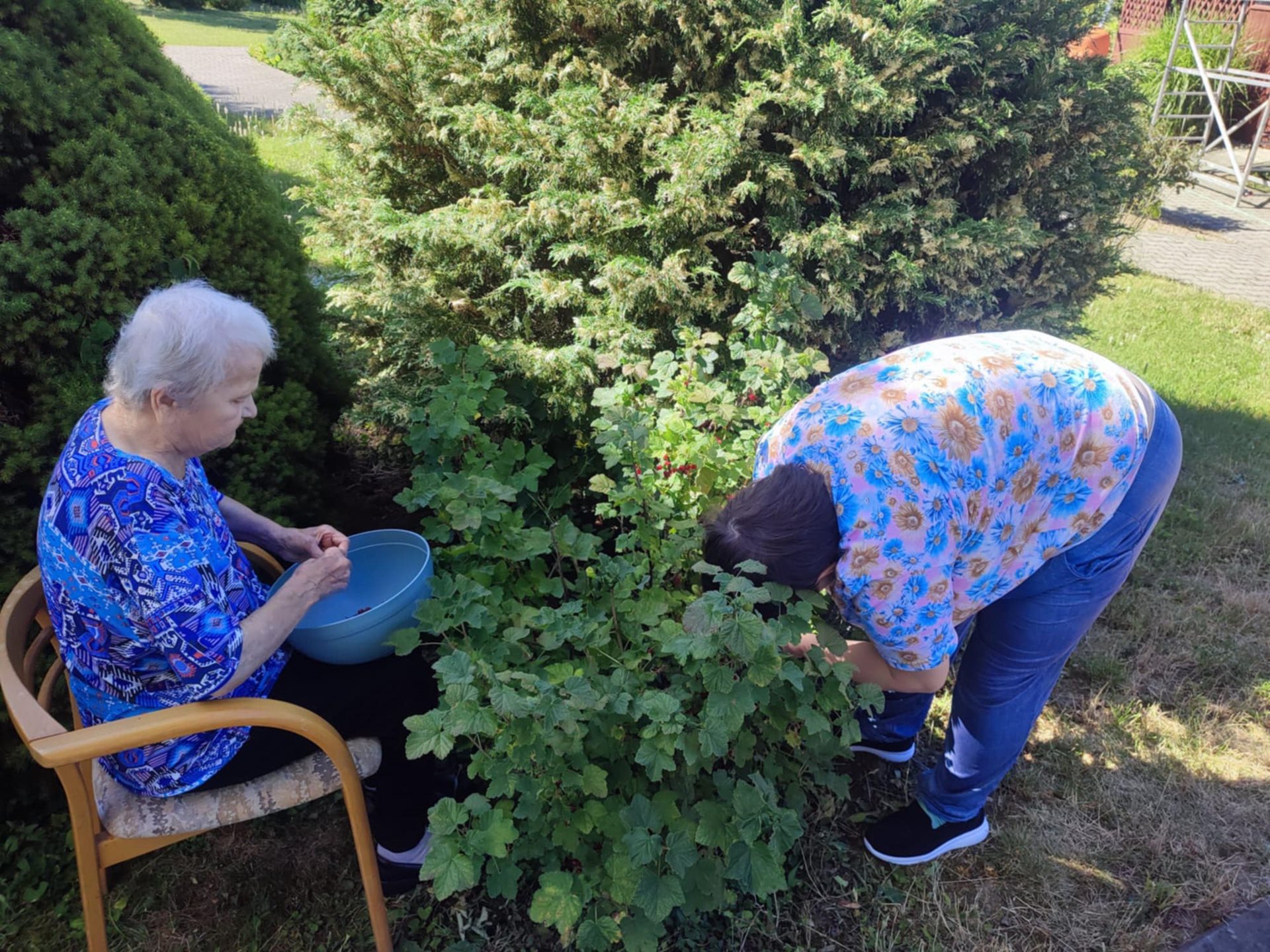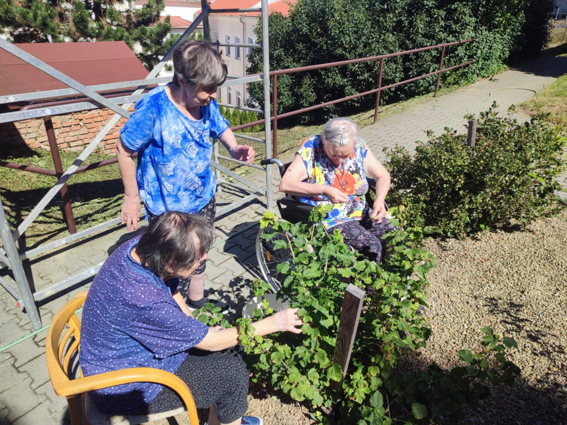 Společné vaření a pečení je oblíbenou aktivitou, která nejen podporuje jemnou motoriku a samostatnost, ale také přináší pocit sounáležitosti a radosti ze sdíleného výsledku. Sklízení rybízu na zahradě bylo krásnou aktivitou na čerstvém vzduchu, která potěšila všechny smysly. Klientky trhaly rybíz přímo z keřů, třídily kuličky a připravovaly je do mísy. Každý plod byl pečlivě vybrán a očištěn, což samo o sobě bylo příjemnou relaxační činností.