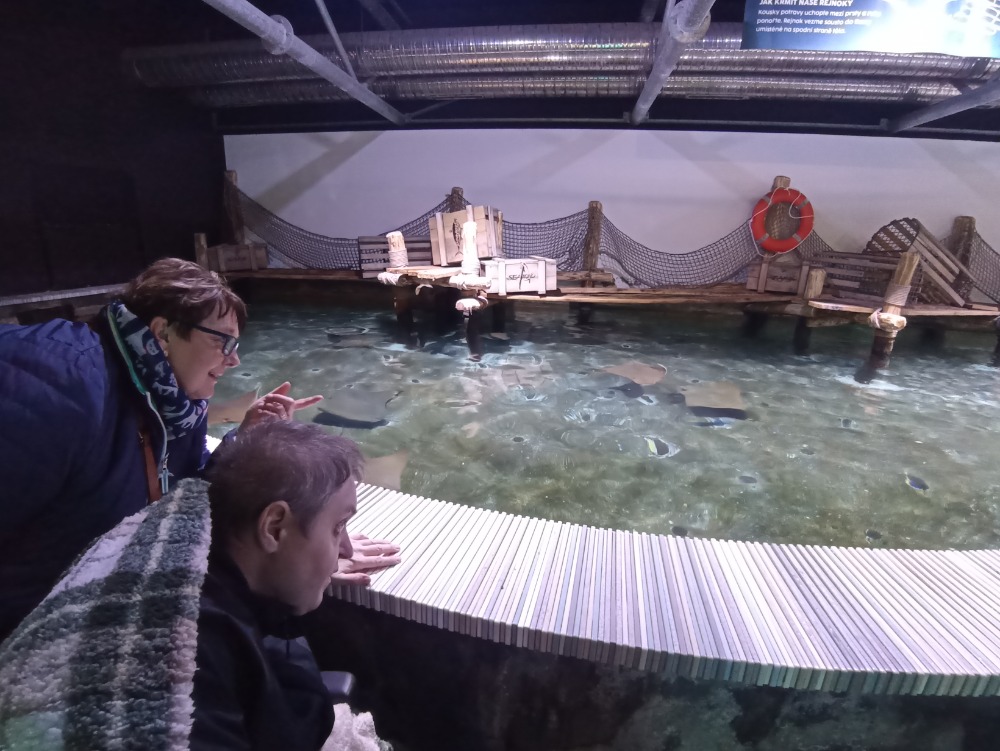 Na dnešní den byl domluven výlet do ZOO Lešná Zlín. Nebyl to jen tak obyčejný výlet, tři účastníci se zvládli pohybovat jen na invalidním vozíku, a to za pomoci doprovázející osoby. Přidali se k nám ještě další dva kamarádi, kteří zvládnou pohyb po Zoo sami. Byla tak využita plně kapacita služebního auta a my mohli všichni vyrazit. Byli jsme natěšeni poznávat zvířata, která známe hlavně z pořadů v TV nebo z obrázků. Počasí nám přálo, bylo sice pod mrakem, ale nepršelo. Zvířatům se takové počasí také libilo, takže se před námi neschovávali. Bylo úžasné vidět plující rejnoky, které jsme si mohli pohladit. Náš obdiv si zasloužili i sloni, opice, žirafy, ptáci, surikaty, nosorožec a spousta dalších zvířat. Po tříhodinovém putování nám byl odměnou výborný oběd a potom už nás čekala zpáteční cesta domů. Výlet splnil naše očekávání a moc rádi bychom příště navštívili jinou ZOO, třeba v Olomouci.