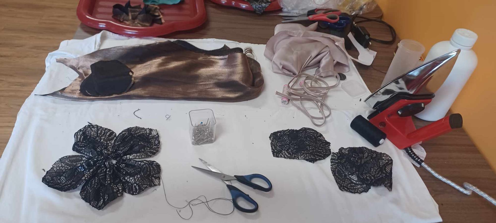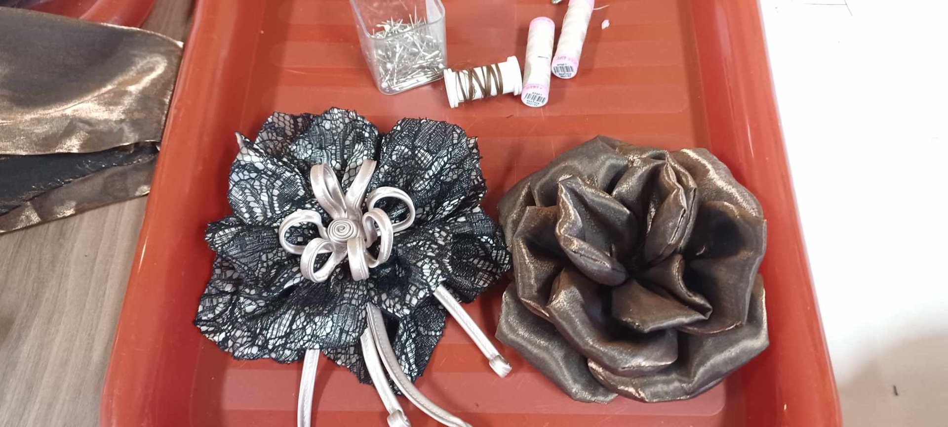 Seniorky si velmi dobře pamatují dobu návštěv kulturních domů a divadel, kde nedílnou součástí jejich toalety nebo společenského kostýmku byly i doplňky z materiálu šatů. Zaměřili jsme se proto na látkový květ inspirovaný růží a druhý květ našel inspiraci v našich vypěstovaných hortenziích. Seniorky si zavzpomínaly na plesovou sezonu i oslavy MDŽ. Posléze si květy s dopomocí na sebe připnuly a využily velkého zrcadla v jídelně, aby se prohlédly a zhodnotily výsledek látkového modelování. Zavzpomínali jsme také na různé krejčovské terminologie, materiály a "šicí fígly", které švadlenky dříve používaly, protože téměř v každé domácnosti se tehdy šilo.