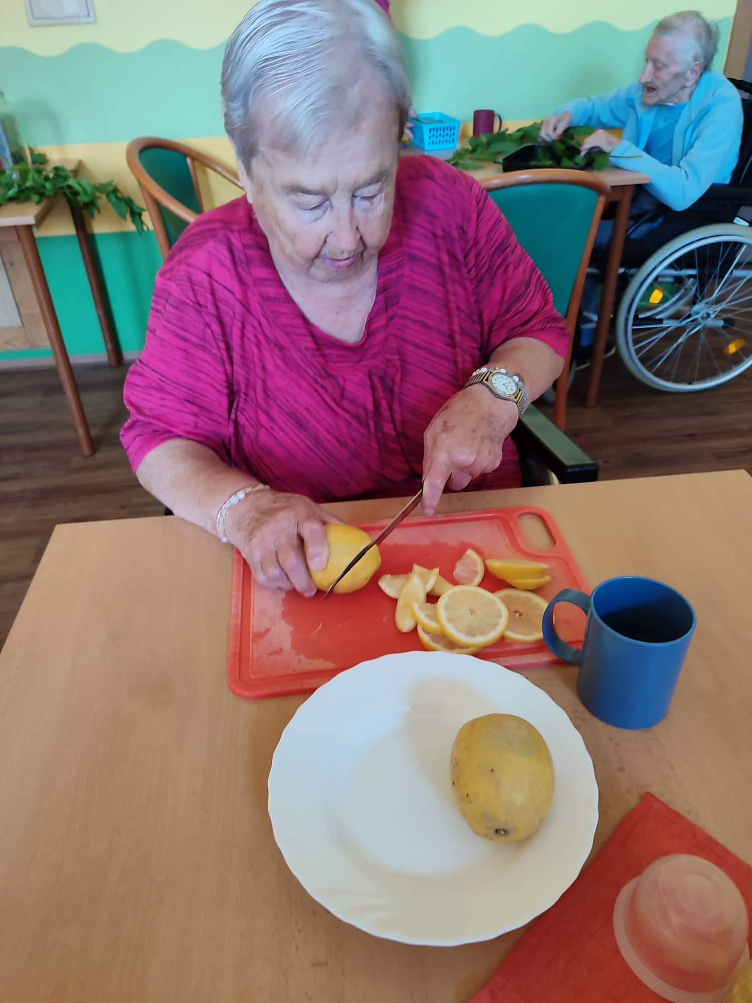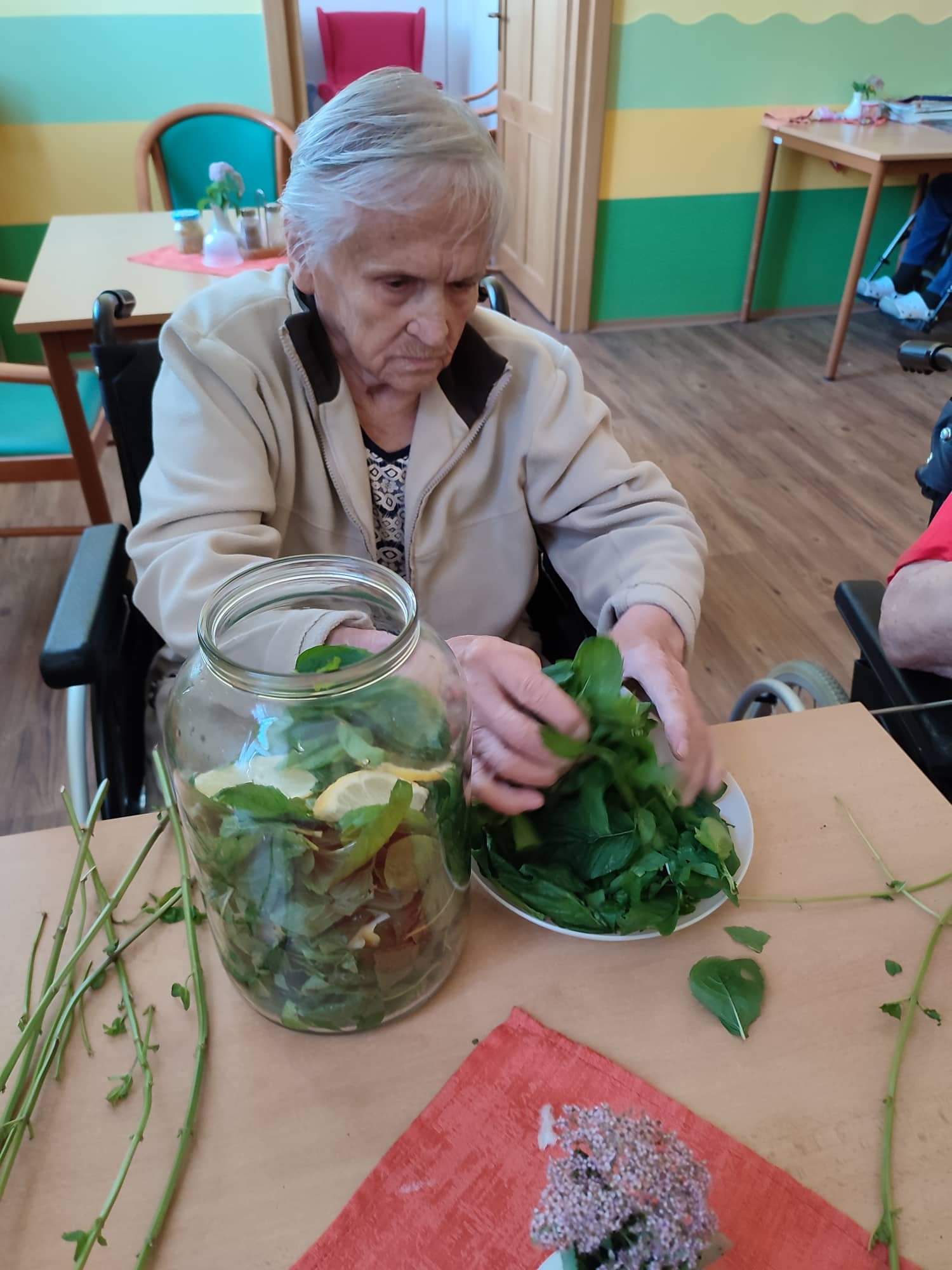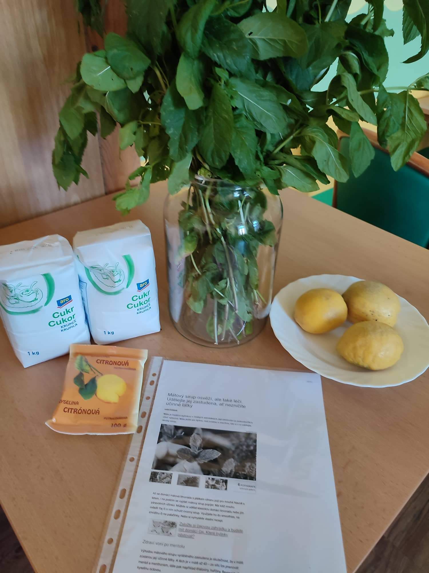 Příprava mátového sirupu v rámci smyslové aktivizace.