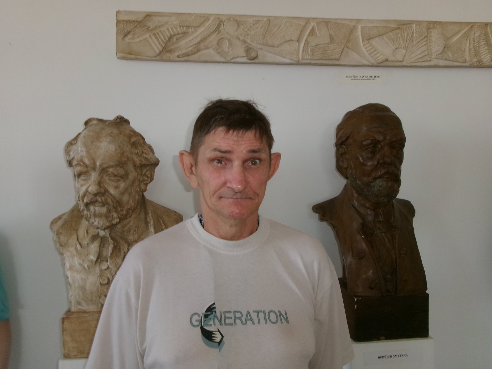 Vydali jsme se na náš dřevohostický renesanční vodní zámek z 16. století, podívat se na expozici akademického sochaře Jiřího Lendra. Tento sochař se narodil v Bychyni, kde vystudoval Střední odbornou školu keramickou. Viděli jsme mnoho postav i několik bist v různém technologickém provedení.
