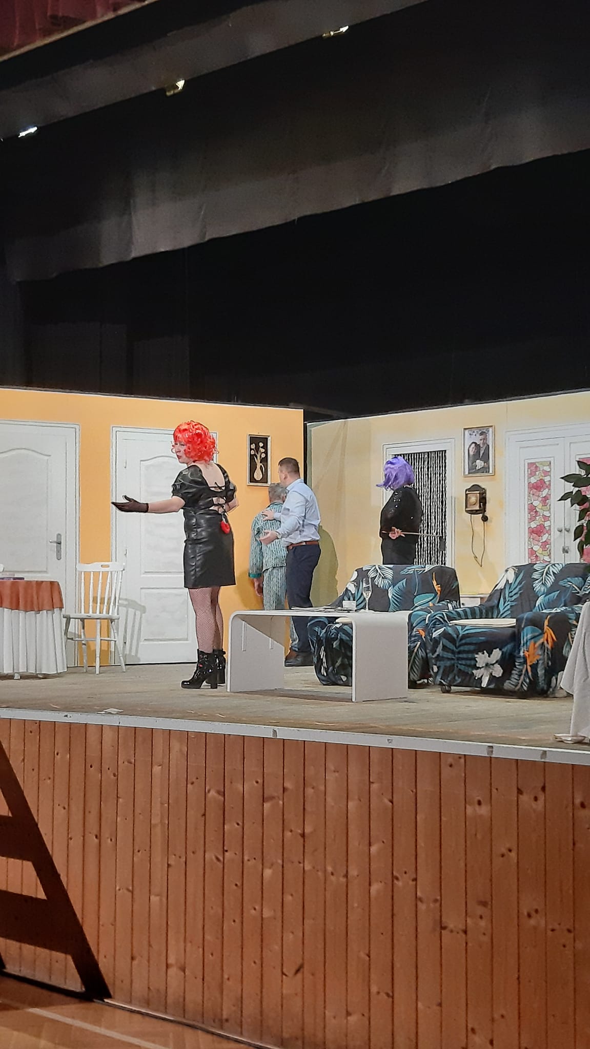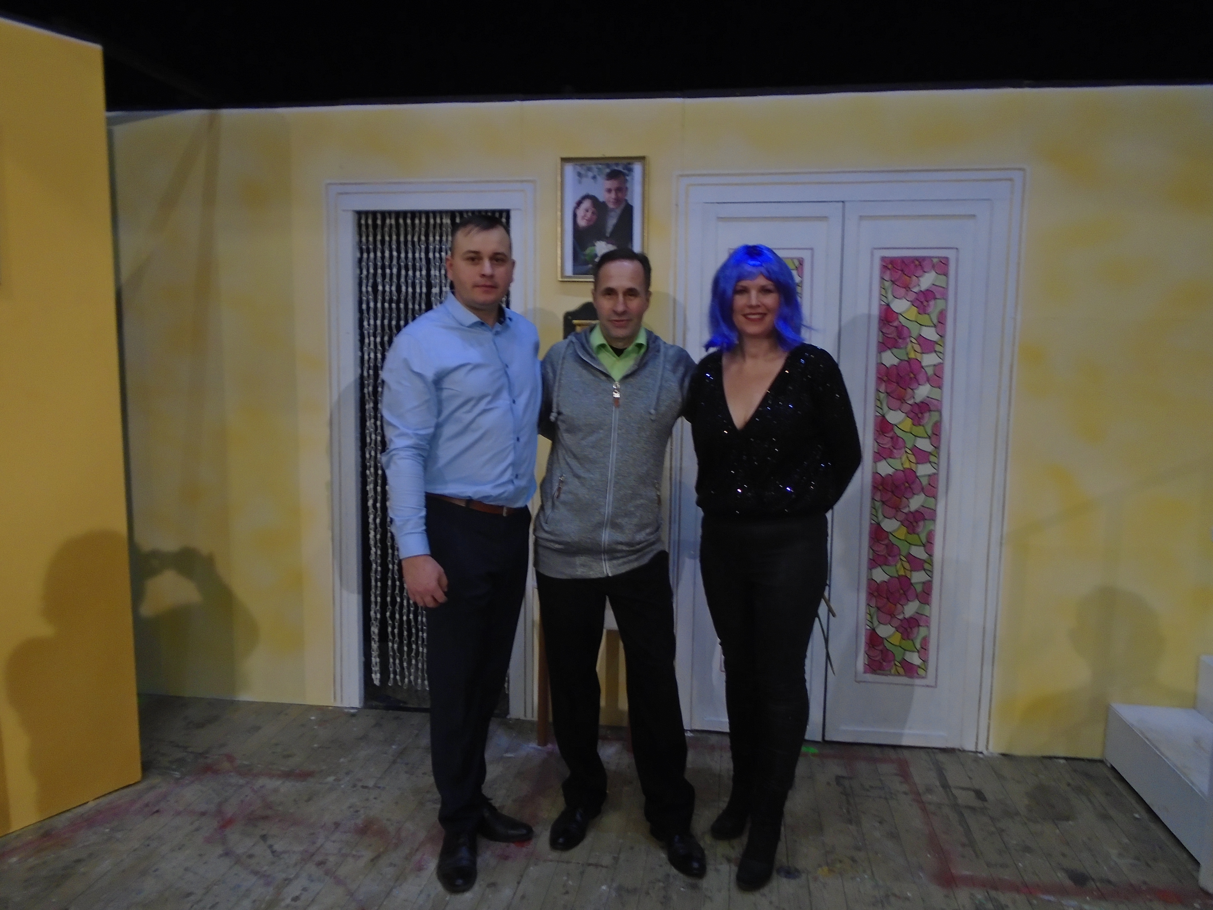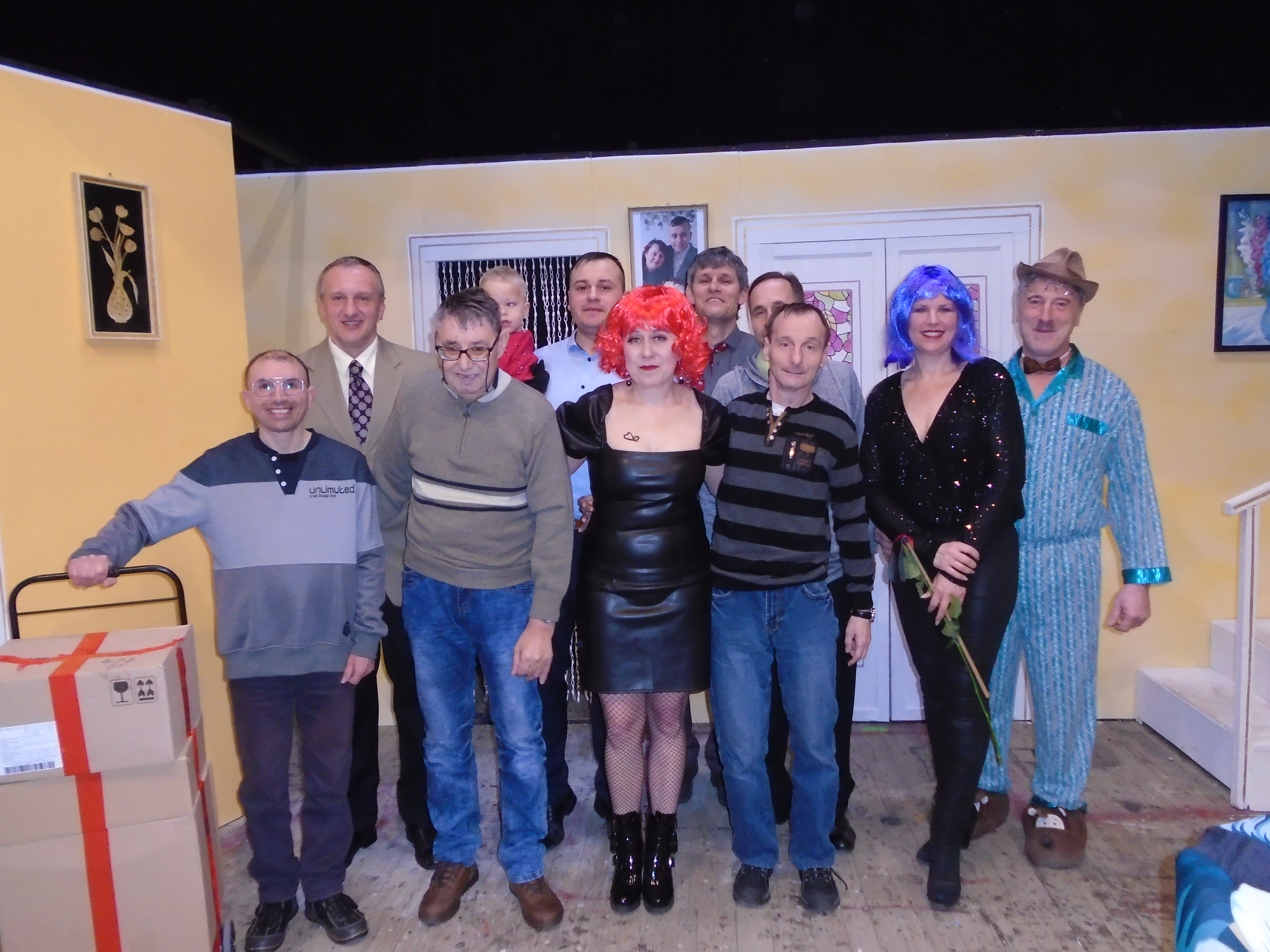 Zpestřili jsme si nedělní odpoledne návštěvou dřevohostické sokolovny, kde jsme shlédli představení místních divadelníků Všichni v tom jedou. Divadelní hra nás pobavila a po jejím skončení jsme se s místními divadelníky i jejich a našimi známými vyfotili.