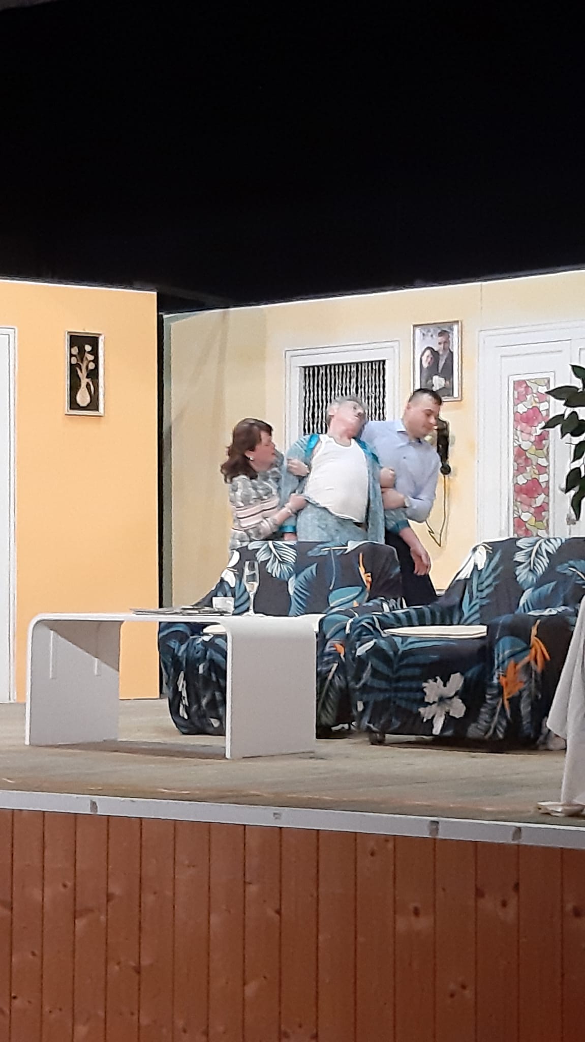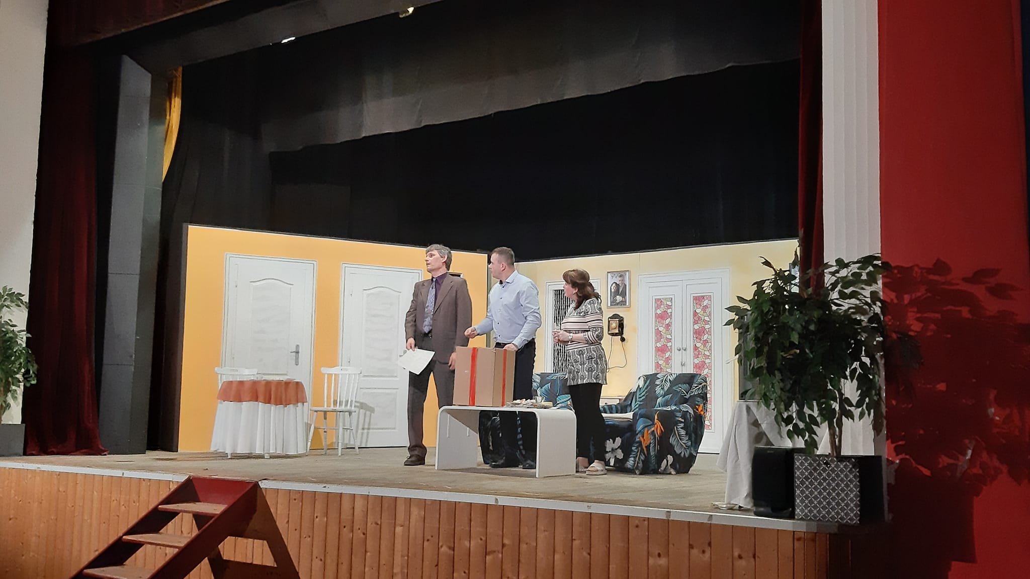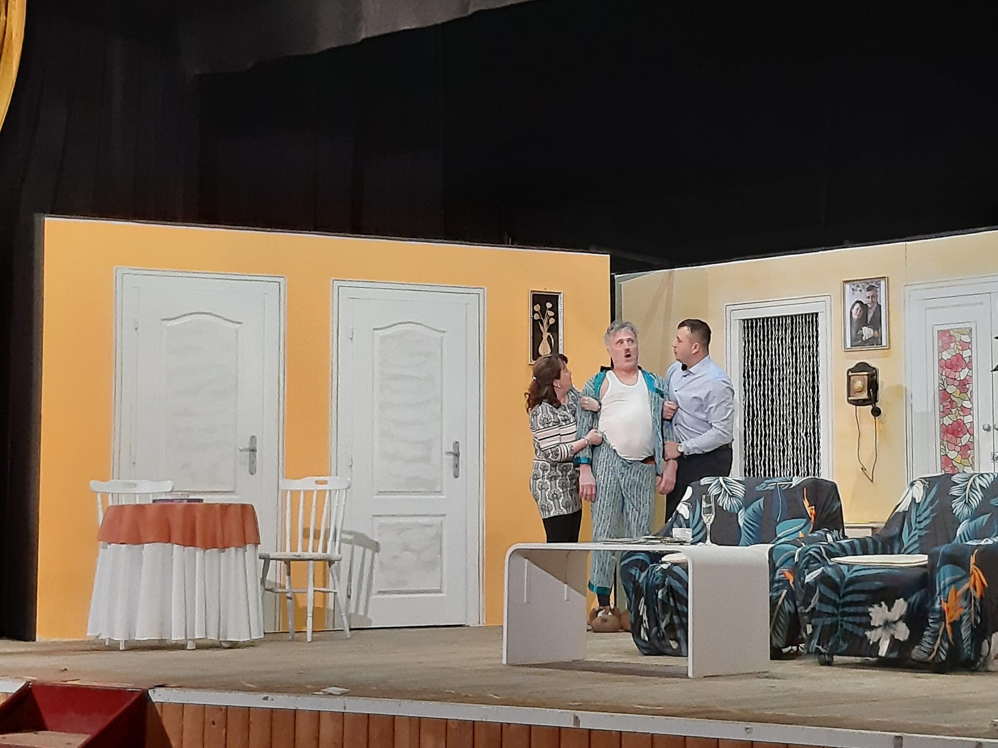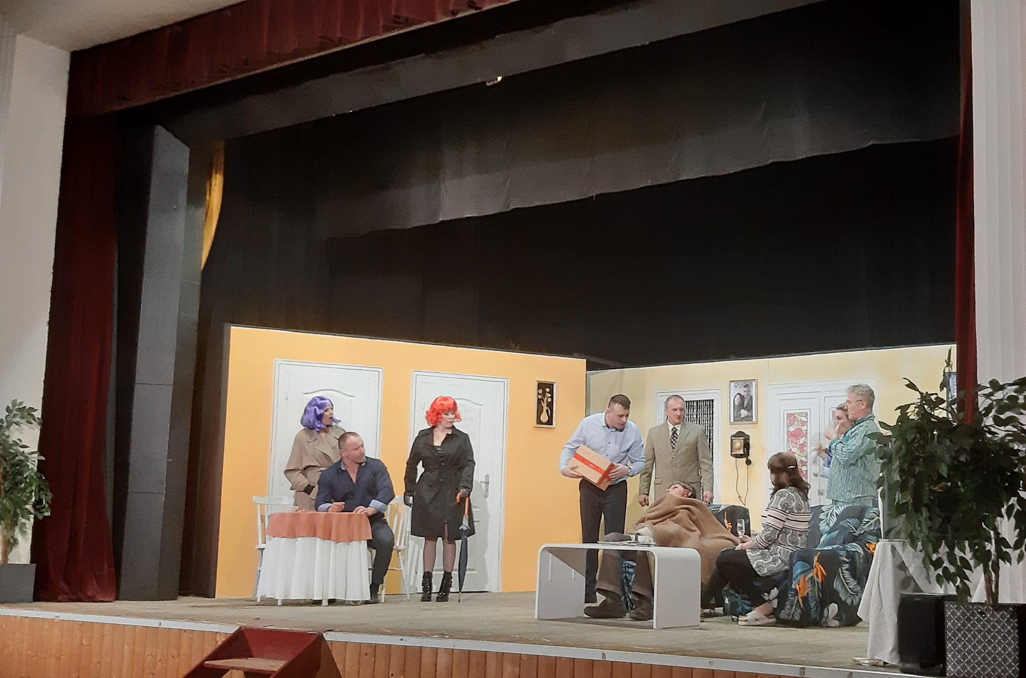 Zpestřili jsme si nedělní odpoledne návštěvou dřevohostické sokolovny, kde jsme shlédli představení místních divadelníků Všichni v tom jedou. Divadelní hra nás pobavila a po jejím skončení jsme se s místními divadelníky i jejich a našimi známými vyfotili.