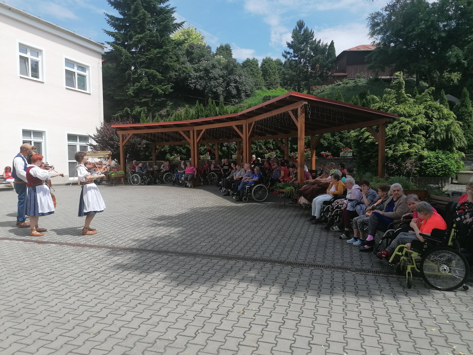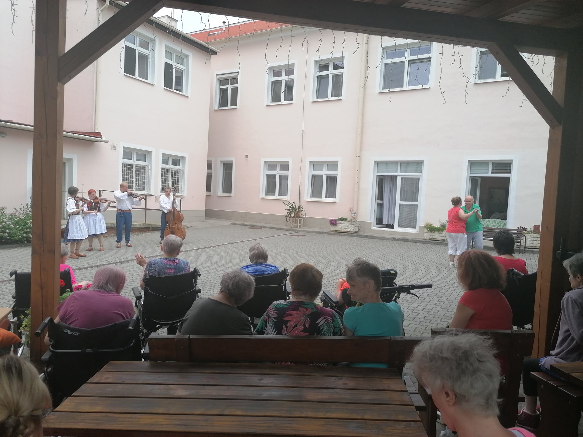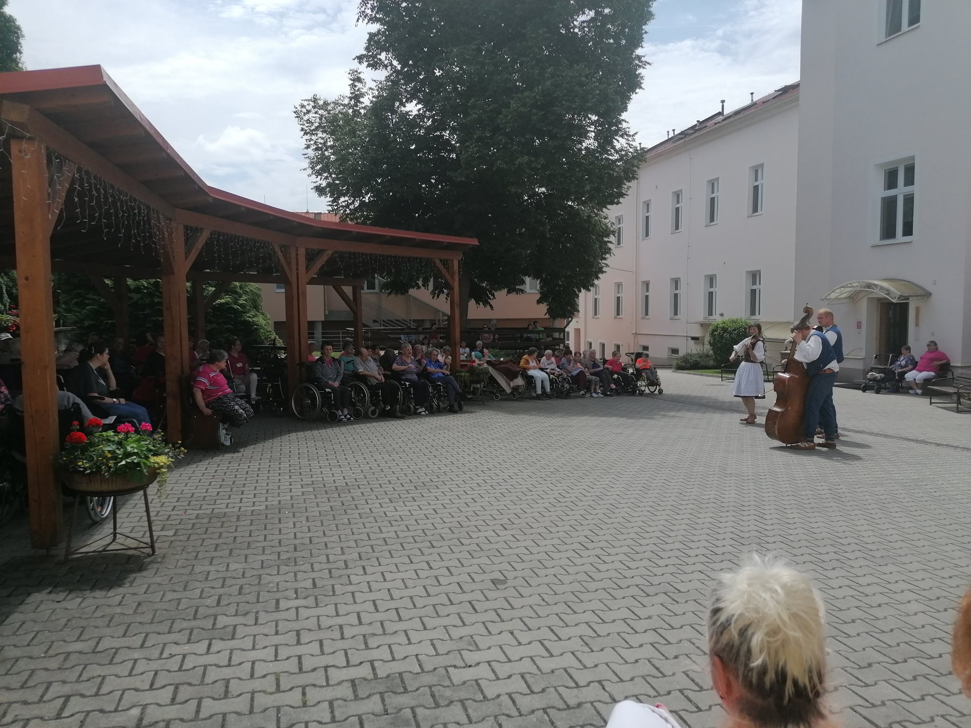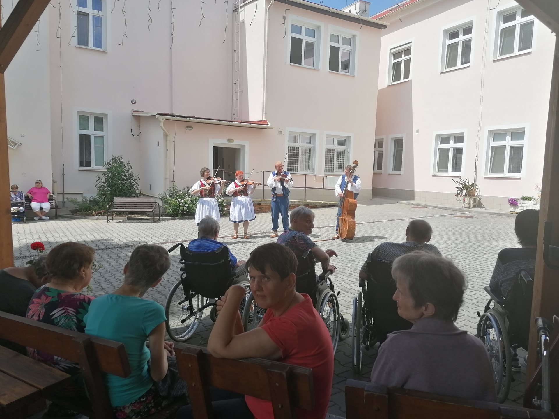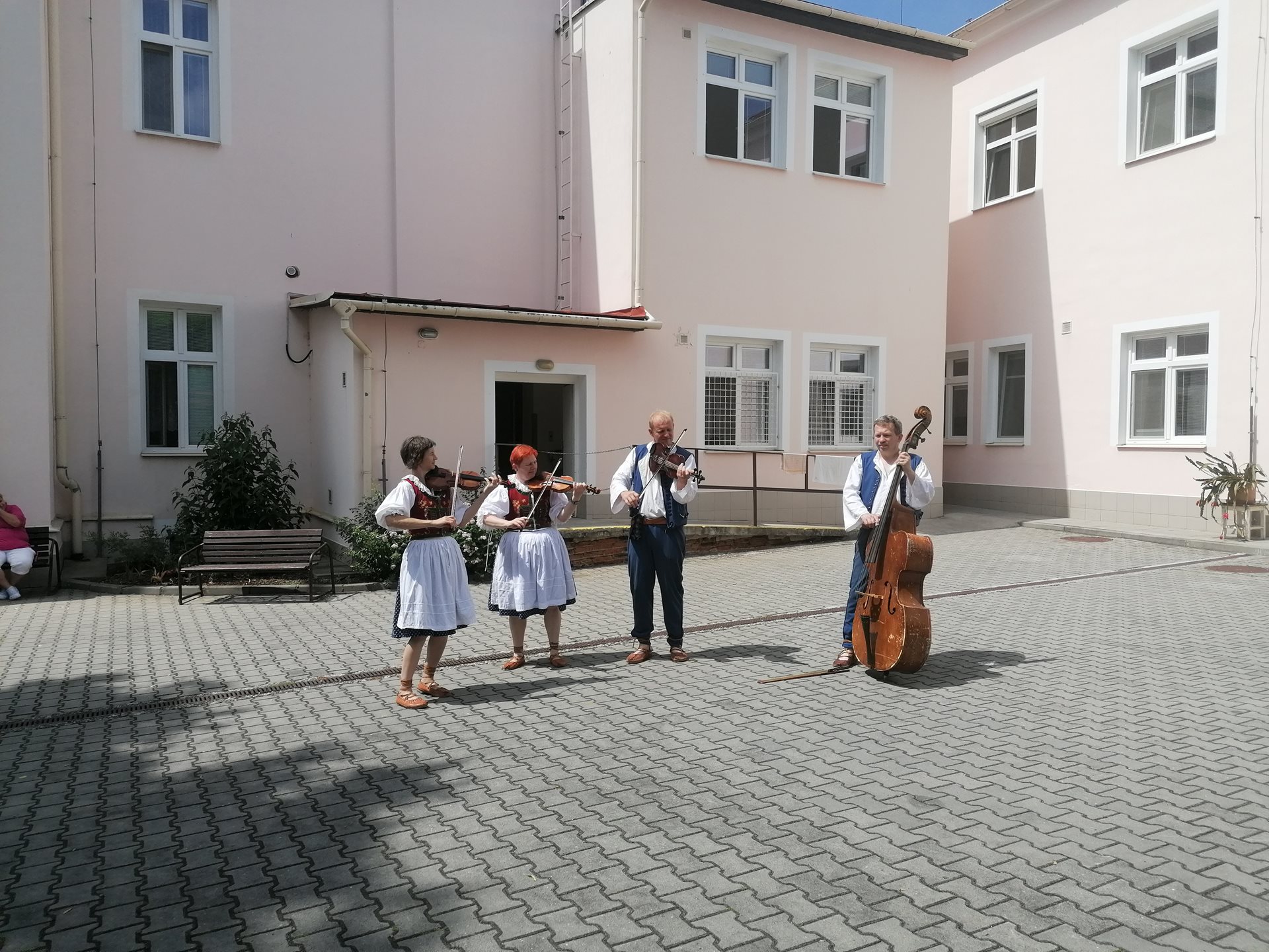 Dne 9. 6. 2022 se stejně jako minulý rok v odpoledních hodinách rozezněl na dvoře Centra Dominika Kokory libý zvuk Hudecké muziky Franty Kopeckého, která vykouzlila úsměv na tváři našich uživatelů. Čtyřčlenná lidová kapela v obsazení dvoje housle, viola/heligonka, kontrabas, se širokým folklorním záběrem a s dlouholetou historií, která se začala psát už počátkem 90. let minulého století, poskytla našim klientům nevšední zážitek v podobě známých písní, které nenechali nejedno srdce klidné.