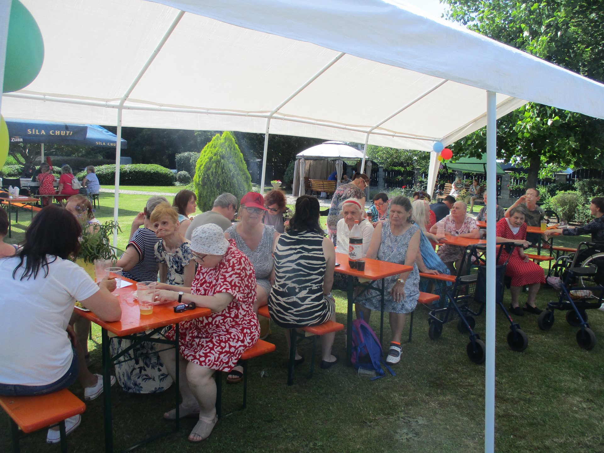 Na naši Zahradní slavnost jsme se těšili tak moc, že někteří z nás nemohli dospat a strojili se už od časného rána. Nazdobili jsme si areál domova, připravili pohoštění, kapela Balin Band zapojila všechny kabely, reprobedny, hudební nástroje i mikrofony a naladili své hlasy. Otevřeli jsme všechny brány i dveře pro všechny příchozí a naše společenské odpoledne mohlo začít.