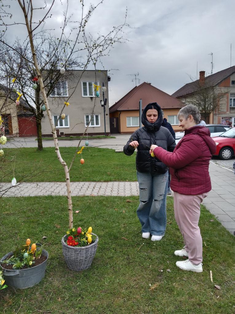 Dnes jsme si užili krásné předvelikonoční odpoledne na náměstí v Dřevohosticích. Společně jsme zde přinesli vajíčka, která jsme sami nazdobili, a zavěsili je na Velikonoční strom k ostatním kraslicím přineseným lidmi, kteří se také zapojili do výzdoby. Těší nás, že jsme tak mohli přiložit ruku k dílu a přispět k dekoraci, kterou si mohou užít všichni kolemjdoucí.