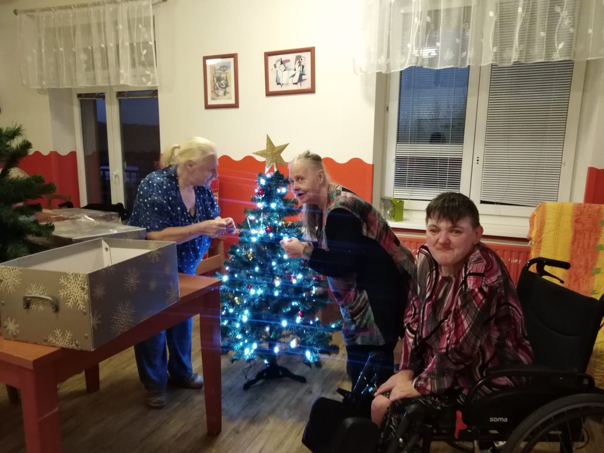 Náš společný vánoční stromek na zahradě domova jsme již rozsvítili spolu s Mikulášem a máme i vánoční výzdobu ve svých pokojích. Teď jsme si ještě nazdobili stromečky ve společných prostorách domova, protože.tento symbol Vánoc vytváří zvláštní sváteční atmosféru. Těšíme se, jak si u stromečku společně posedíme a popovídáme.