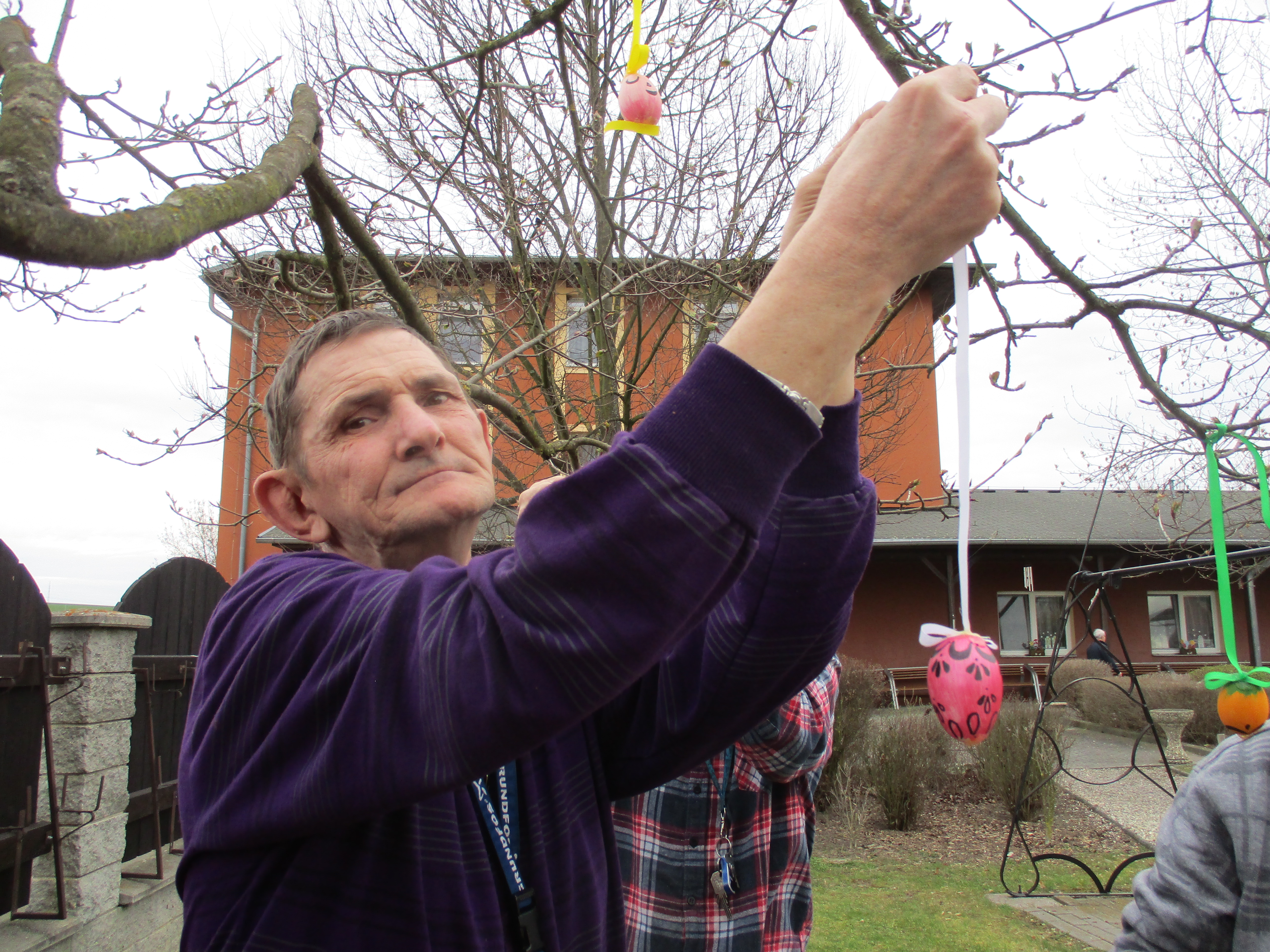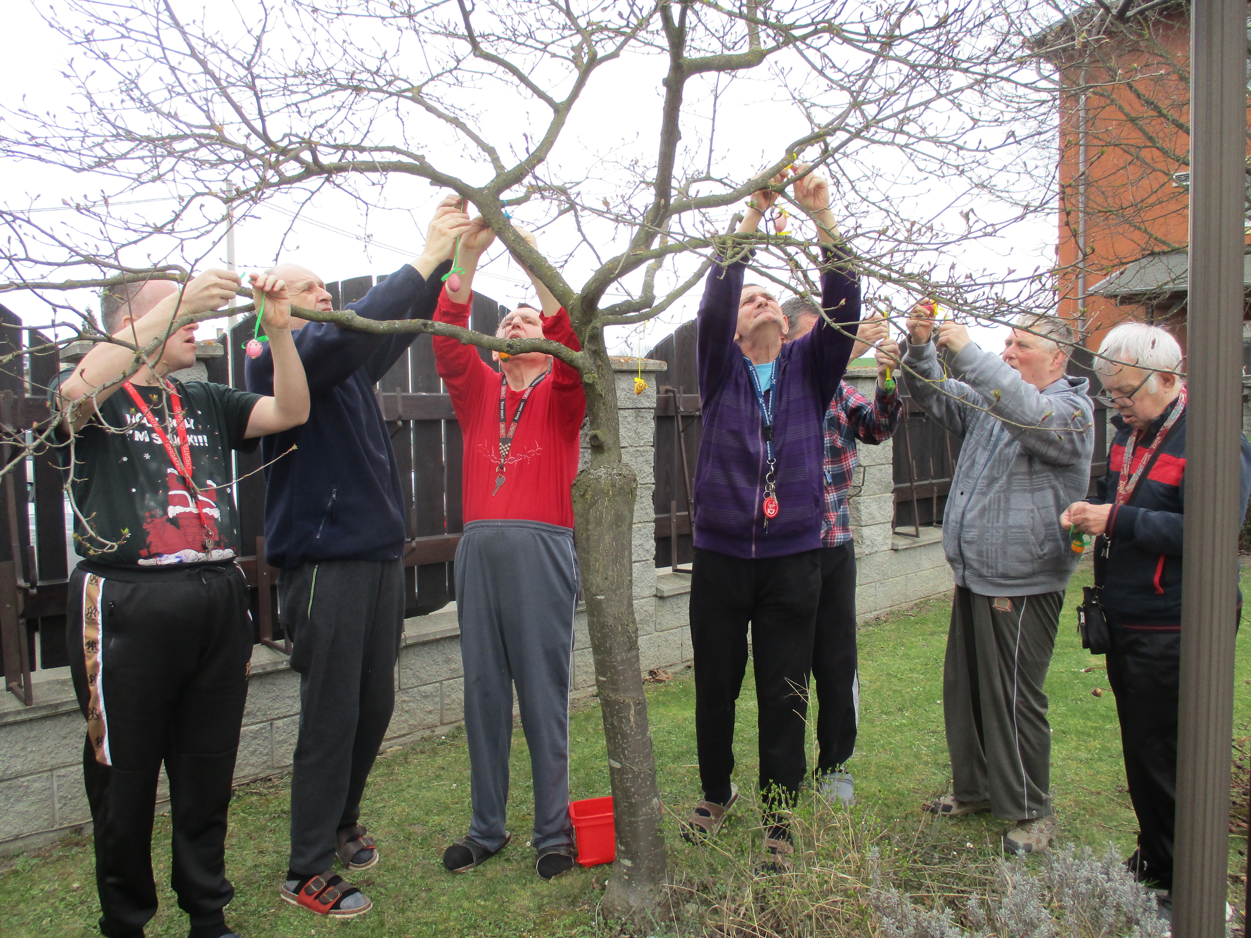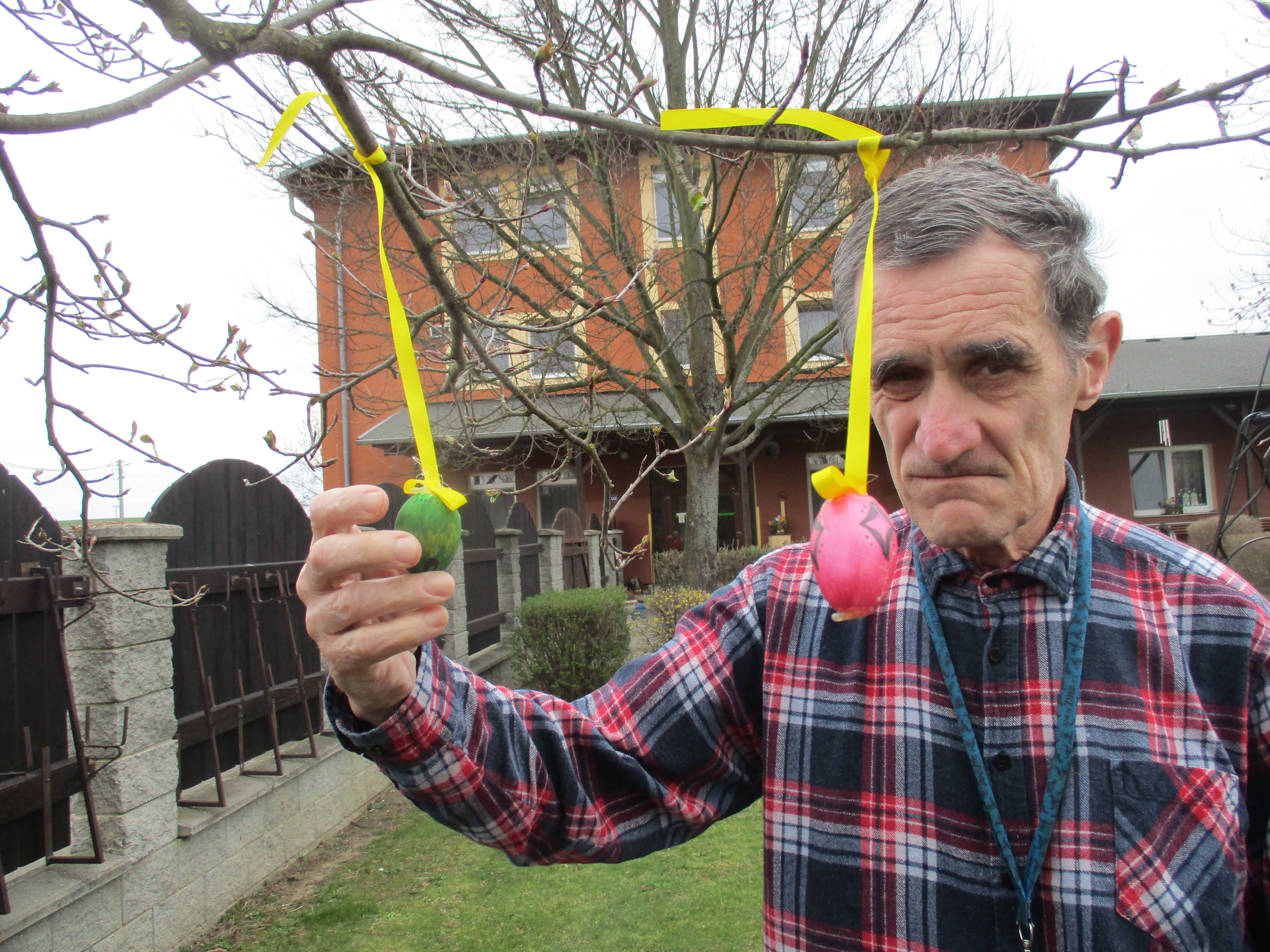 U příležitosti blížících se Velikonoc jsme si na zahradě našeho domova vyzdoibili velikonoční strom pro radost. Jako ozdoby jsme použili papírová vajíčka, která jsme sami vyrobili.
