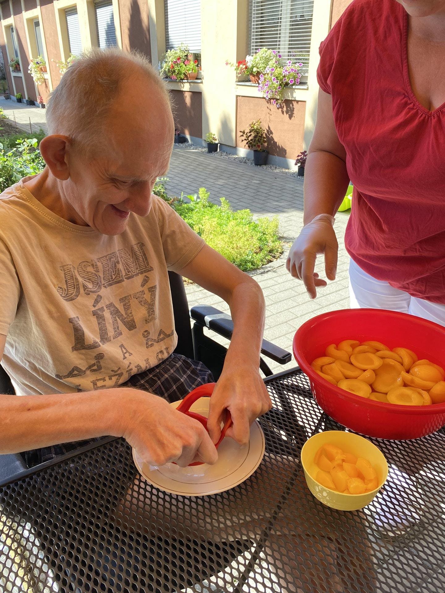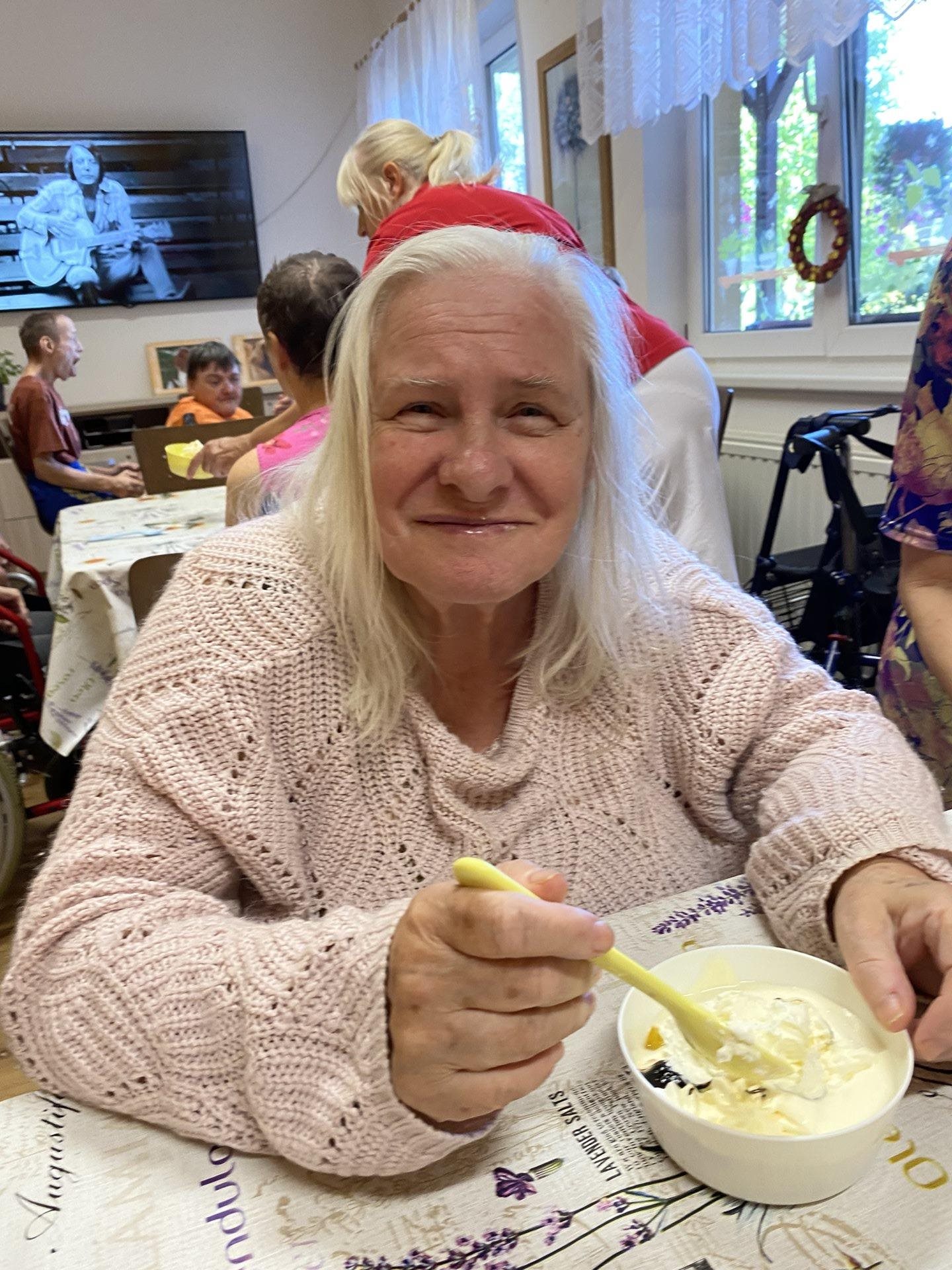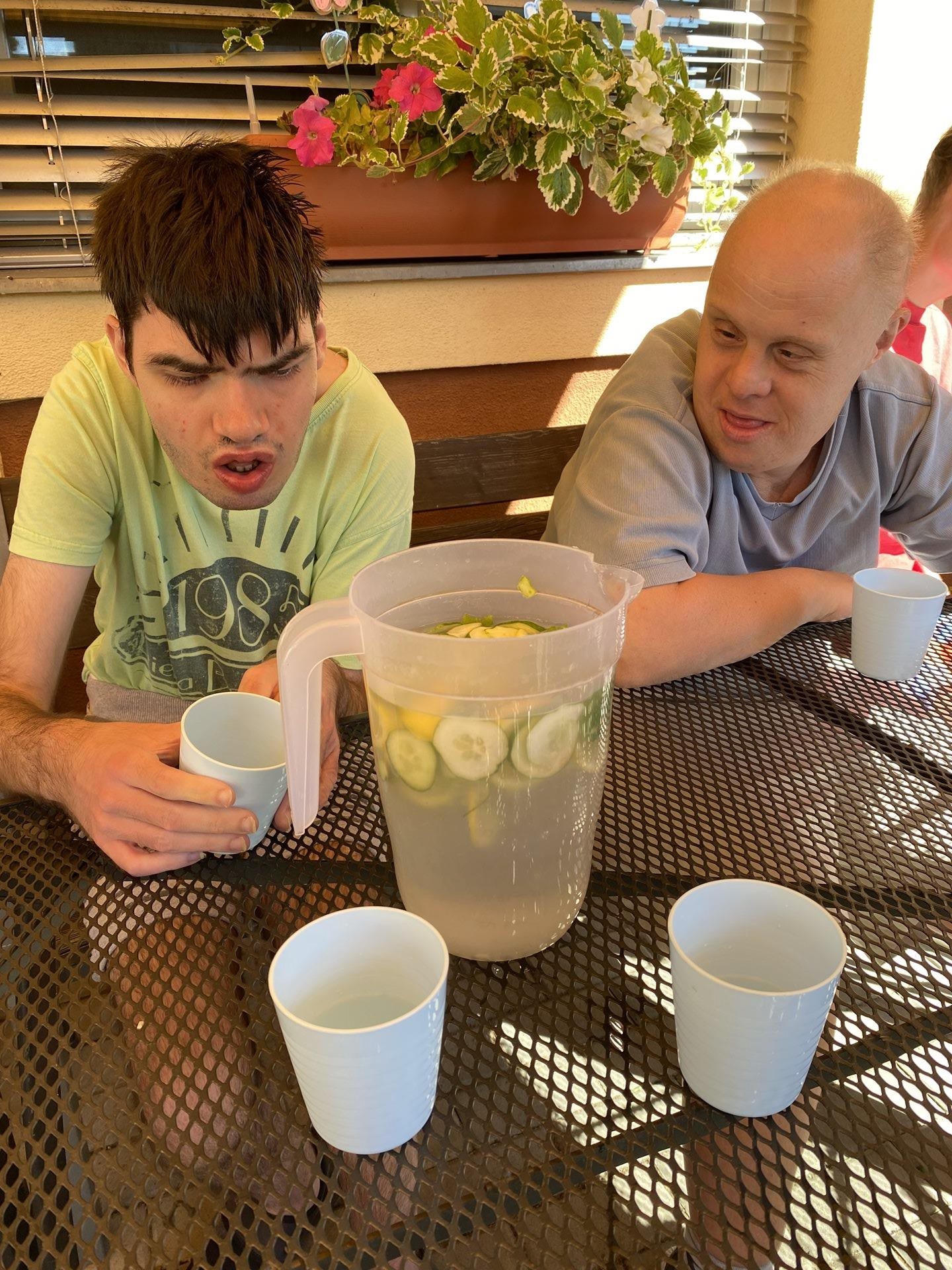 Horké počasí vybízí k chladným nápojům, studenému ovoci nebo lahodným zmrzlinám. My jsme si dnes tyto laskominy dopřáli a pochutnali si na nich. Udělali jsme si domácí okurkovou limonádu s citronem a mátou z naší zahrádky. Připravili jsme si zmrzlinové poháry s drobně nakrájeným ovocem a šlehačkou.